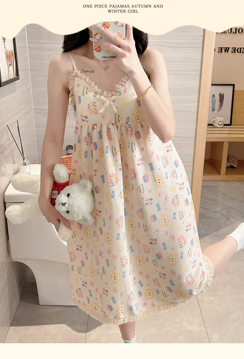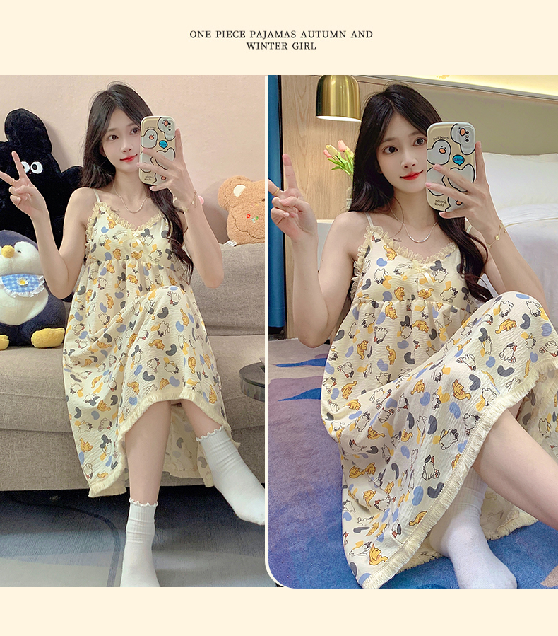 Butter Cake Nightgown for Women, Summer Cloud Cotton Camisole with Chest Pad, Thin Mid-Length Pajamas, Summer Girl's Loungewear