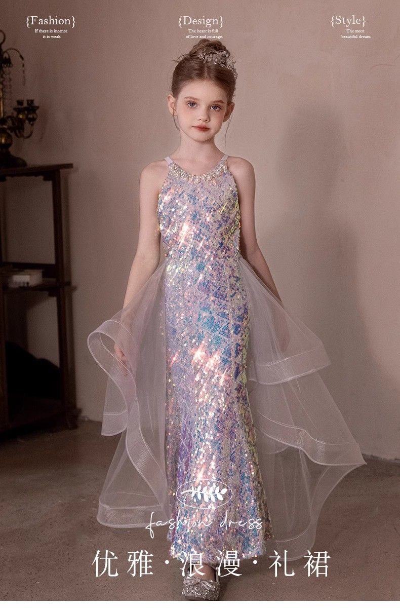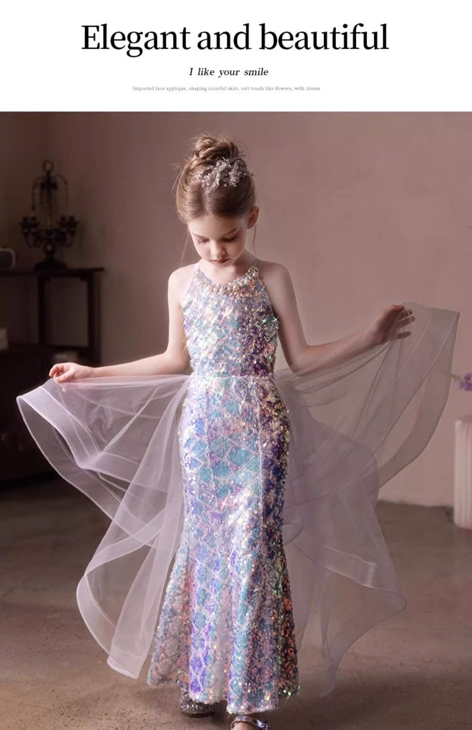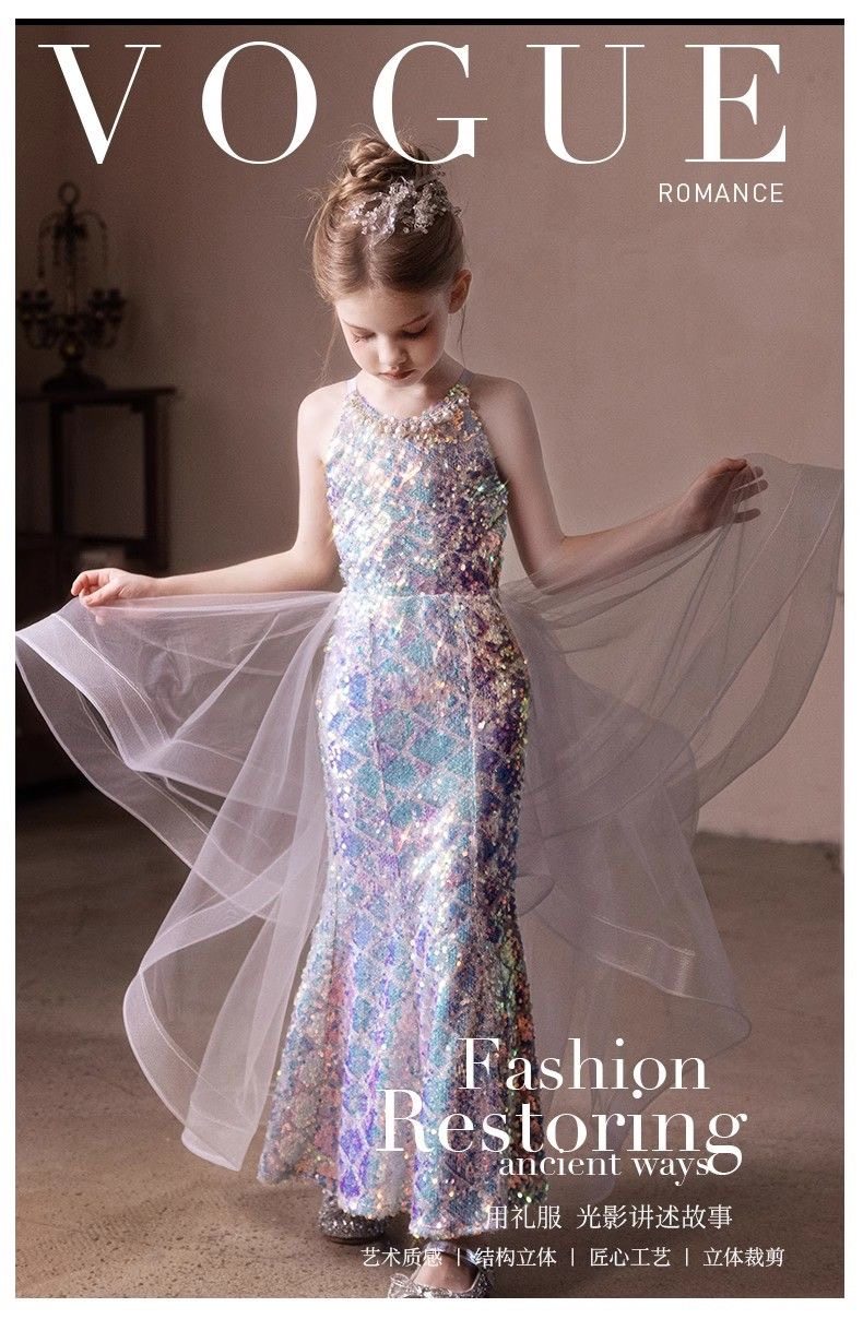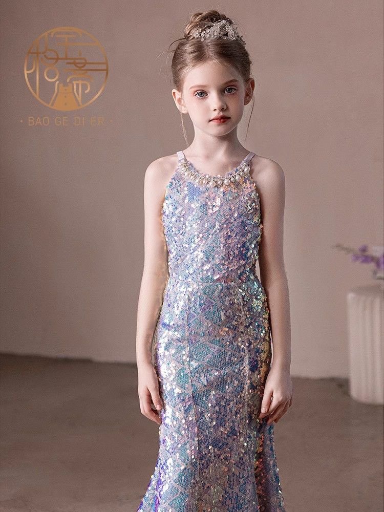 Kinder Abendkleid Host Pailletten Geburtstag Mädchen Fischschwanz Prinzessin Kleid Modell Laufsteg Klavier Performance Kostüm