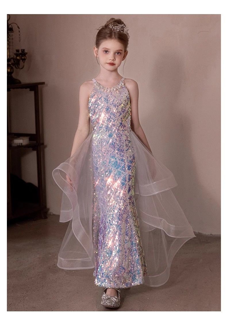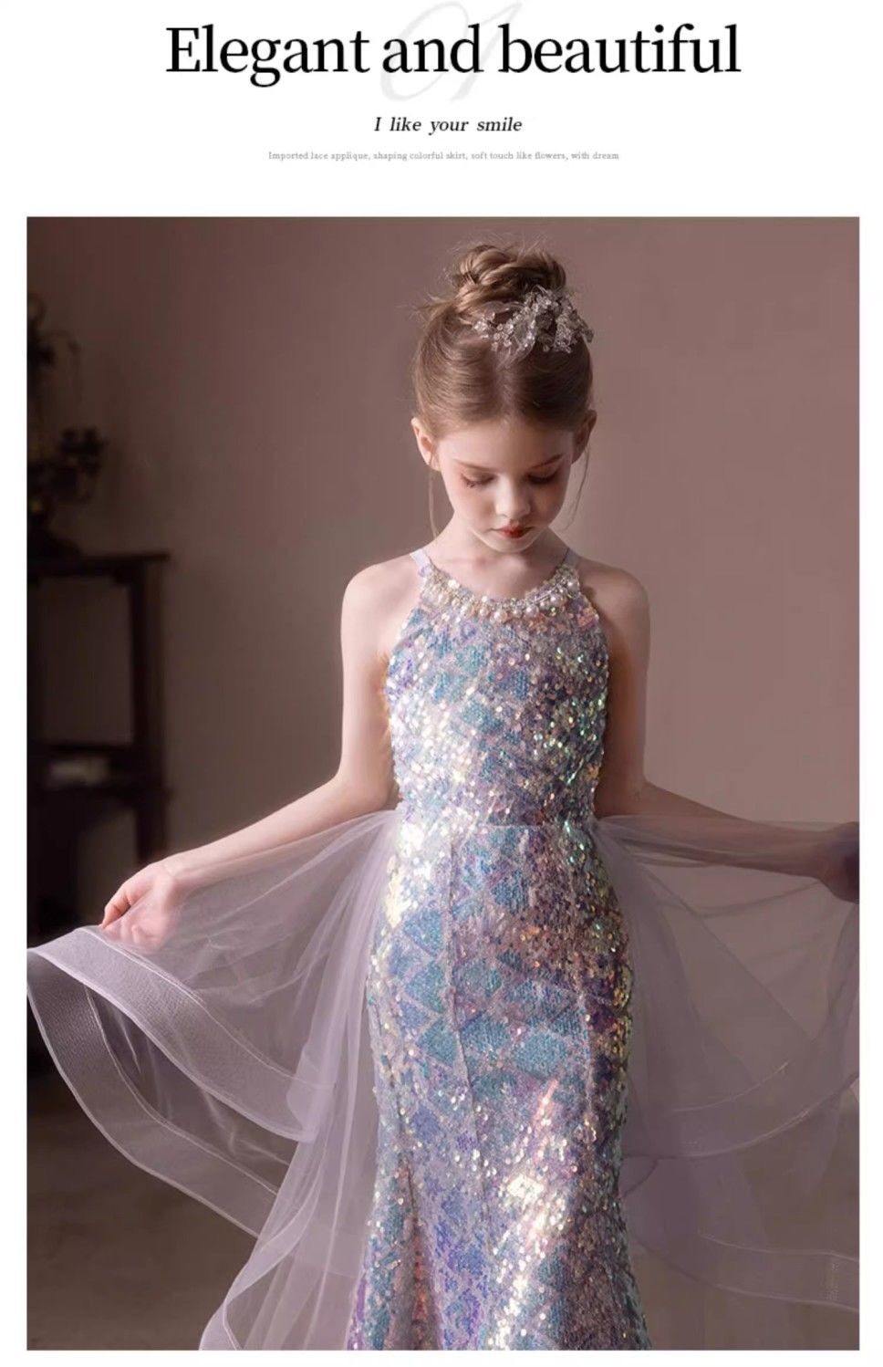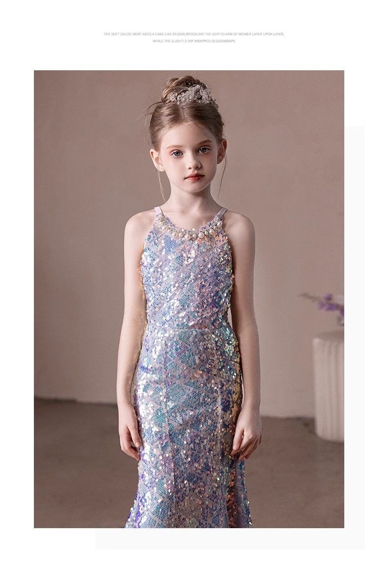 Kinder Abendkleid Host Pailletten Geburtstag Mädchen Fischschwanz Prinzessin Kleid Modell Laufsteg Klavier Performance Kostüm