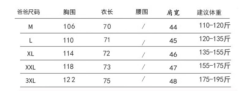 China (cm) 165 / 88-90 170 / 96-98 175 / 108-110 180 / 118-122 185 / 126-130