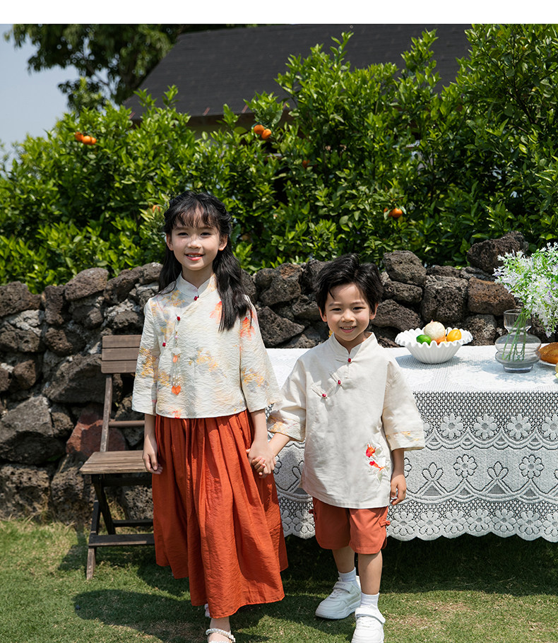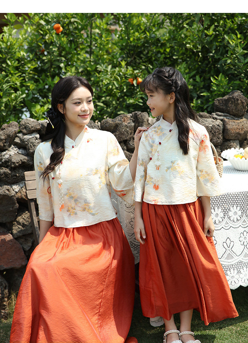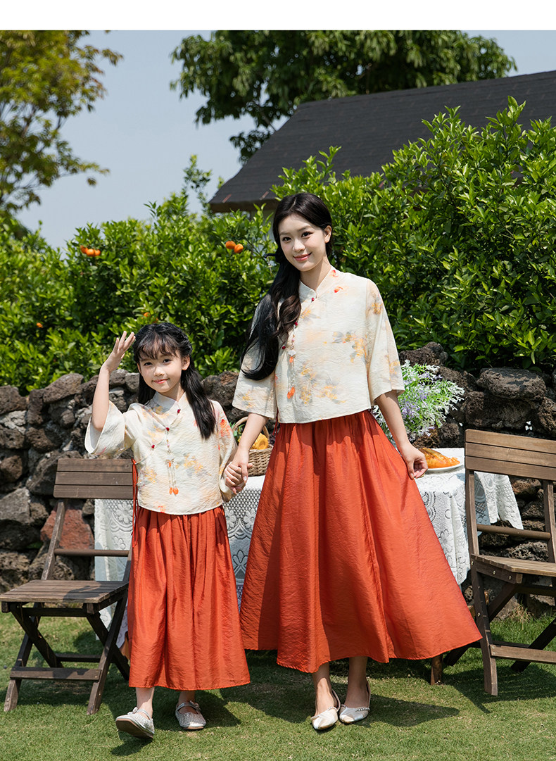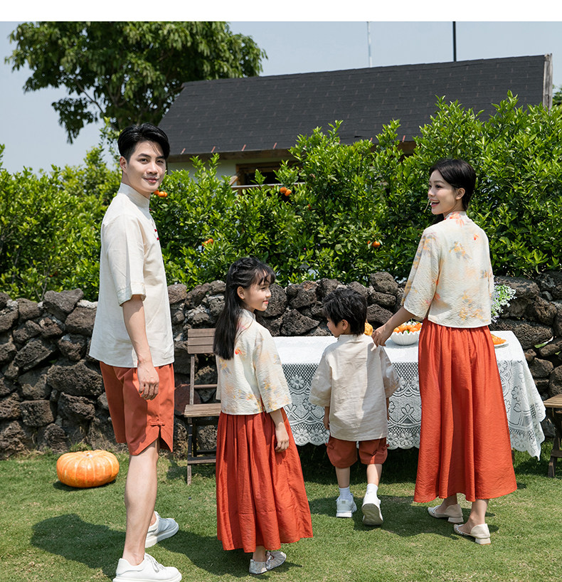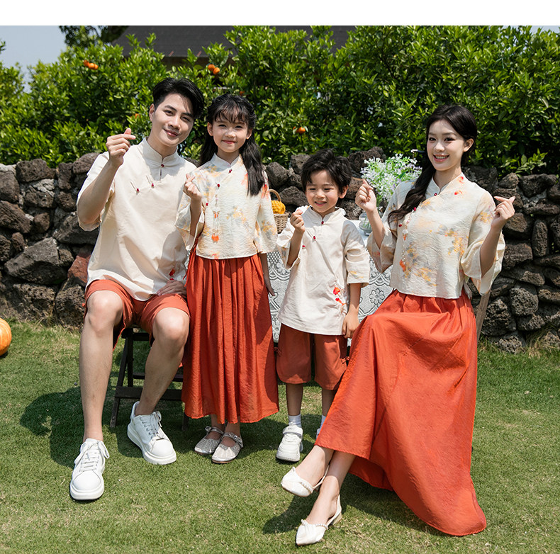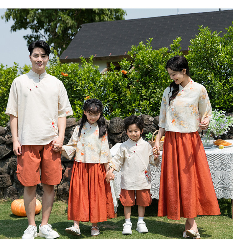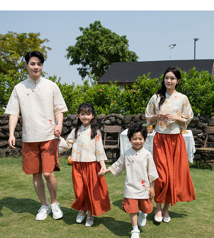 Neue Mutter-Tochter-Kleidung im chinesischen Stil im nationalen Stil, dreiköpfige Familie, Mutter-Kind-Kleidung, Hanfu, Performance-Kleidung zum Mittherbstfest, neuer Tang-Anzug für den Sommer