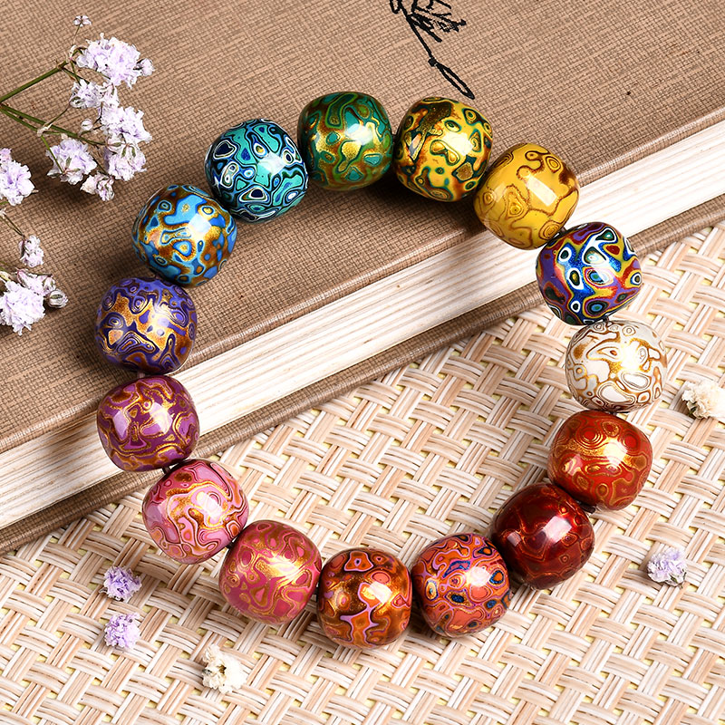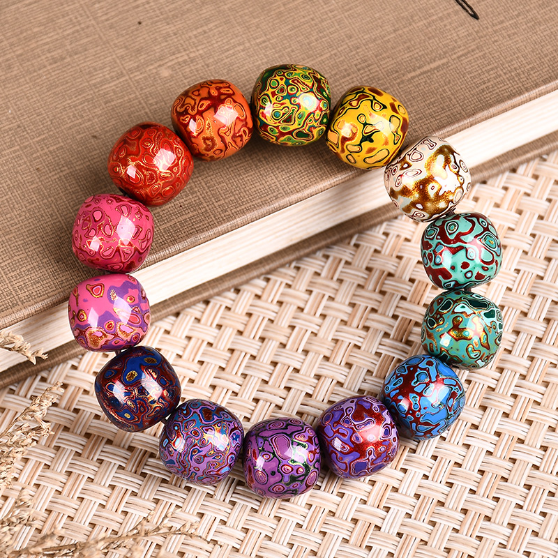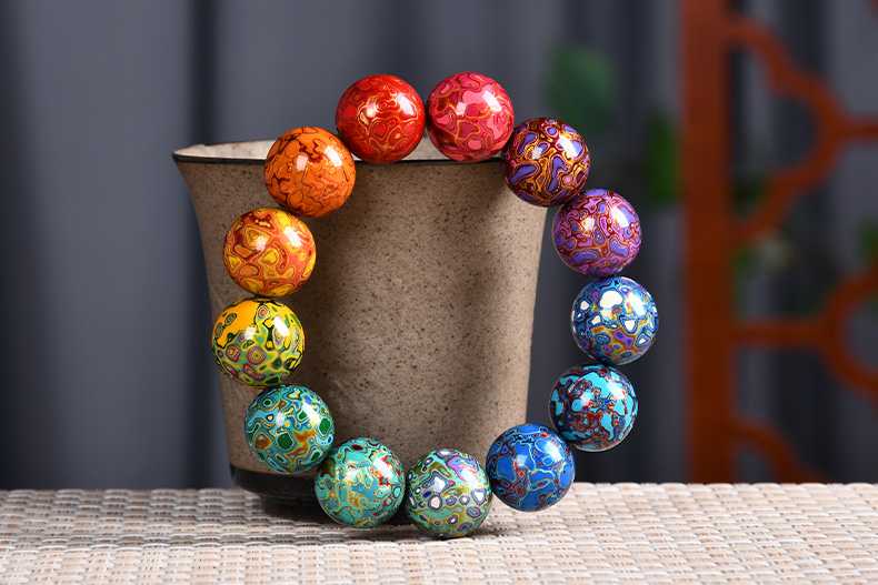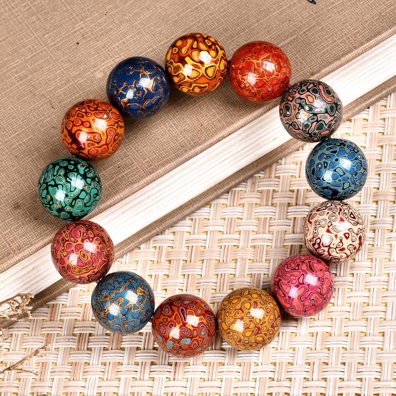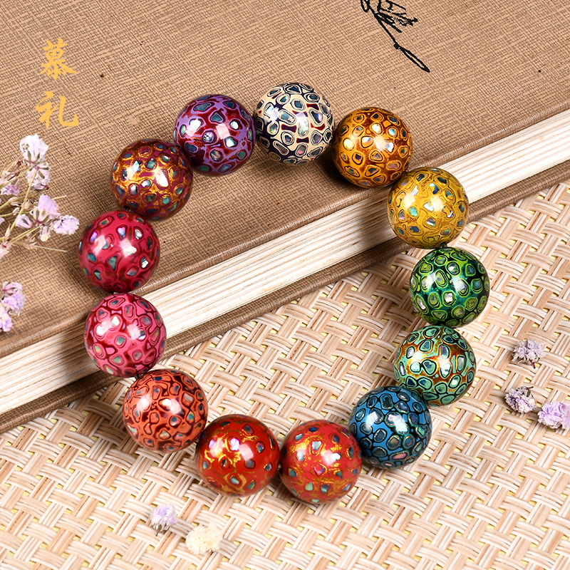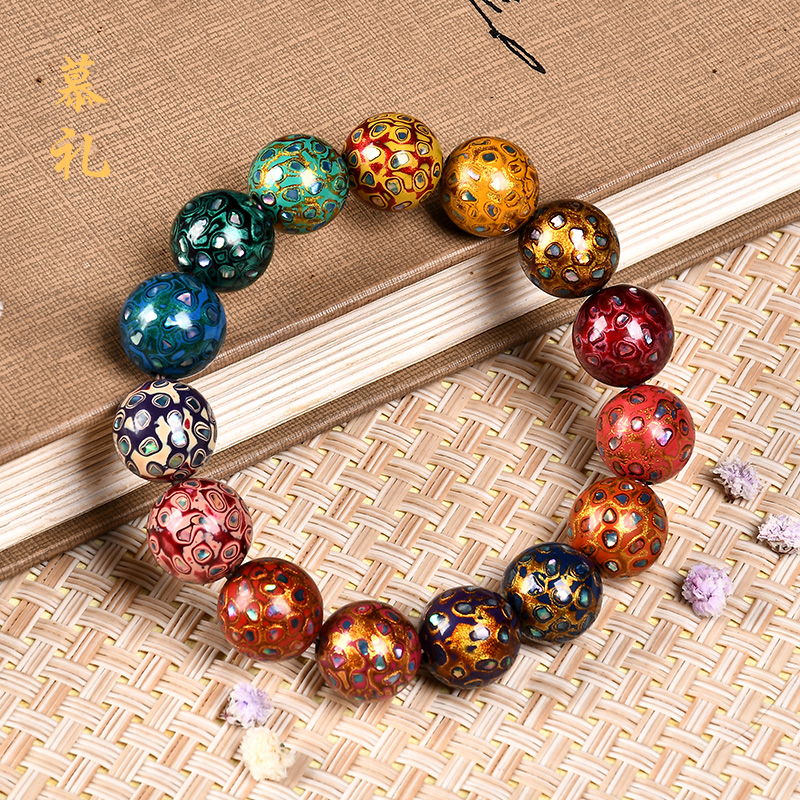 琴禧渐变大漆手串多宝珠子女士手链佛珠饰品镶嵌漆器民族风