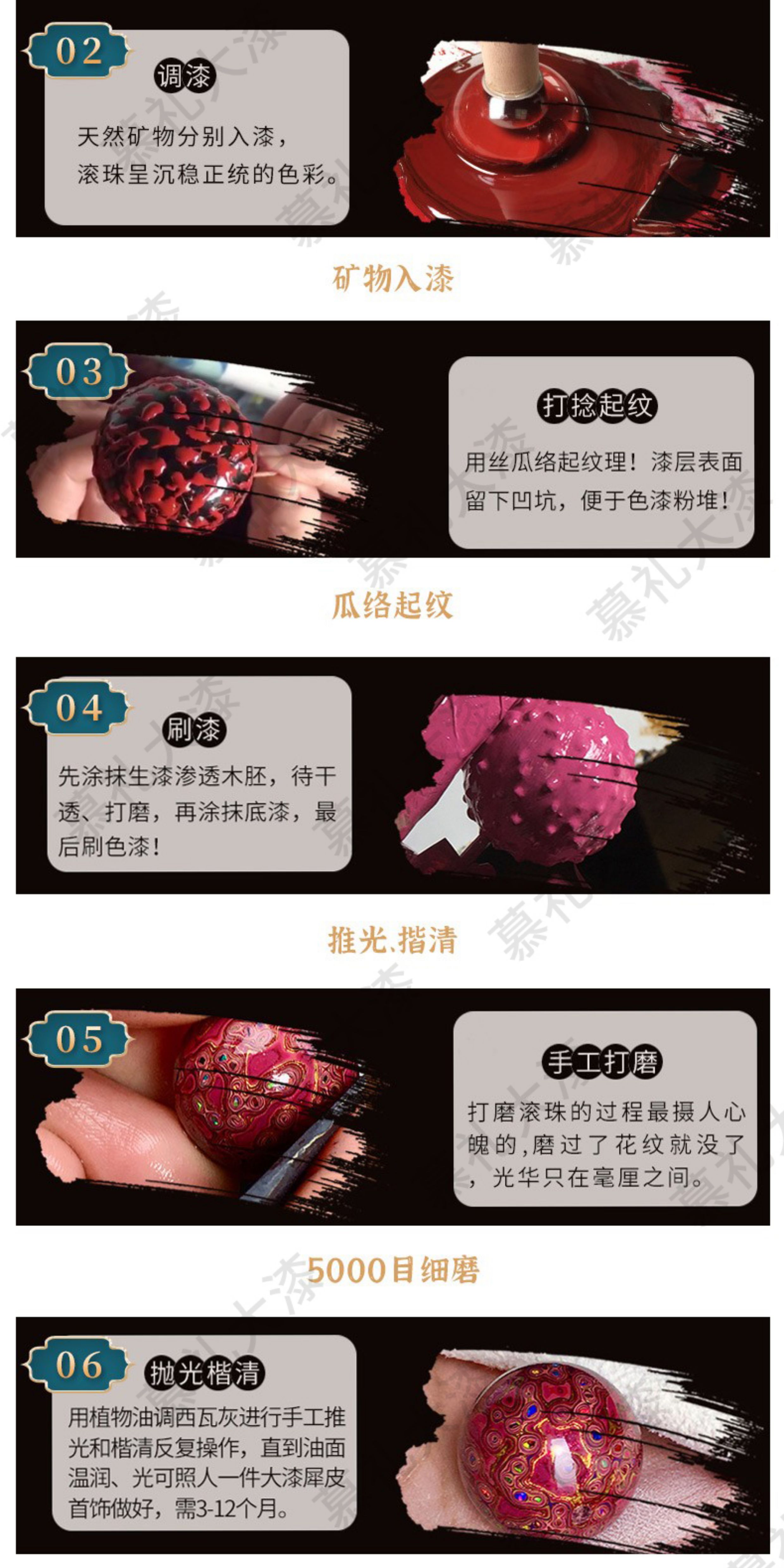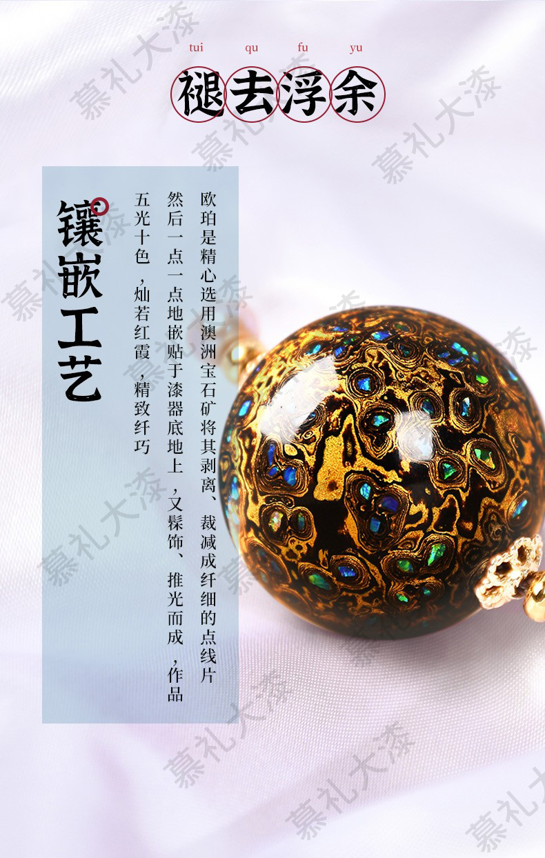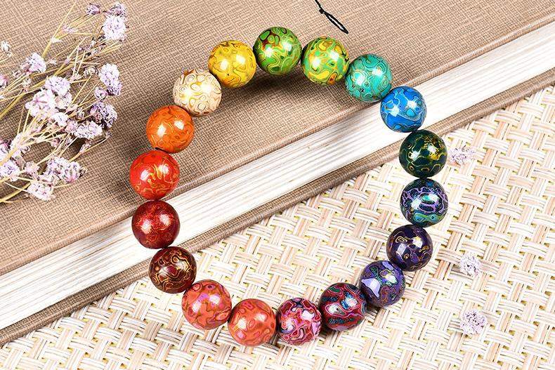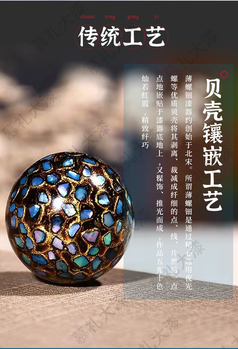 琴禧渐变大漆手串多宝珠子女士手链佛珠饰品镶嵌漆器民族风