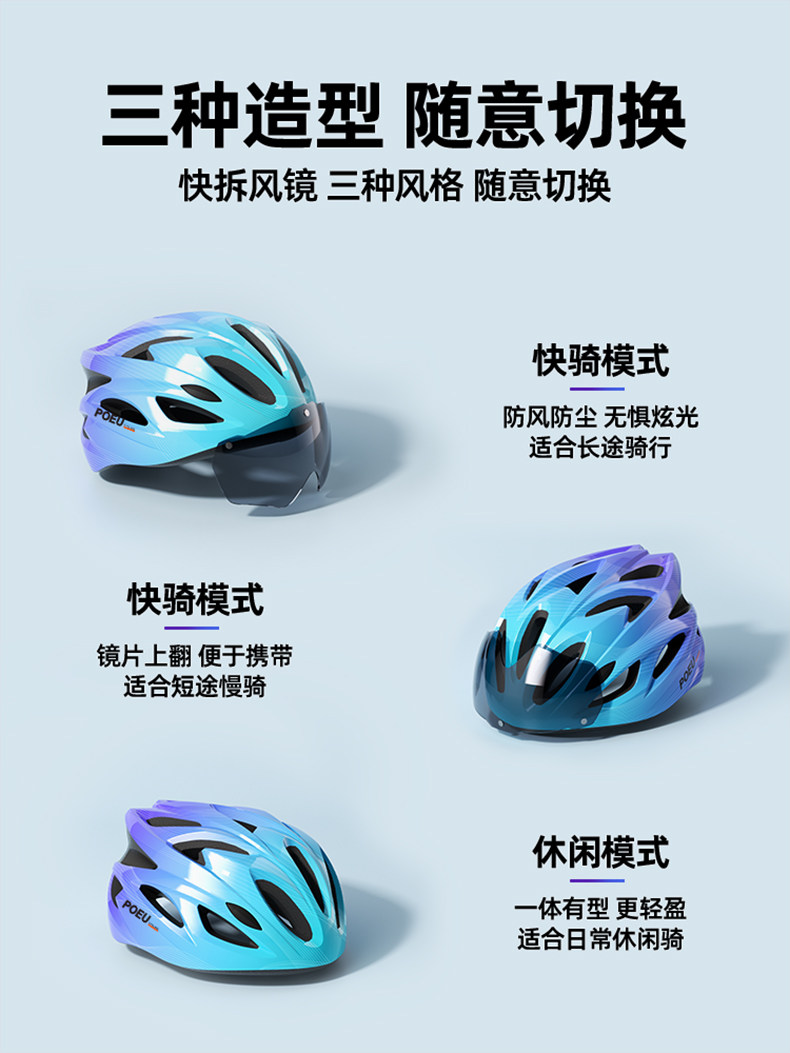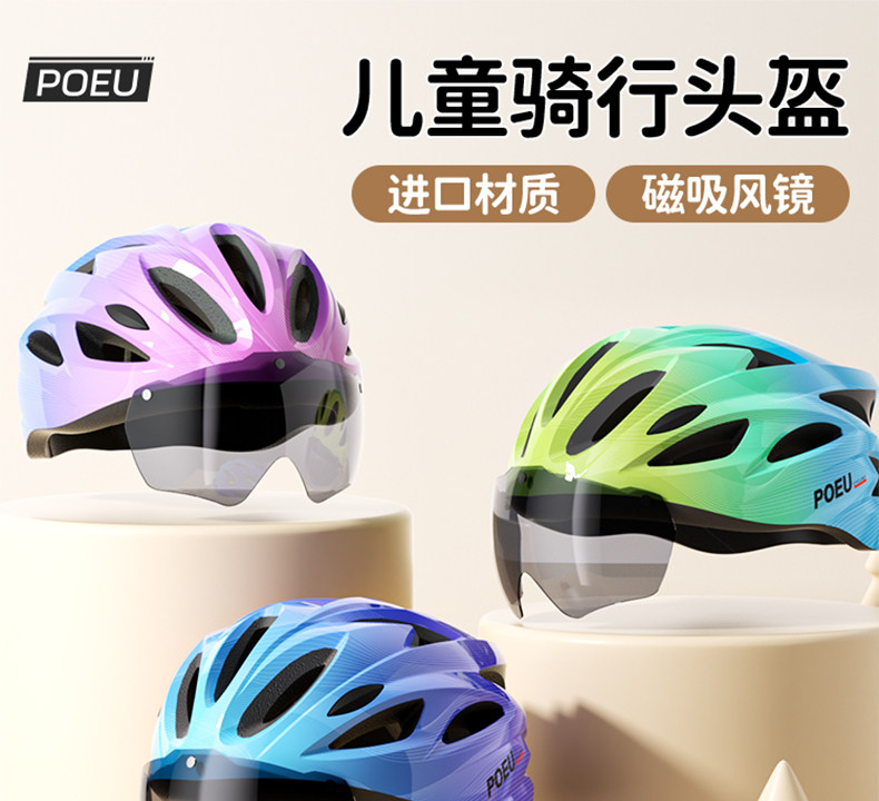 Poeu Kidsren's Cycling Helmet with Goggles Cycling Equipment Road Bike Mountain Bike Youth Bicycle