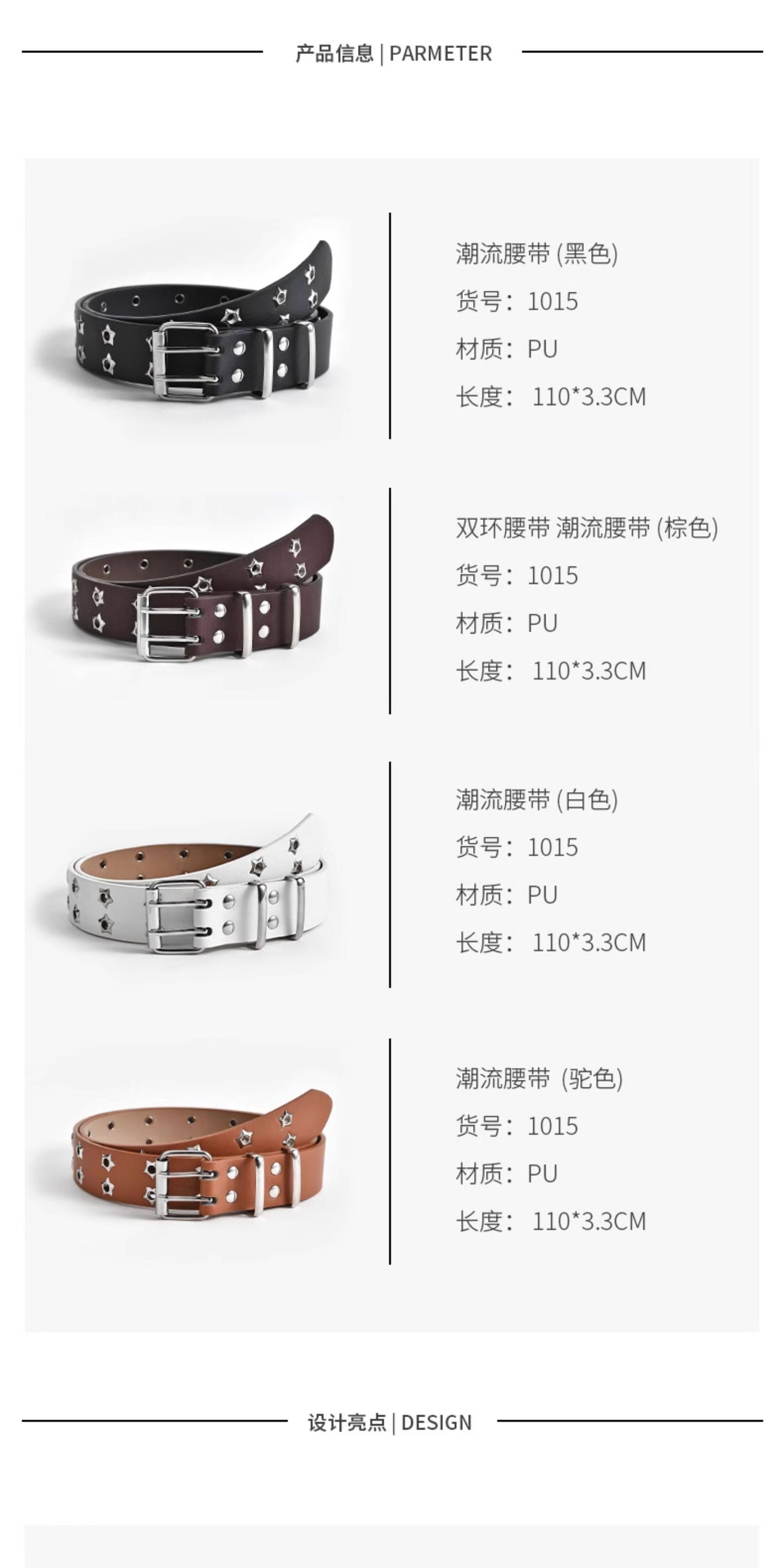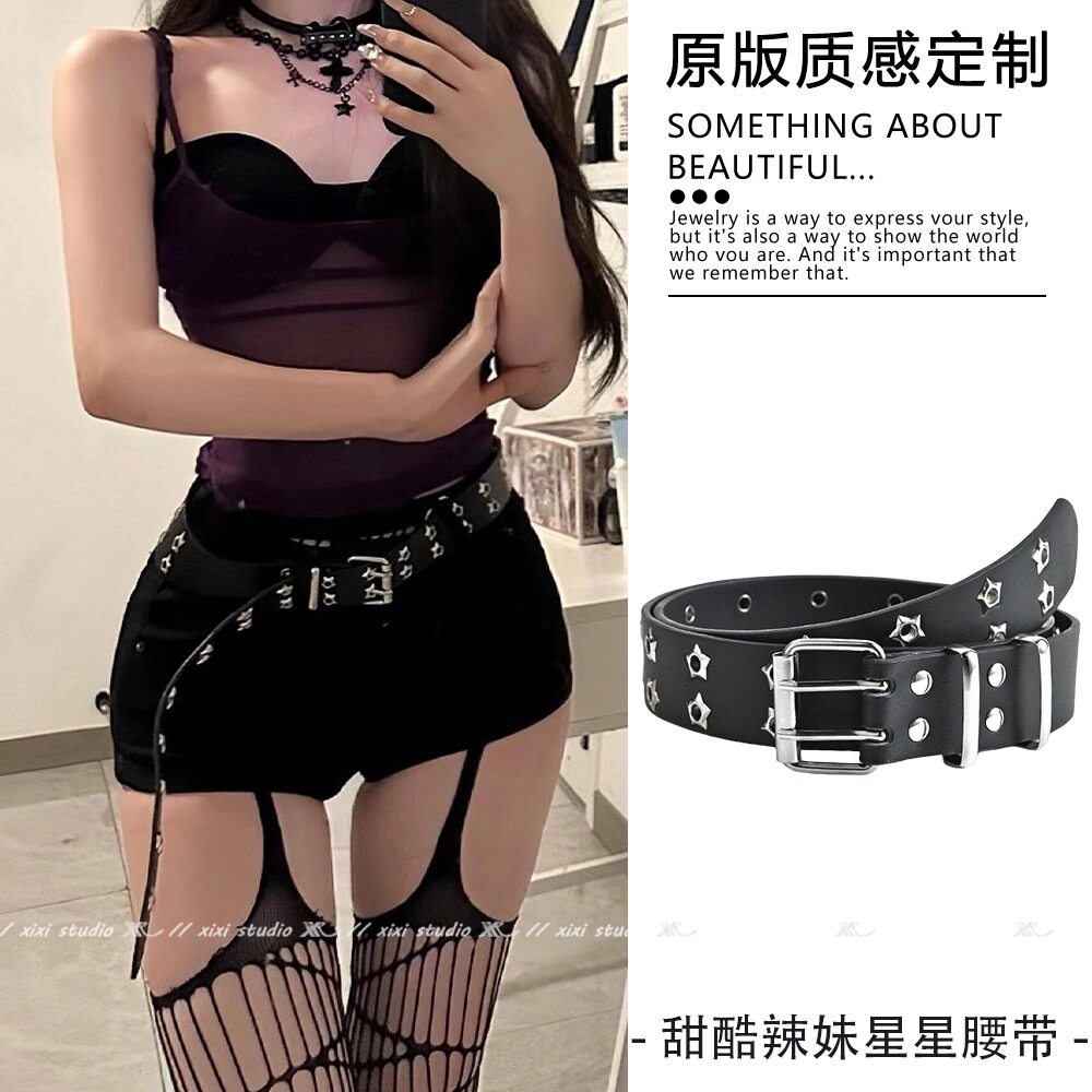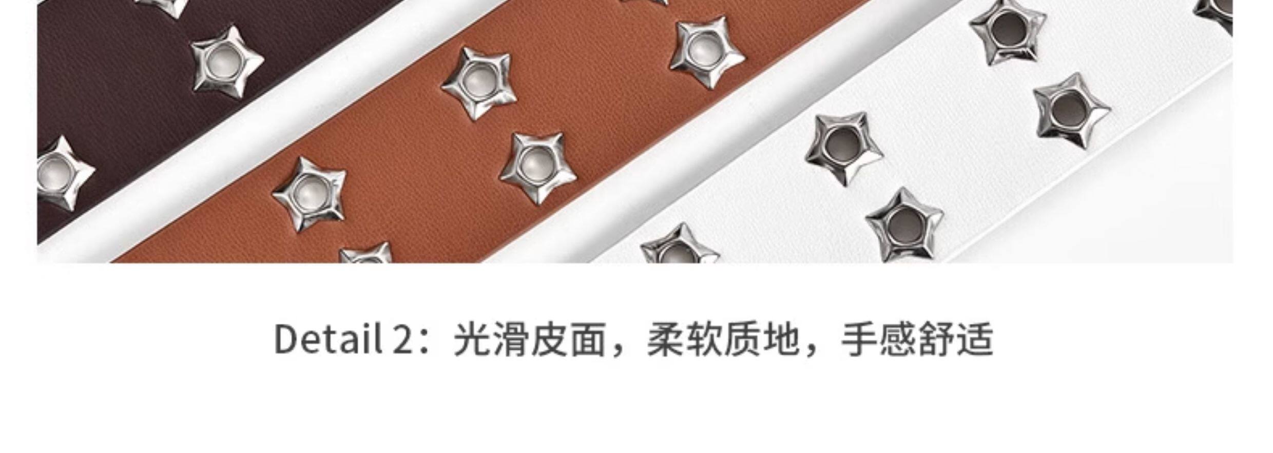 甜酷风白色腰带镂空星星铆钉皮带辣妹个性配牛仔裤带新品配饰腰饰