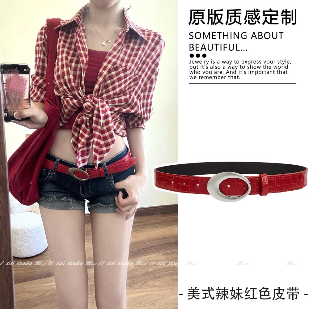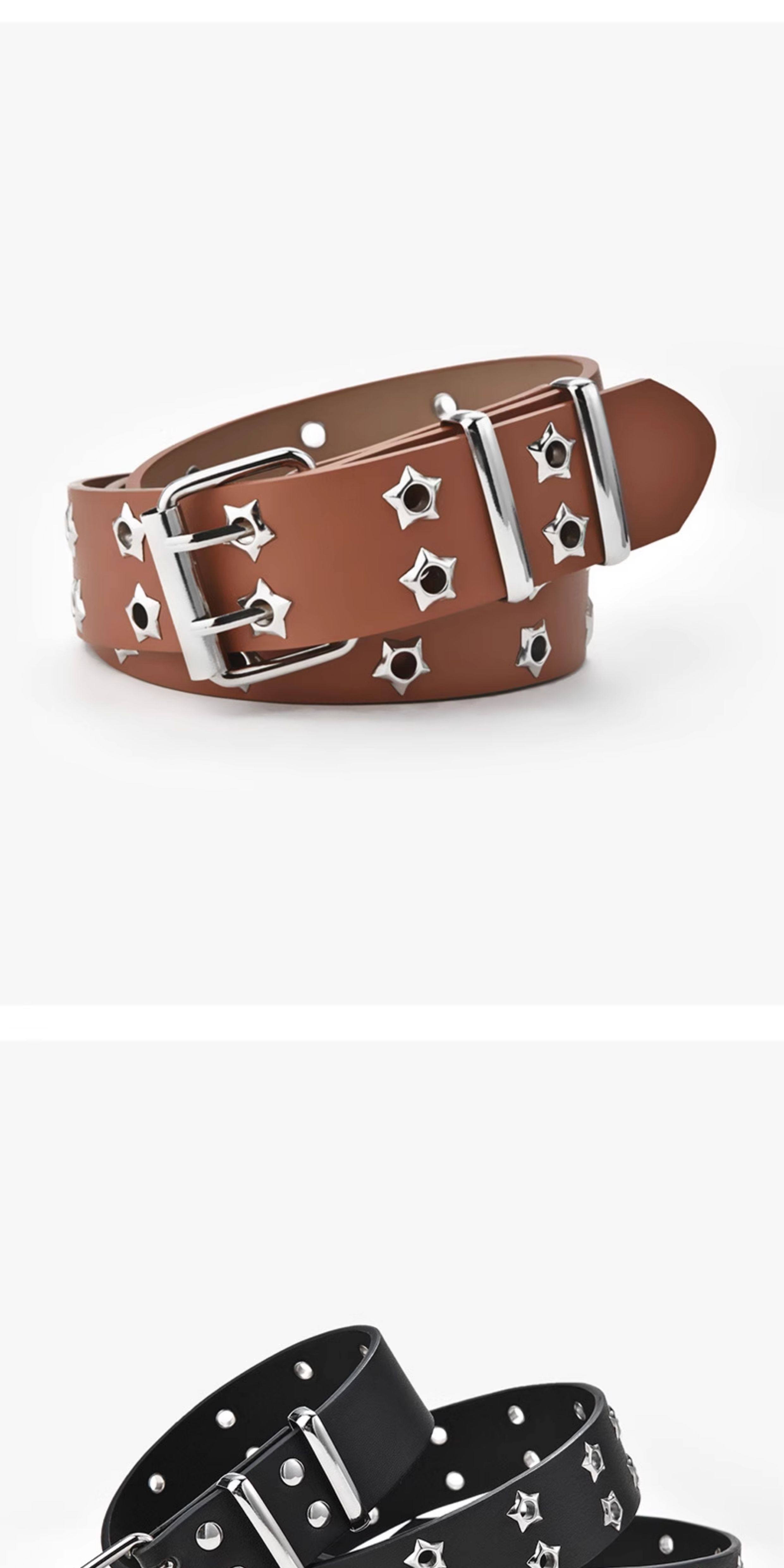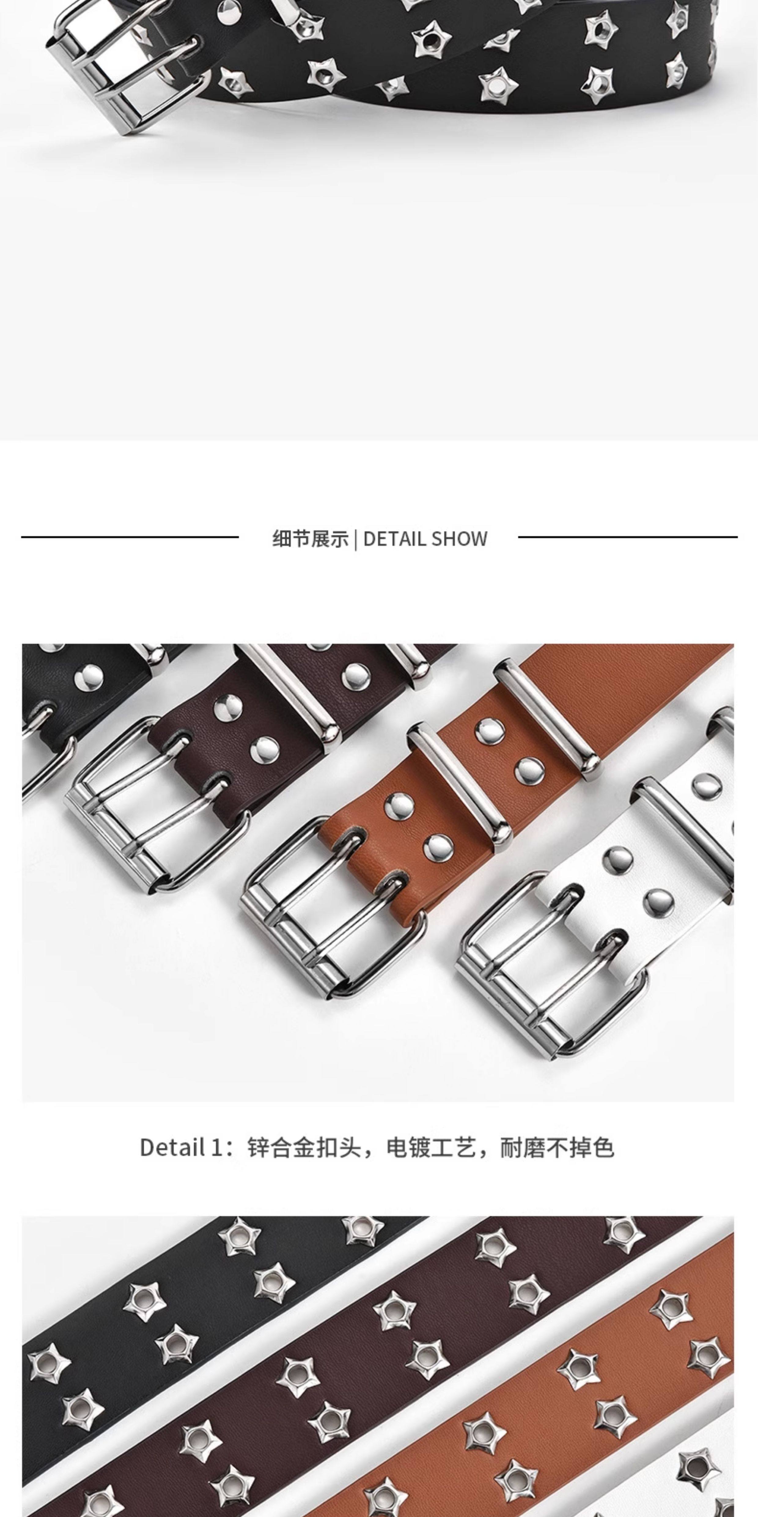甜酷风白色腰带镂空星星铆钉皮带辣妹个性配牛仔裤带新品配饰腰饰