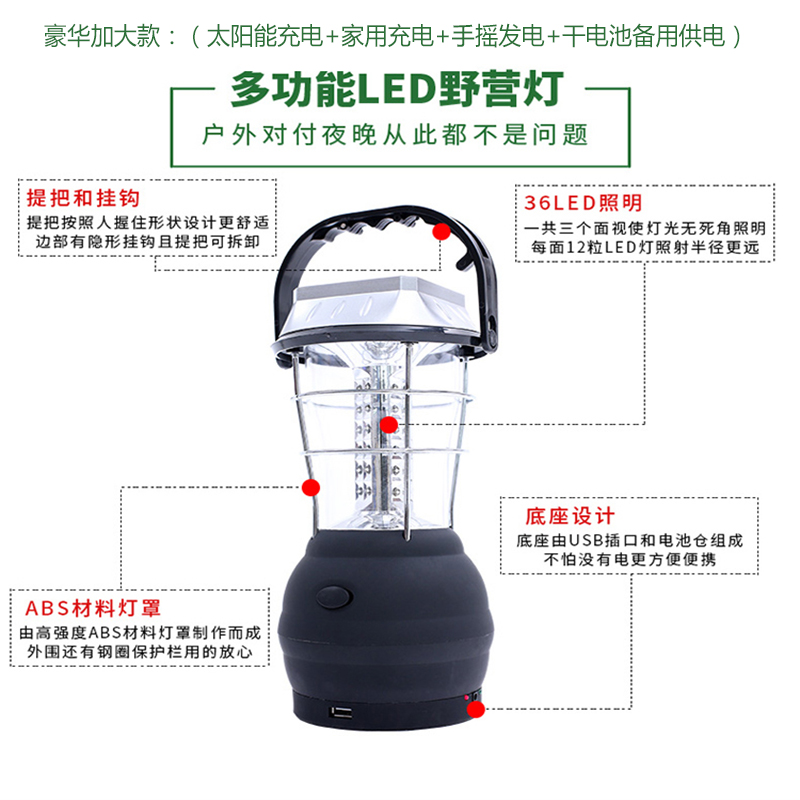 Outdoor camping light tent light camping light emergency light solar rechargeable outdoor mini flashlight led light