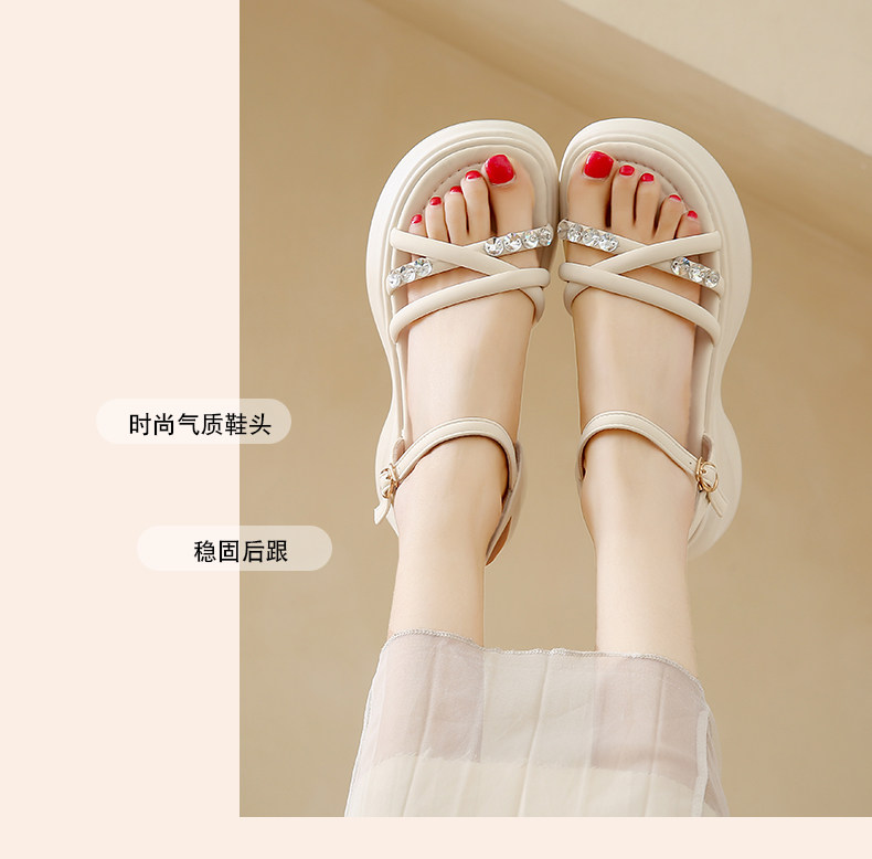 361踩屎感罗马凉鞋女夏季2025新款外穿高级感小码34厚底沙滩凉拖
