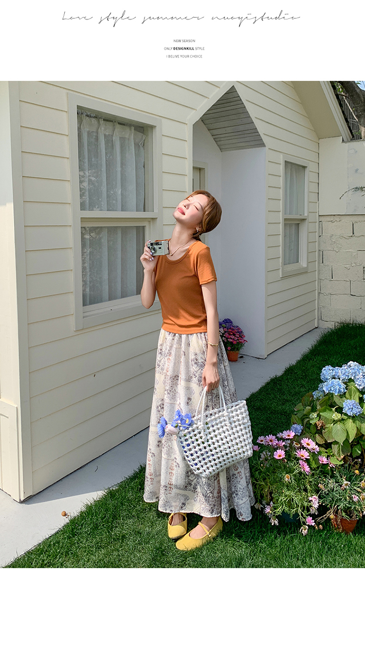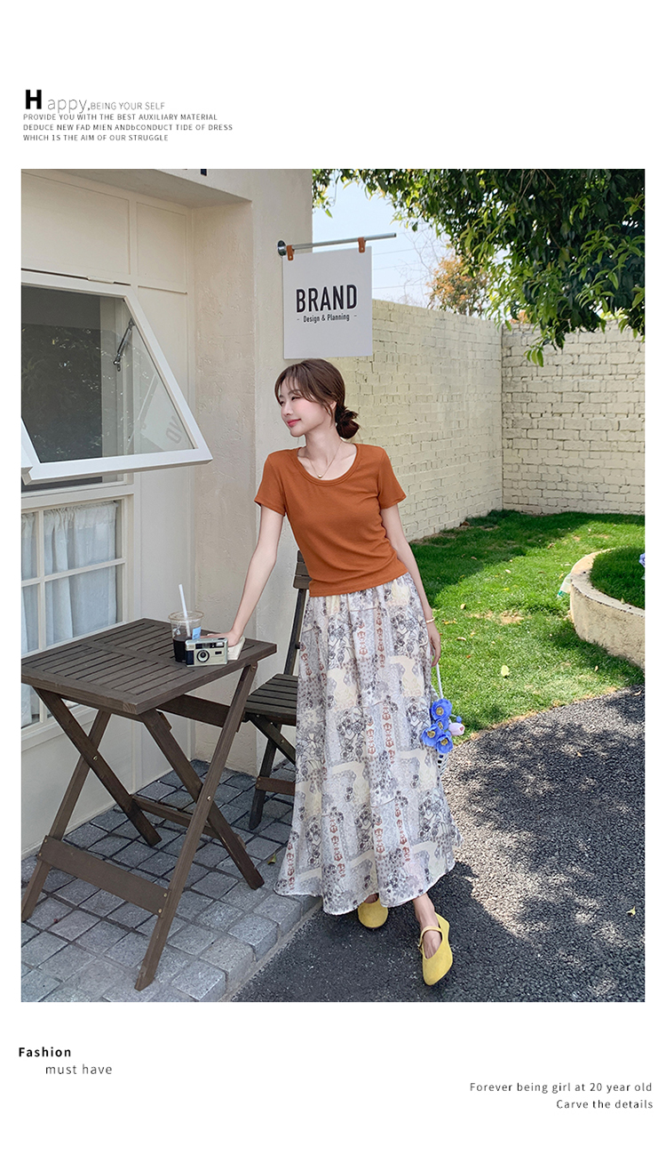 小众设计感成套搭配套装裙女夏2025新款纯色T恤碎花半身裙两件套