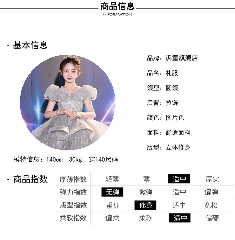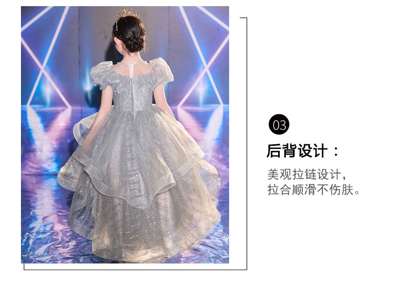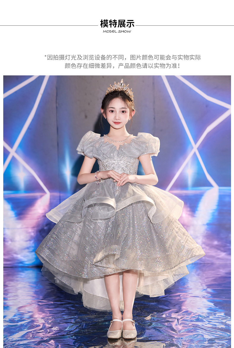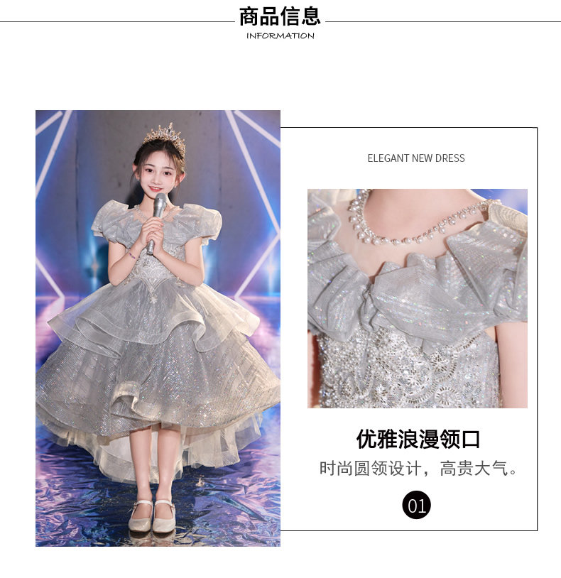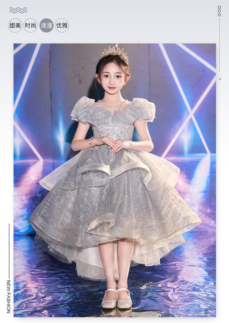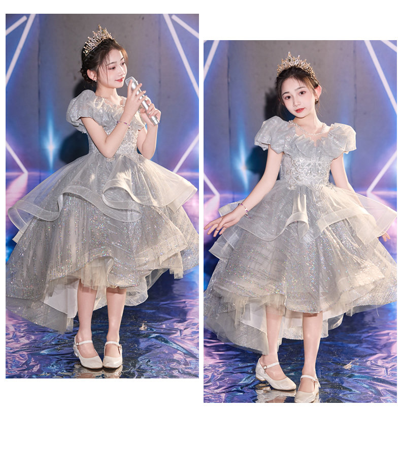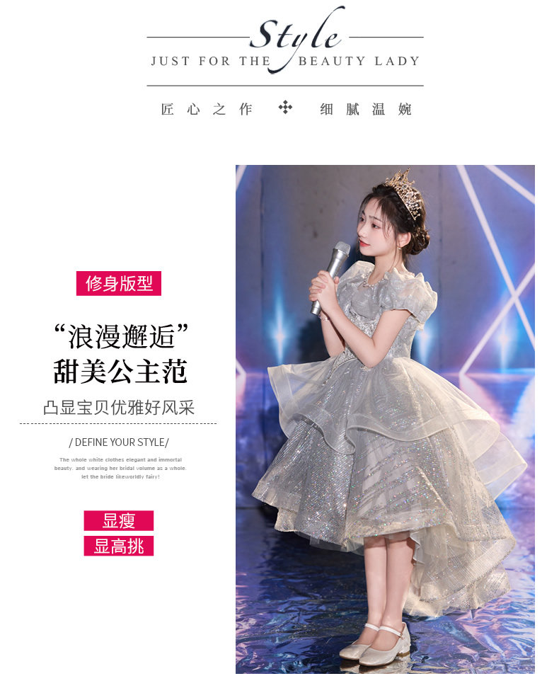 Kinderkleid, Prinzessinnenkleid, leichte Luxus-Nische, kurze Vorderseite und lange Rückseite, High-End-Kinderabendkleid für Mädchen für die Ausrichtung von Klavieraufführungen