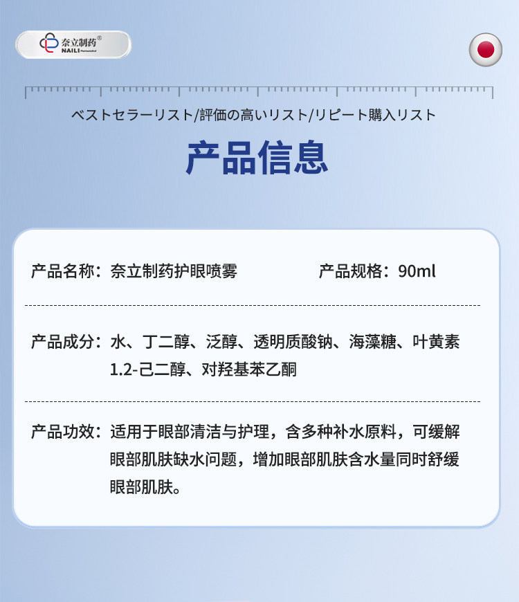 奈立叶黄素护眼喷雾雾化润眼缓解眼部疲劳眼干涩红血丝洗眼液正品