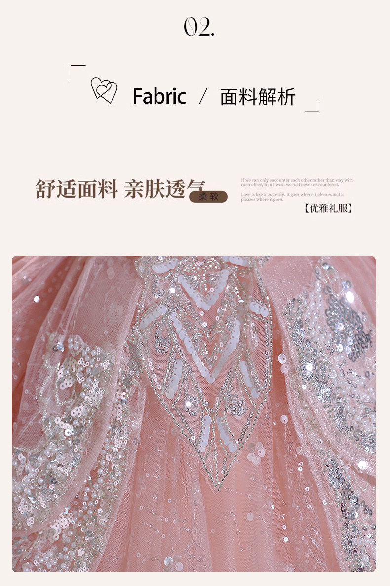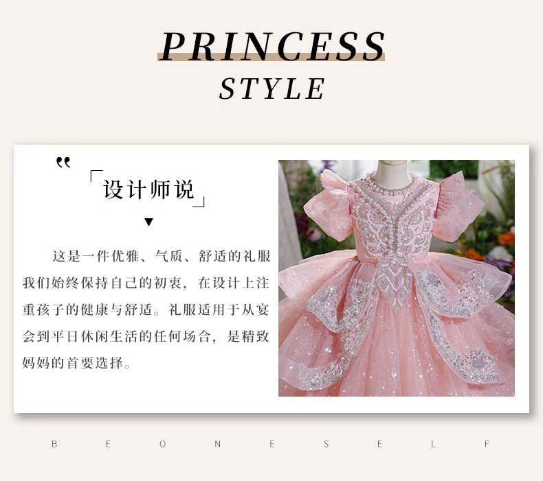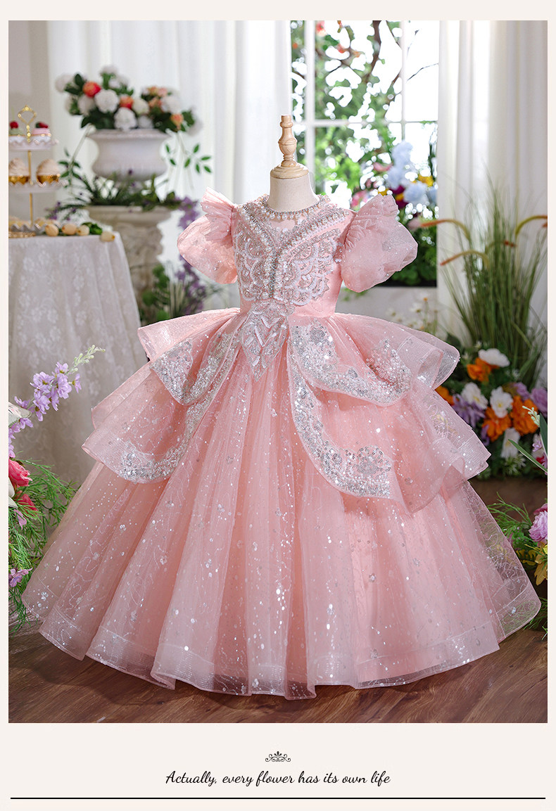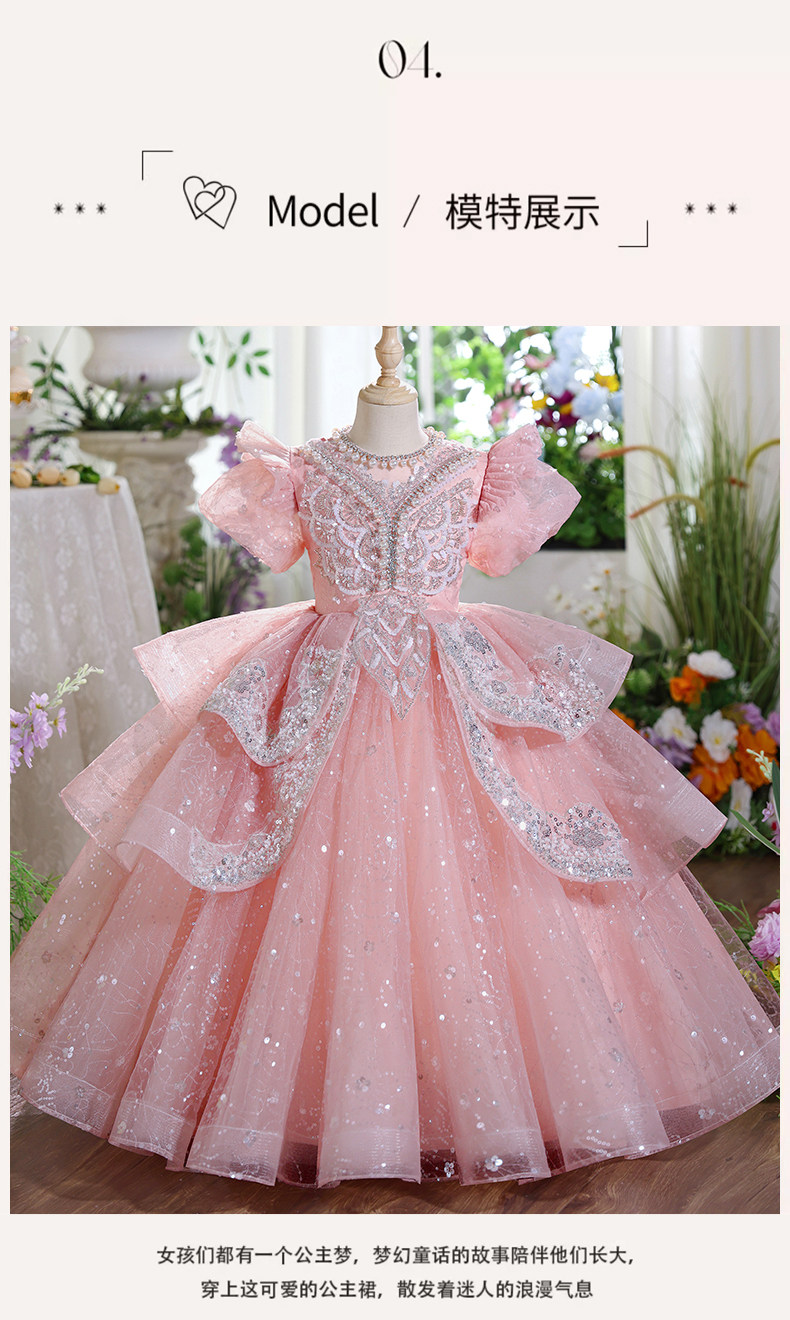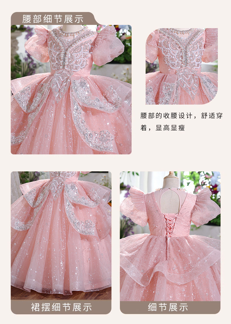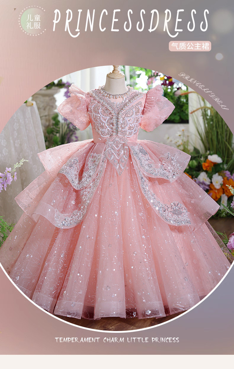 粉色女童礼服小众高端生日花童公主裙儿童绝美主持人钢琴表演出服