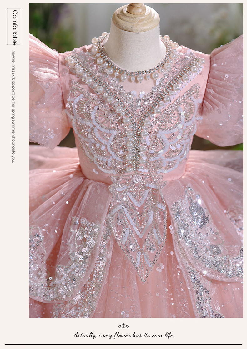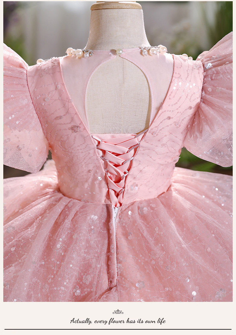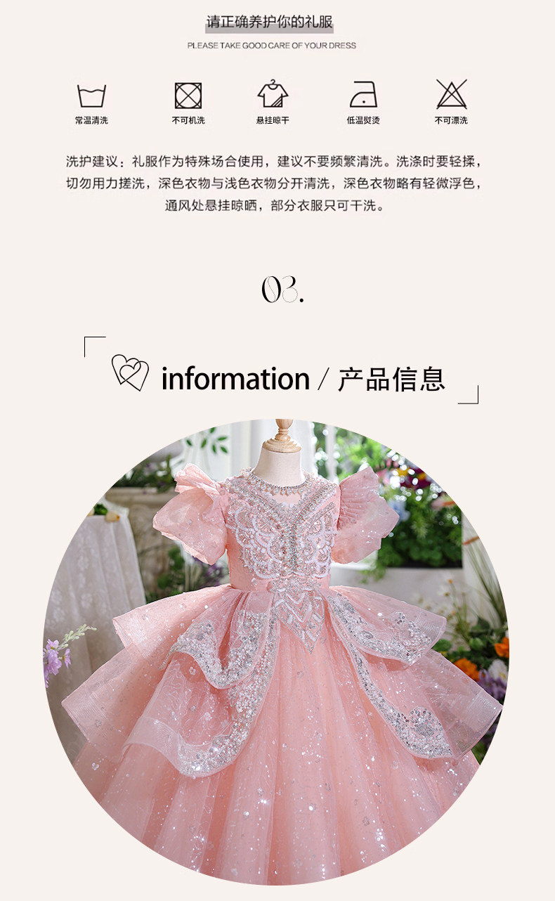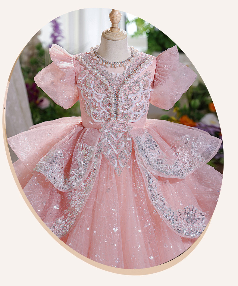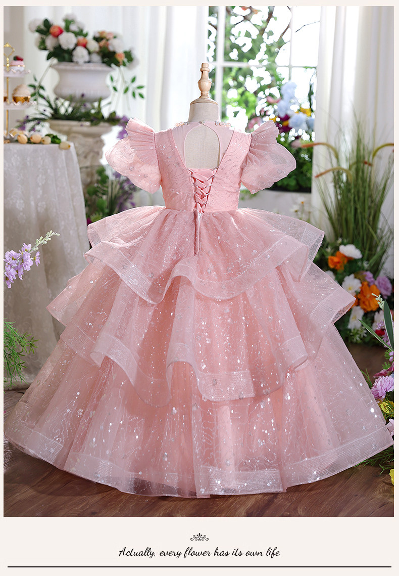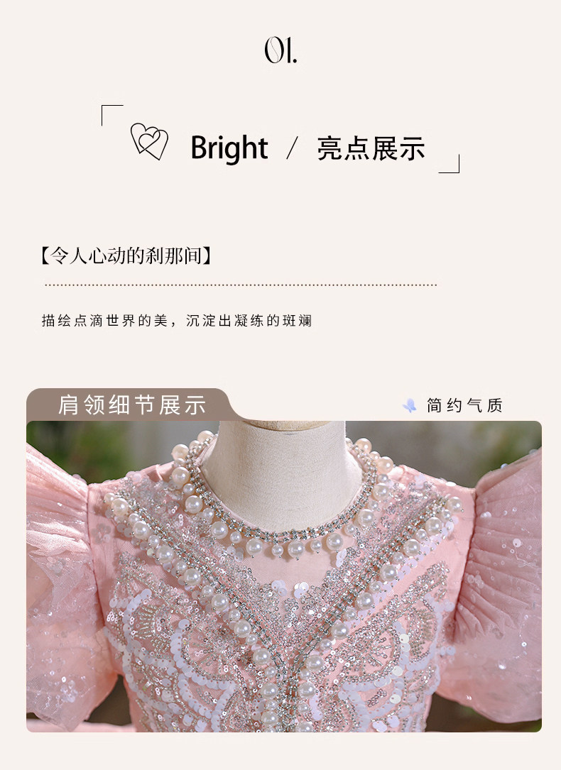 粉色女童礼服小众高端生日花童公主裙儿童绝美主持人钢琴表演出服