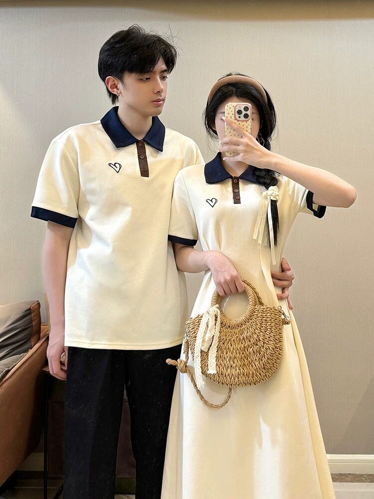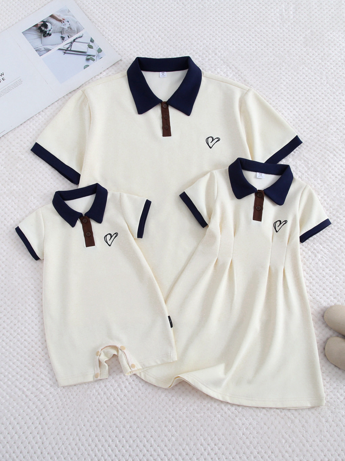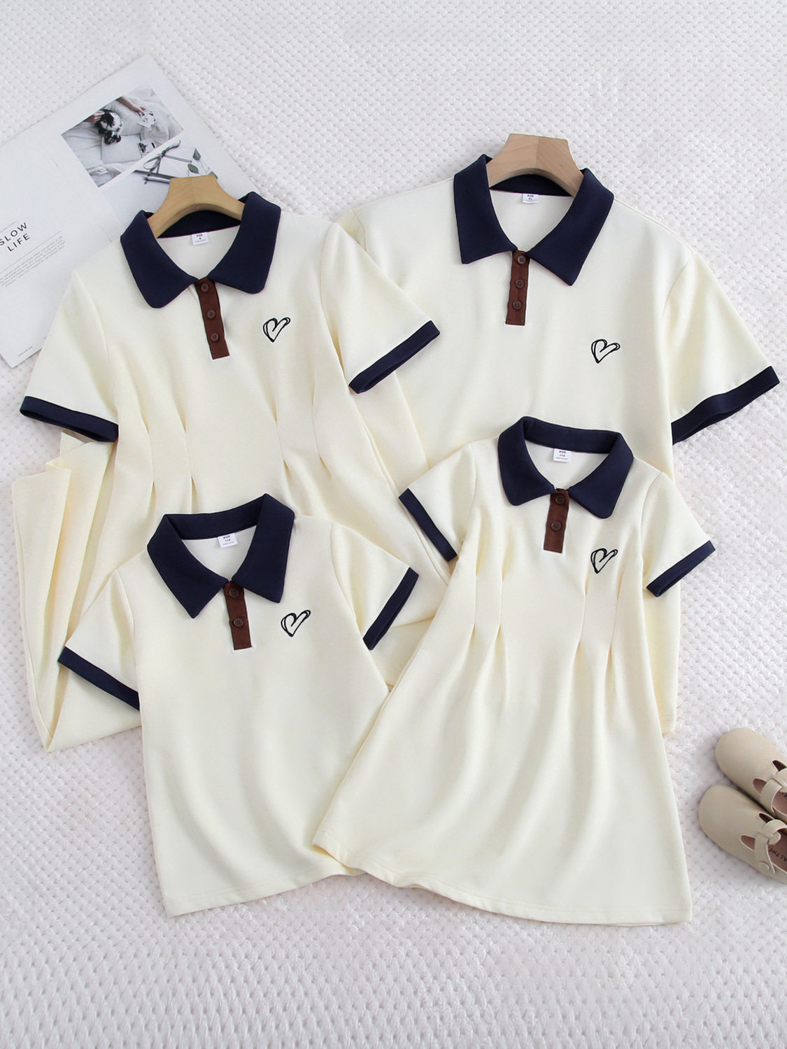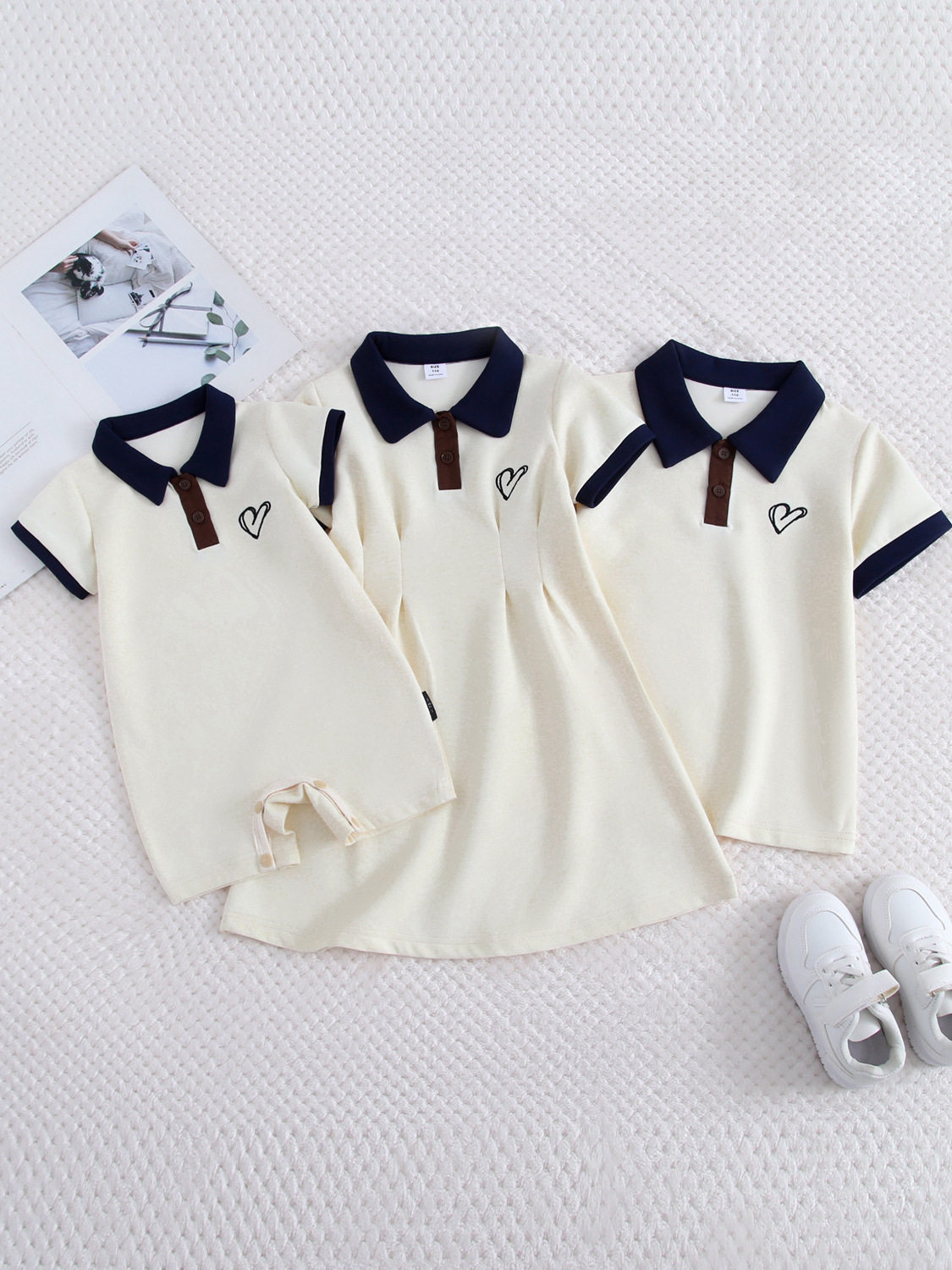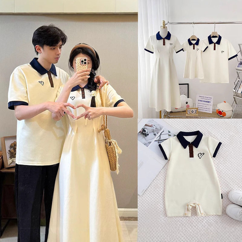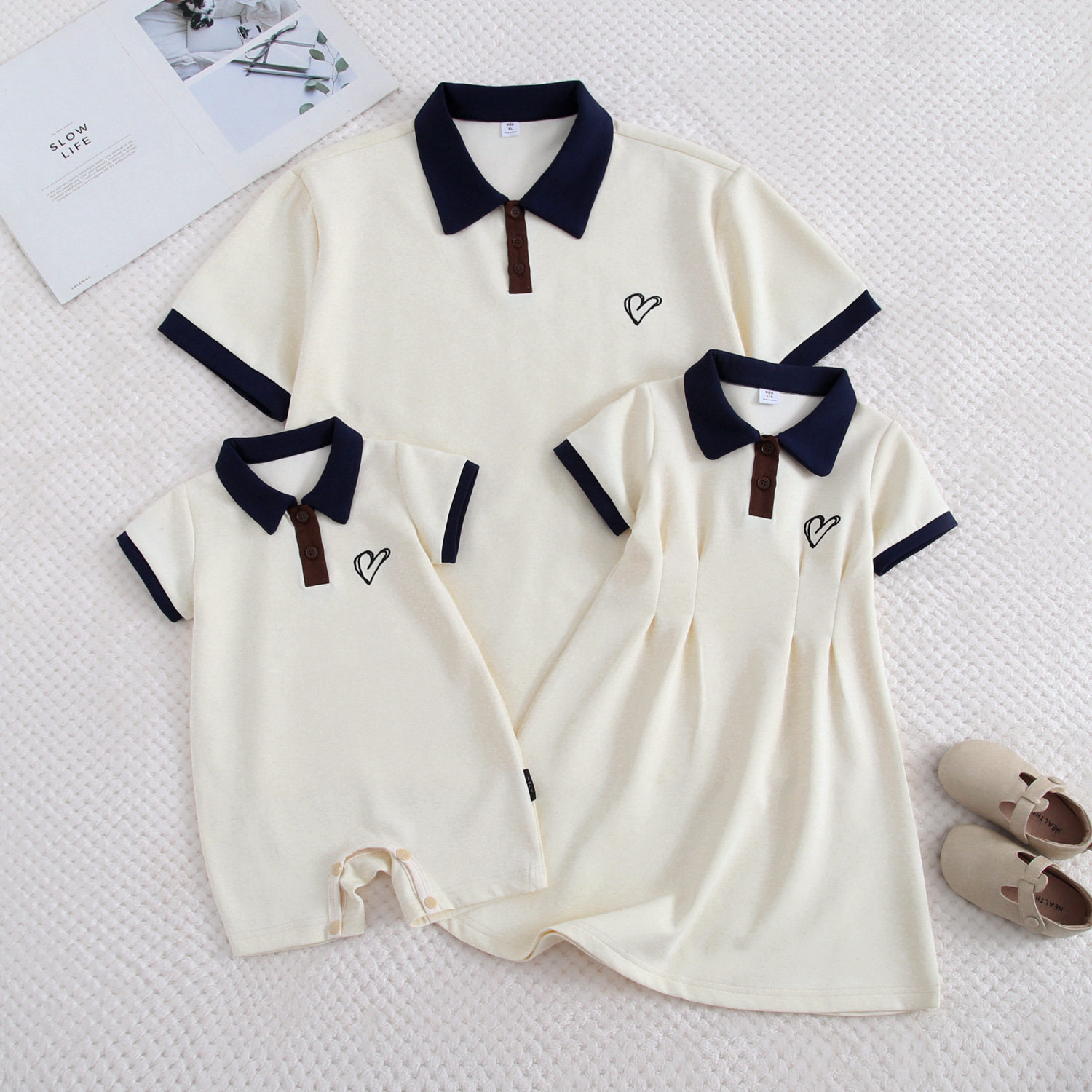 Baby Family Matching Outfits Summer 2025 Family of Three Preppy Style Polo Shirt Short-Sleeved T-Shirt Mother and Child Dress