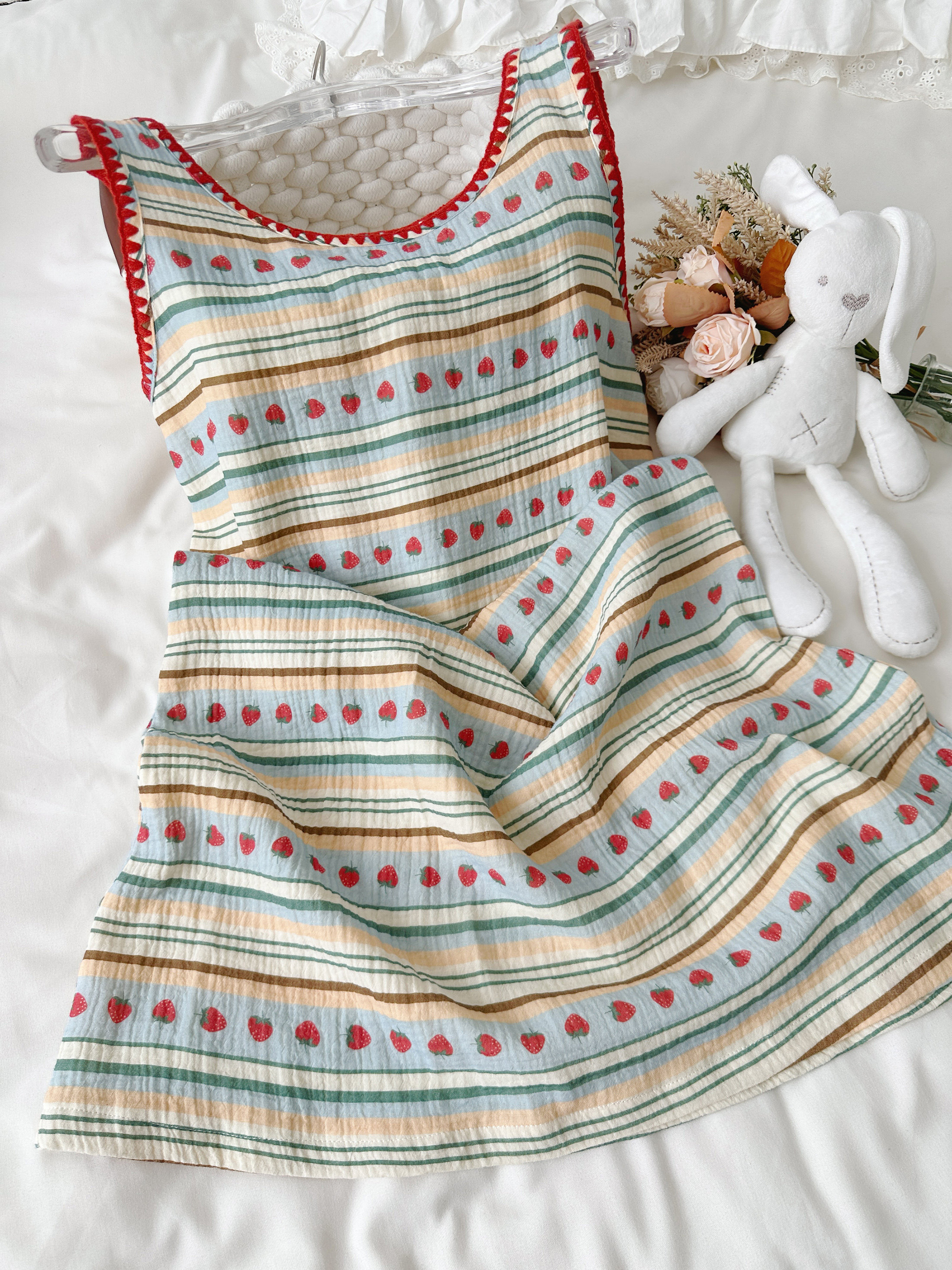 Korean Style Sweet Printed Women's Summer Camisole Baby Cotton Gauze Nightdress 2025 New Model Can Be Worn Outside Home Dress