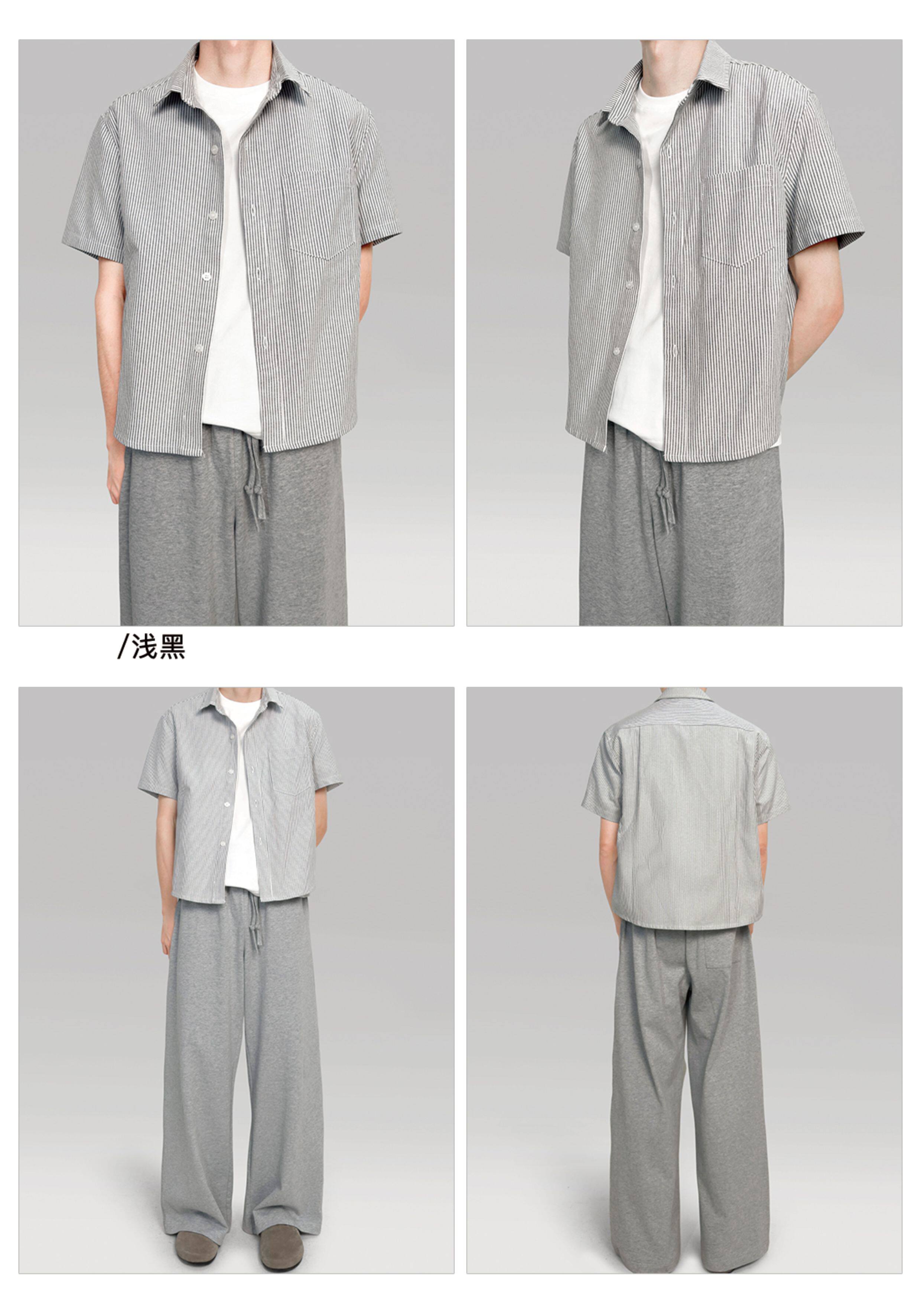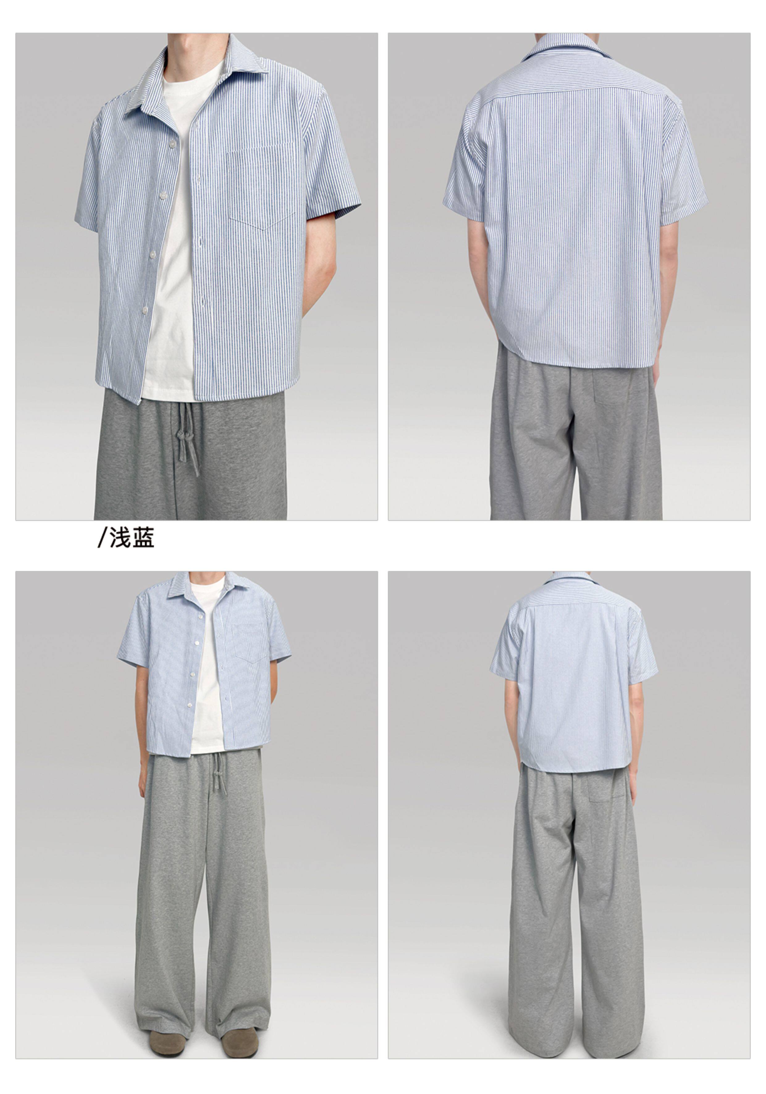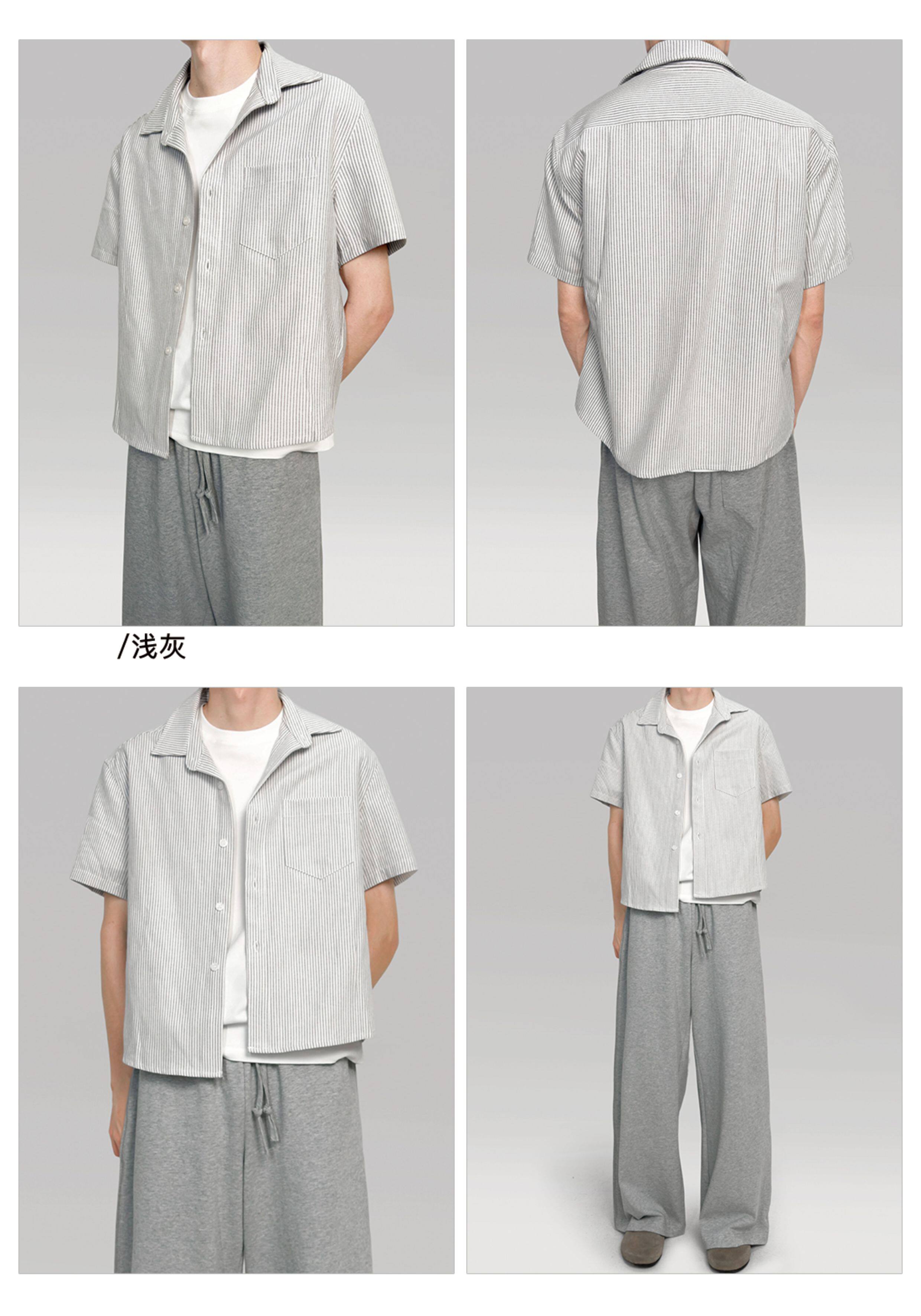 〔 PLUS NO LOGO 〕25SS 纯白/条纹短袖衬衫高级浅色短宽boxy版型