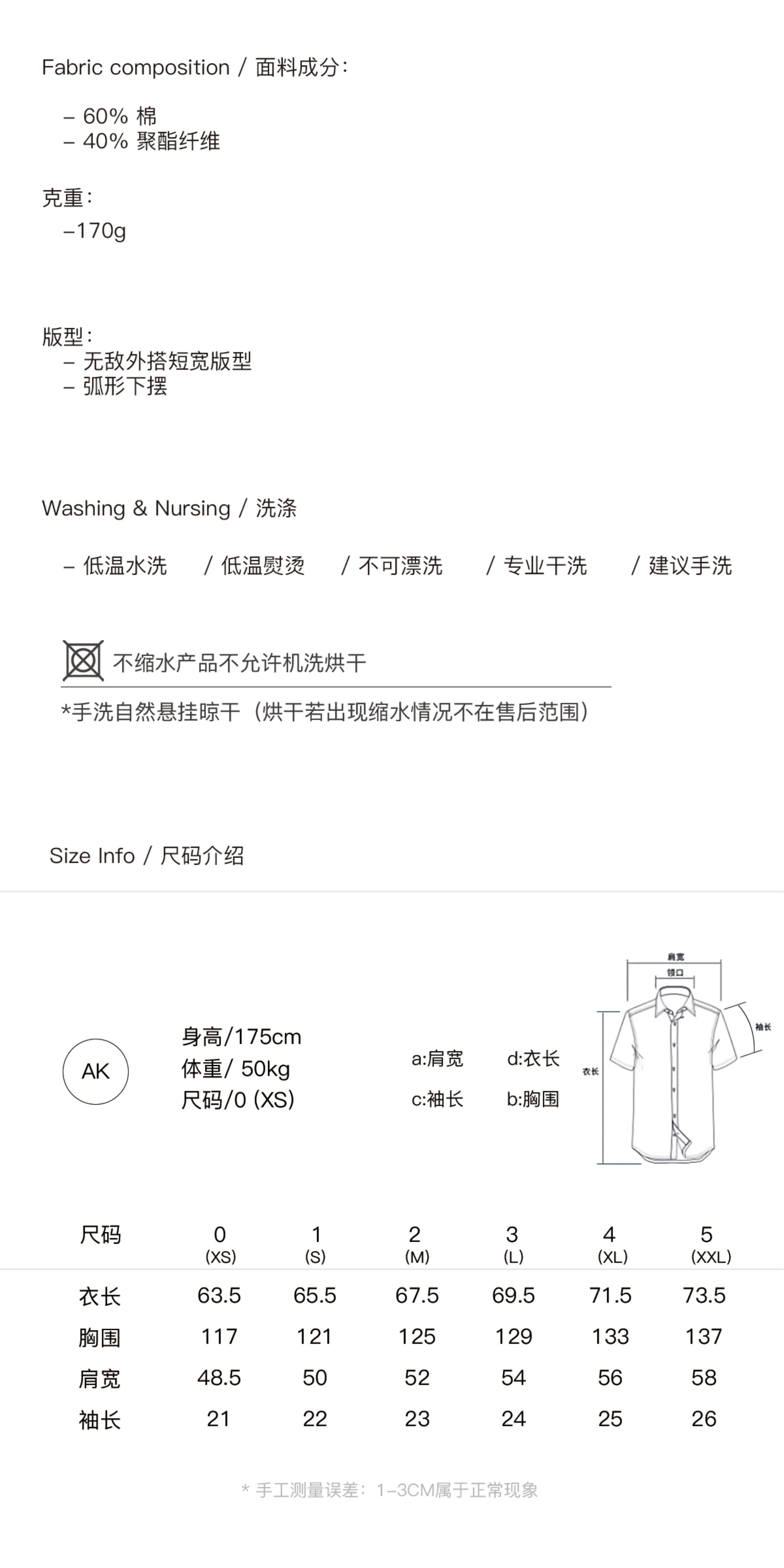 尺码 0(XS),1(S),2(M),3(L),4(XL)