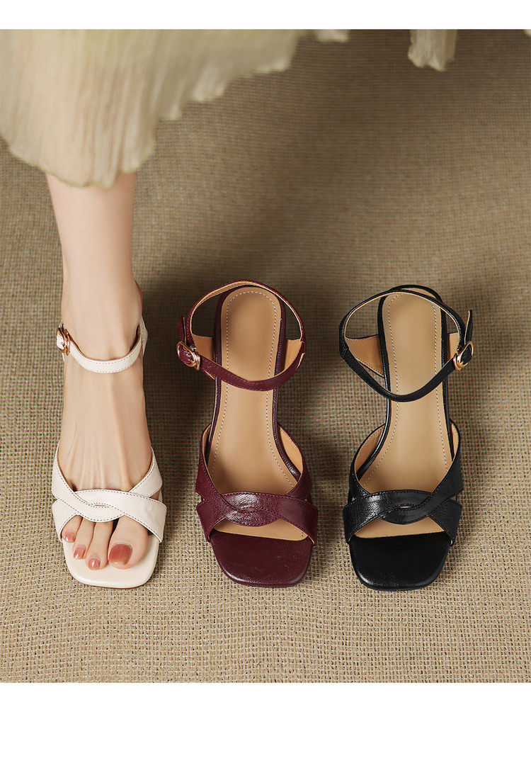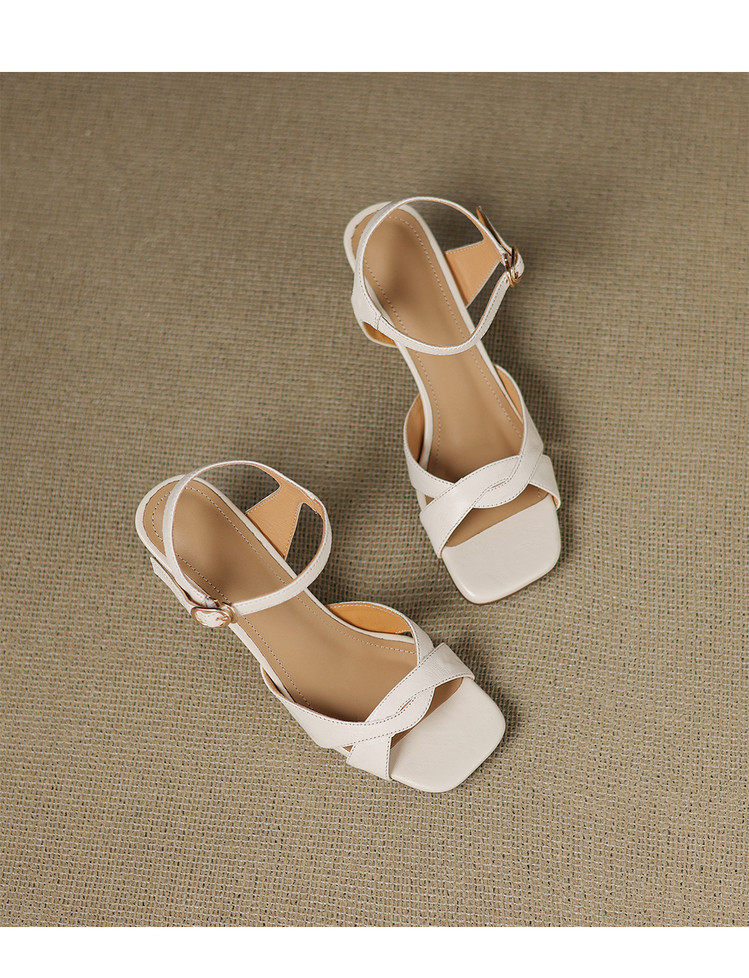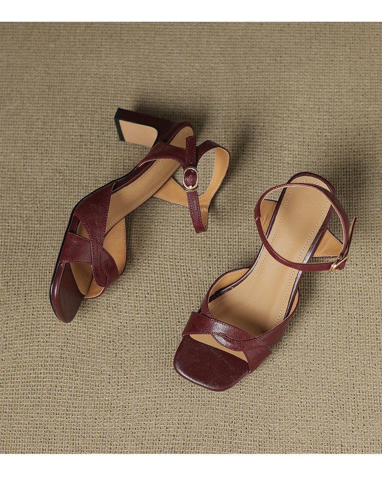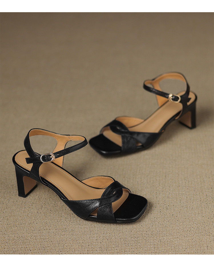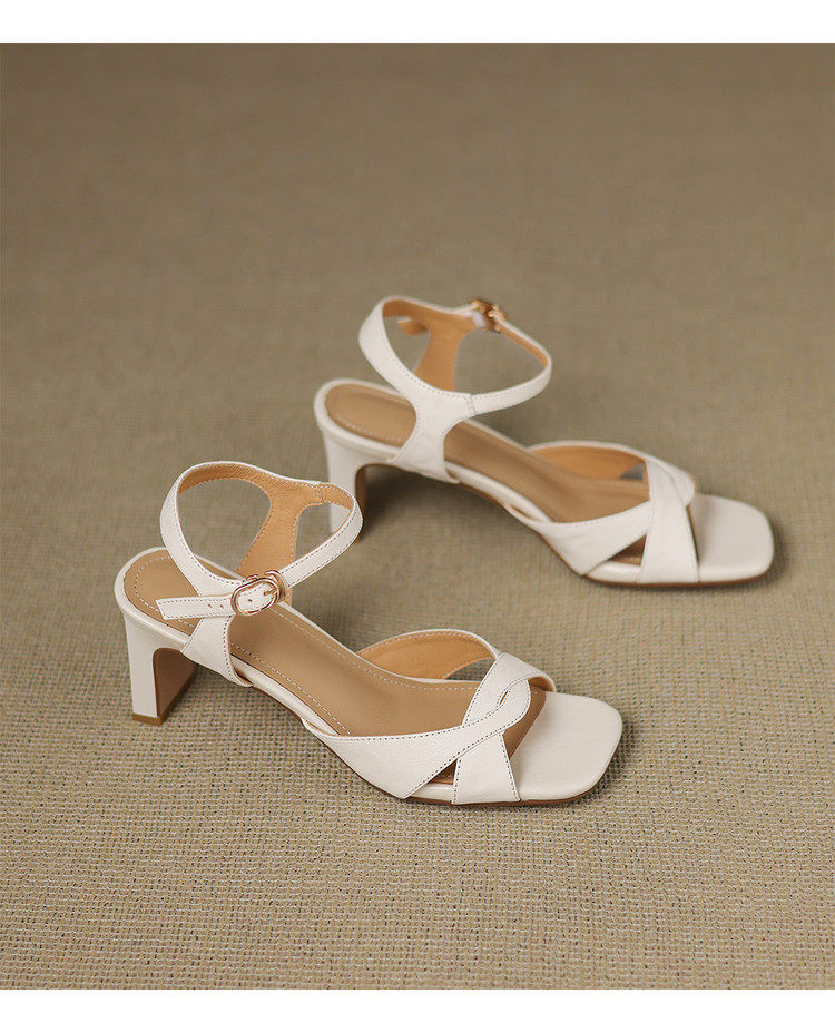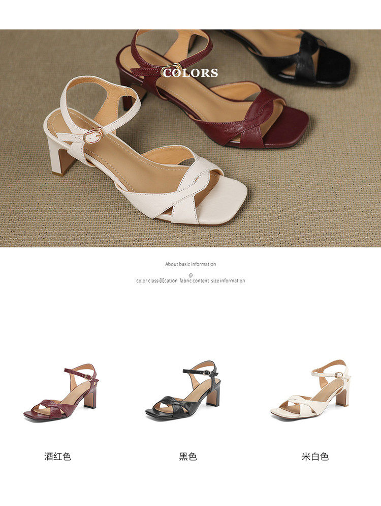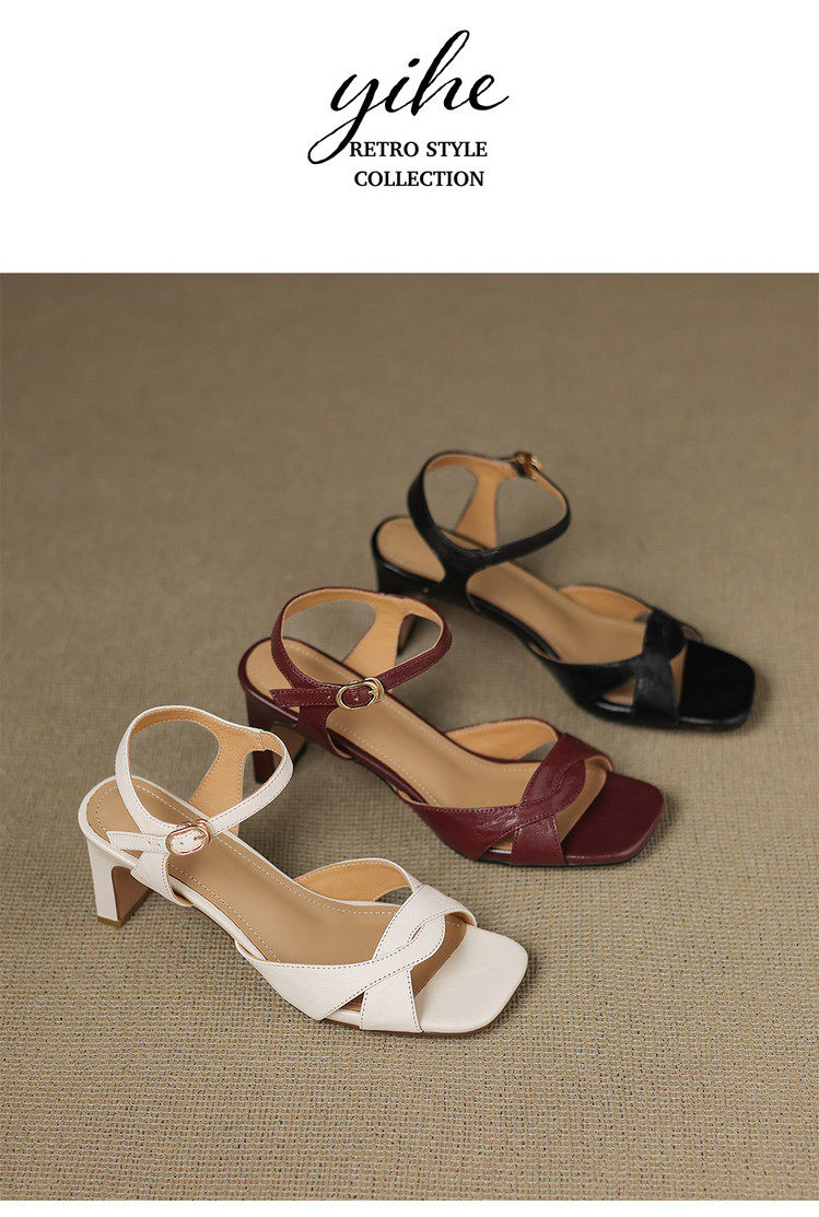 Simple retro thick heel women's sandals women's thick heel back strap open toe summer high heel mid heel 6.5cm sandals for women