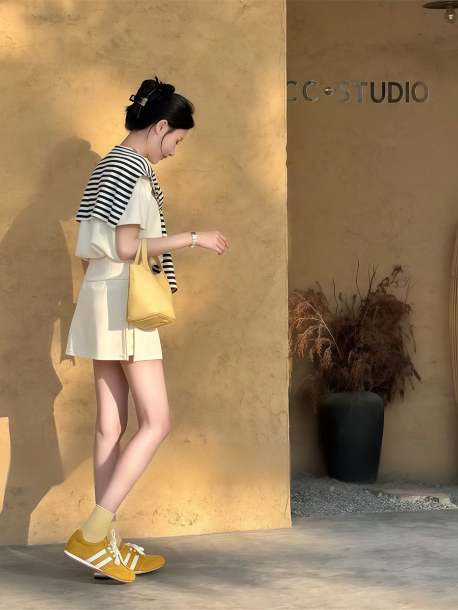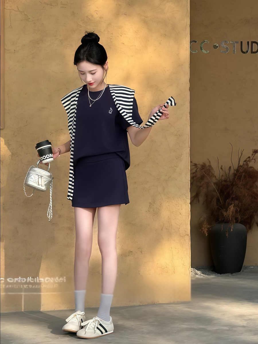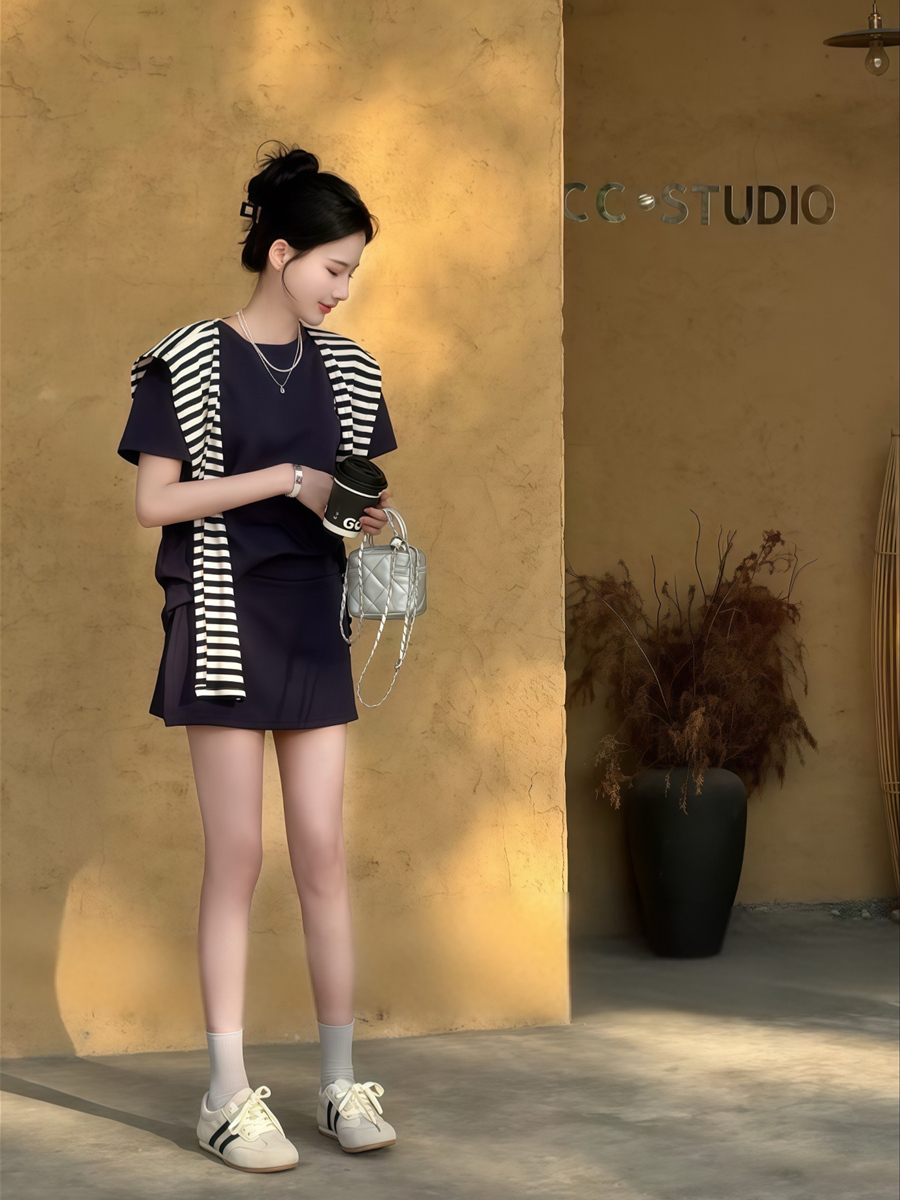 Salt-Style Sportswear Suit for Women, Summer Korean Fashion, Age-Reducing, Slimming, Short-Sleeved, Short Skirt, Casual Three-Piece Set