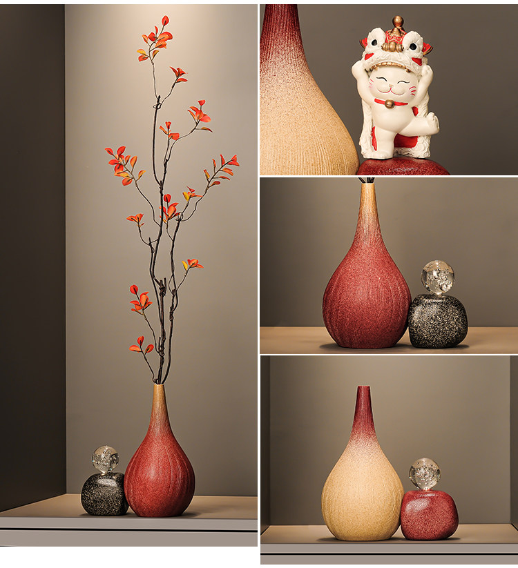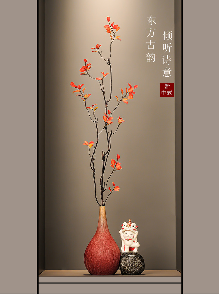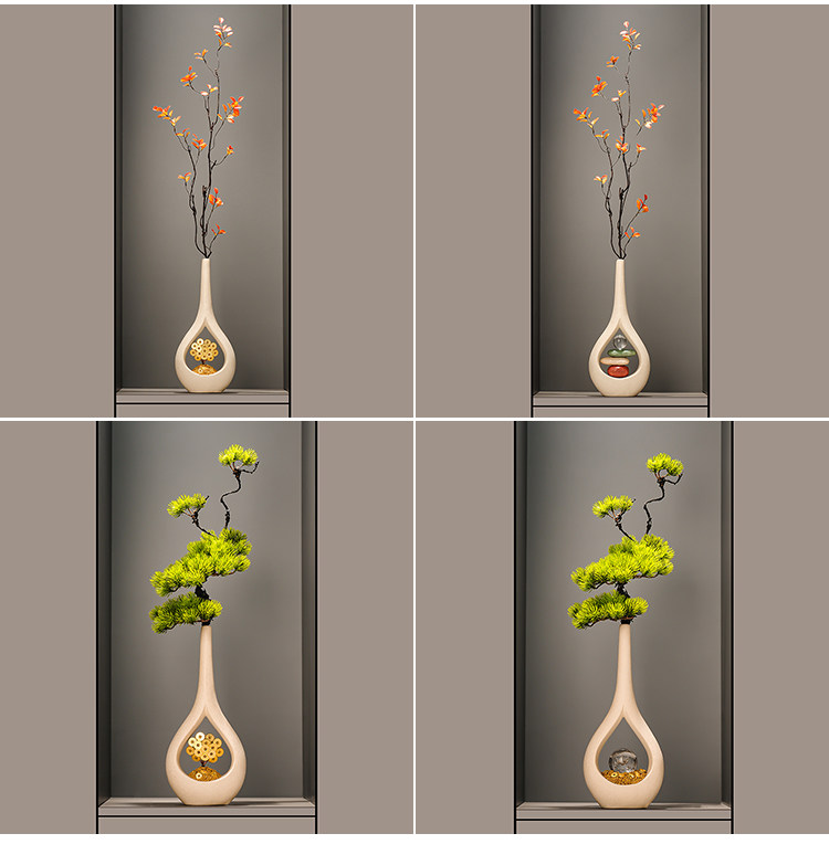 现代新中式高级陶瓷细长高花瓶入户玄关摆件客厅迎客松花艺装饰品