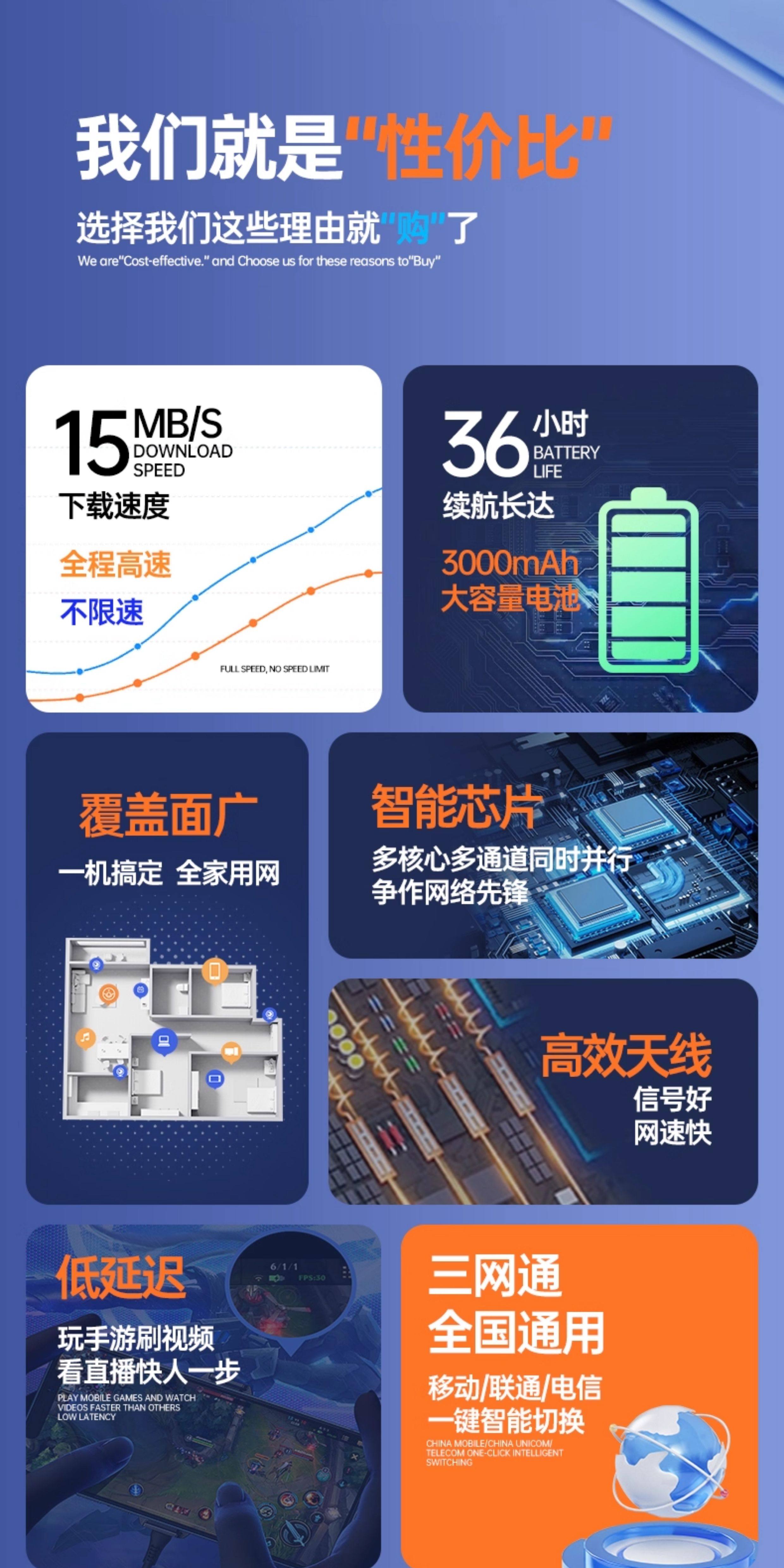 Tragbares WLAN, kabellos, mobil, tragbar, dreifaches Netzwerk, 4G-Netzwerk, nationaler allgemeiner Verkehr, Internet-Breitband-Auto-Hotspot, anwendbarer Router, offizieller Flagship-Store