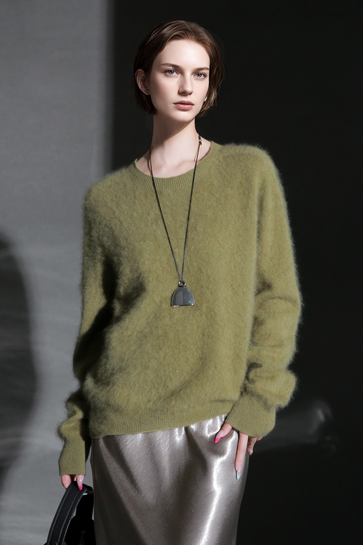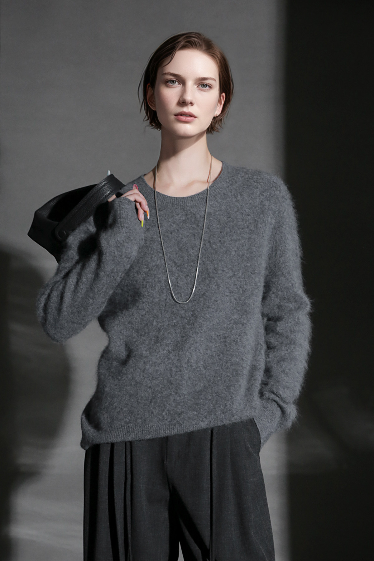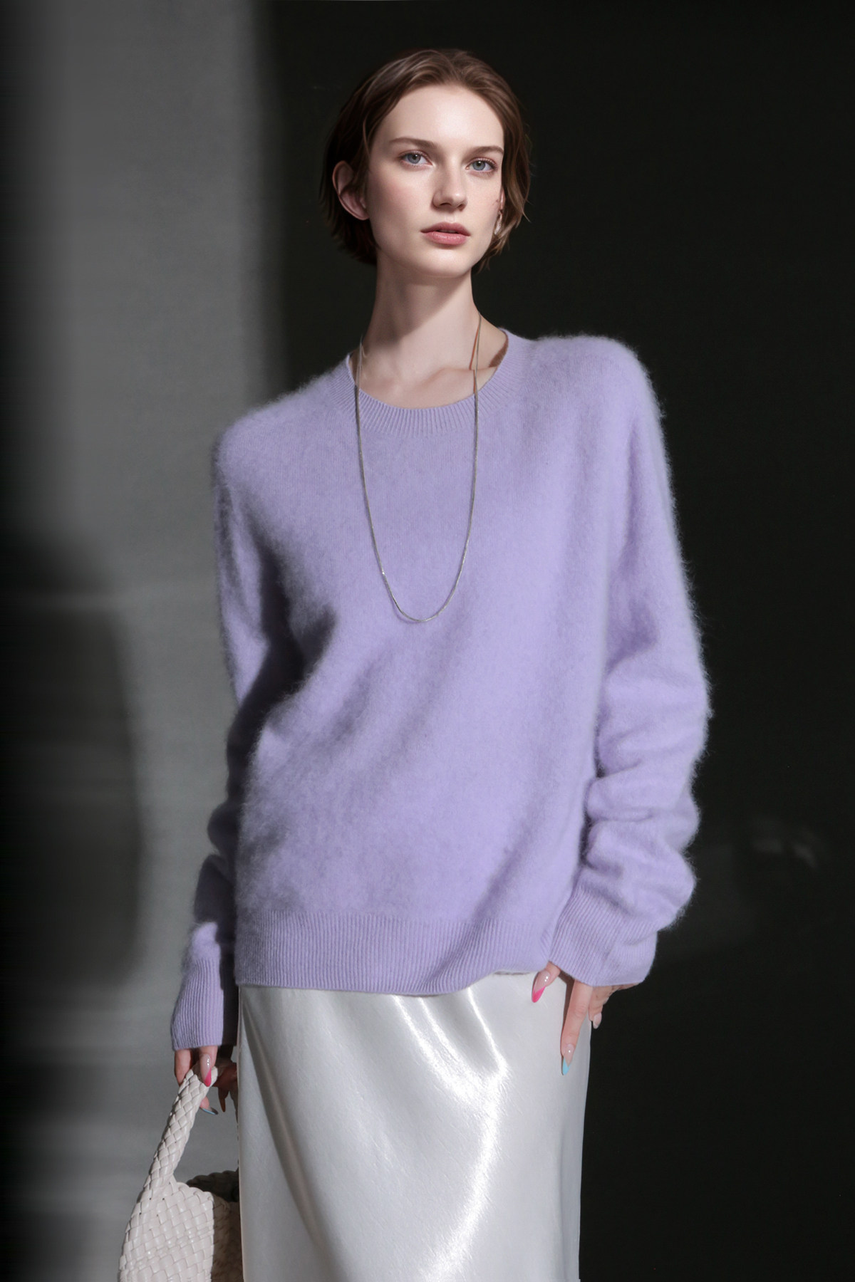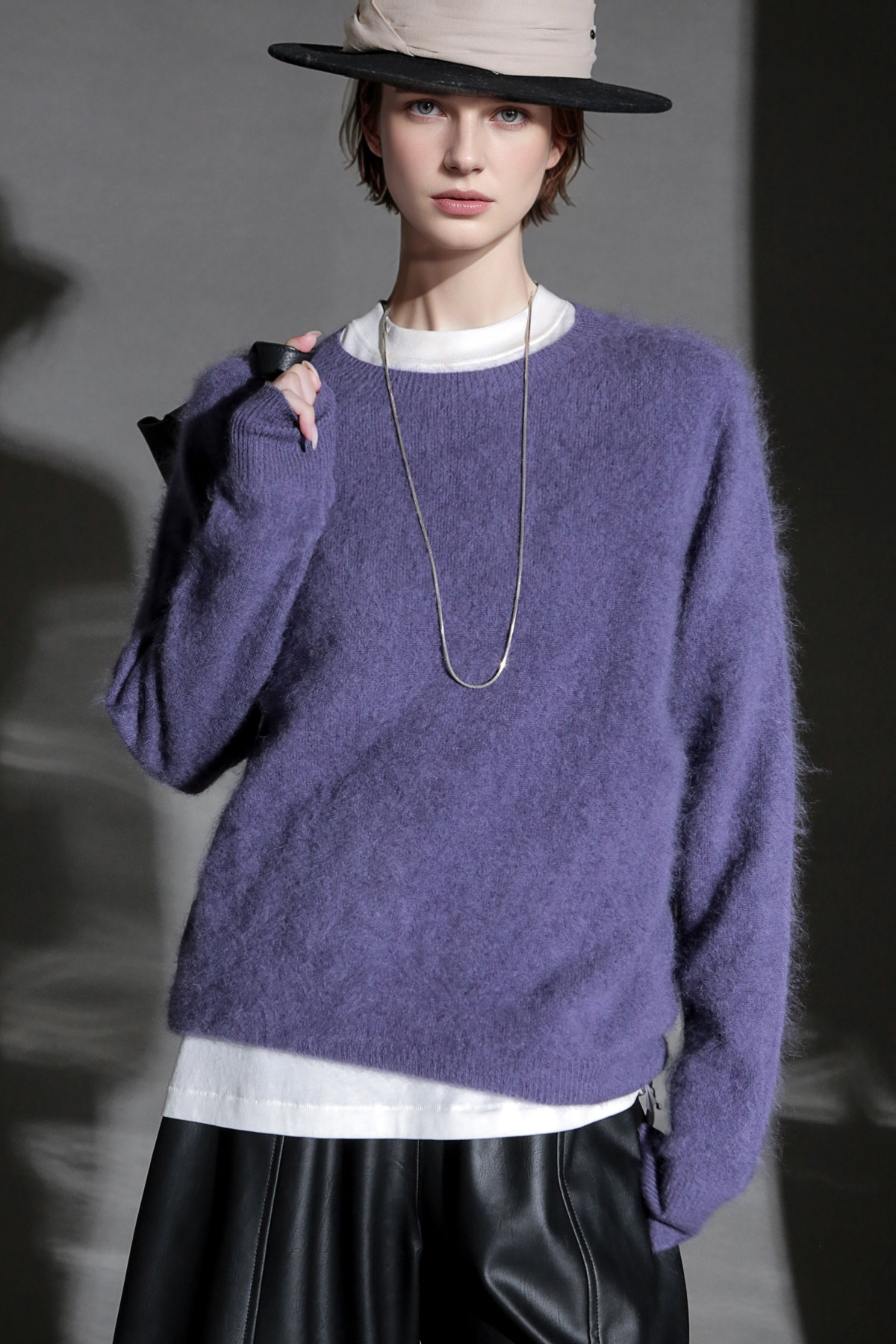 PIAOIN轻奢羊绒拉毛圆领无缝一体针织衫女欧美风宽松套头毛衣秋冬