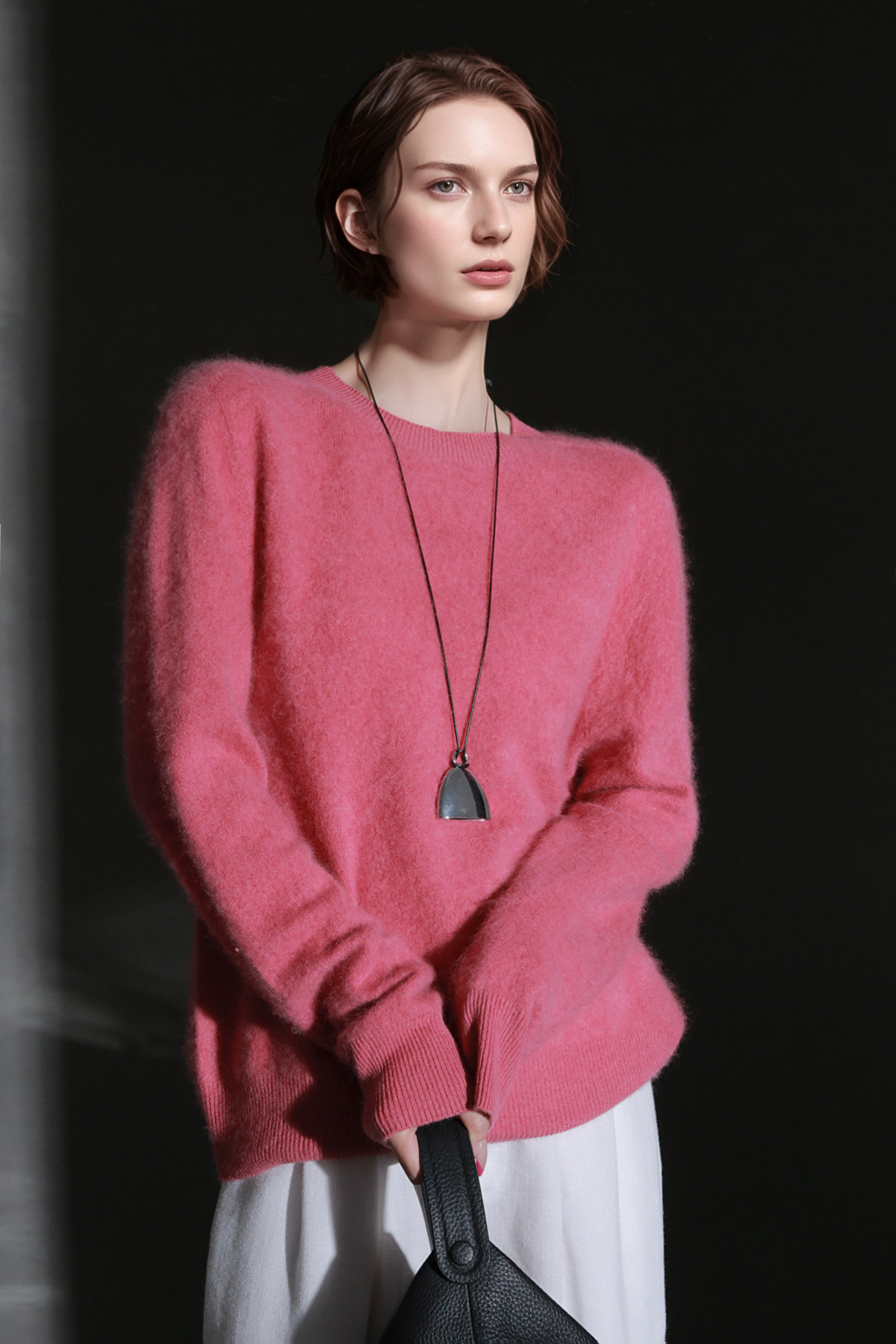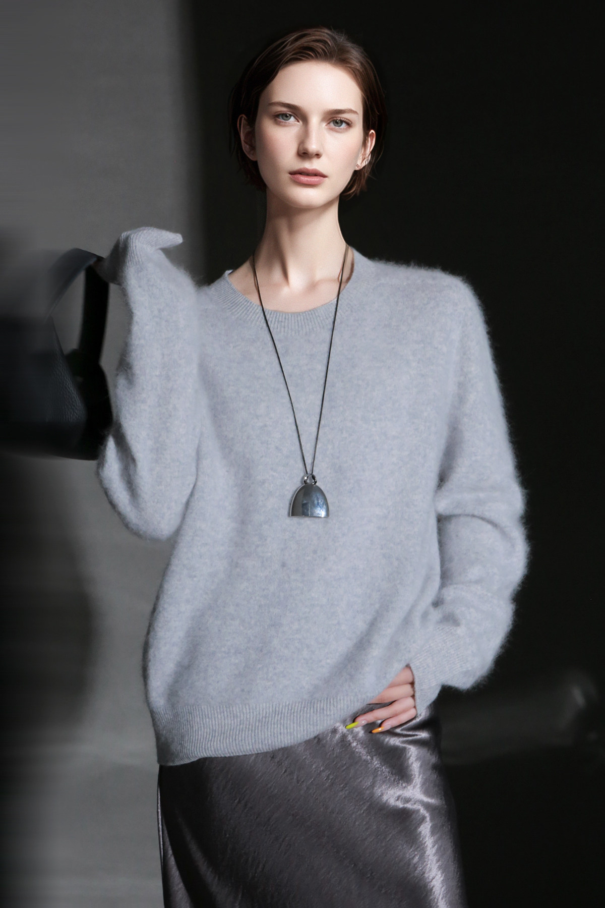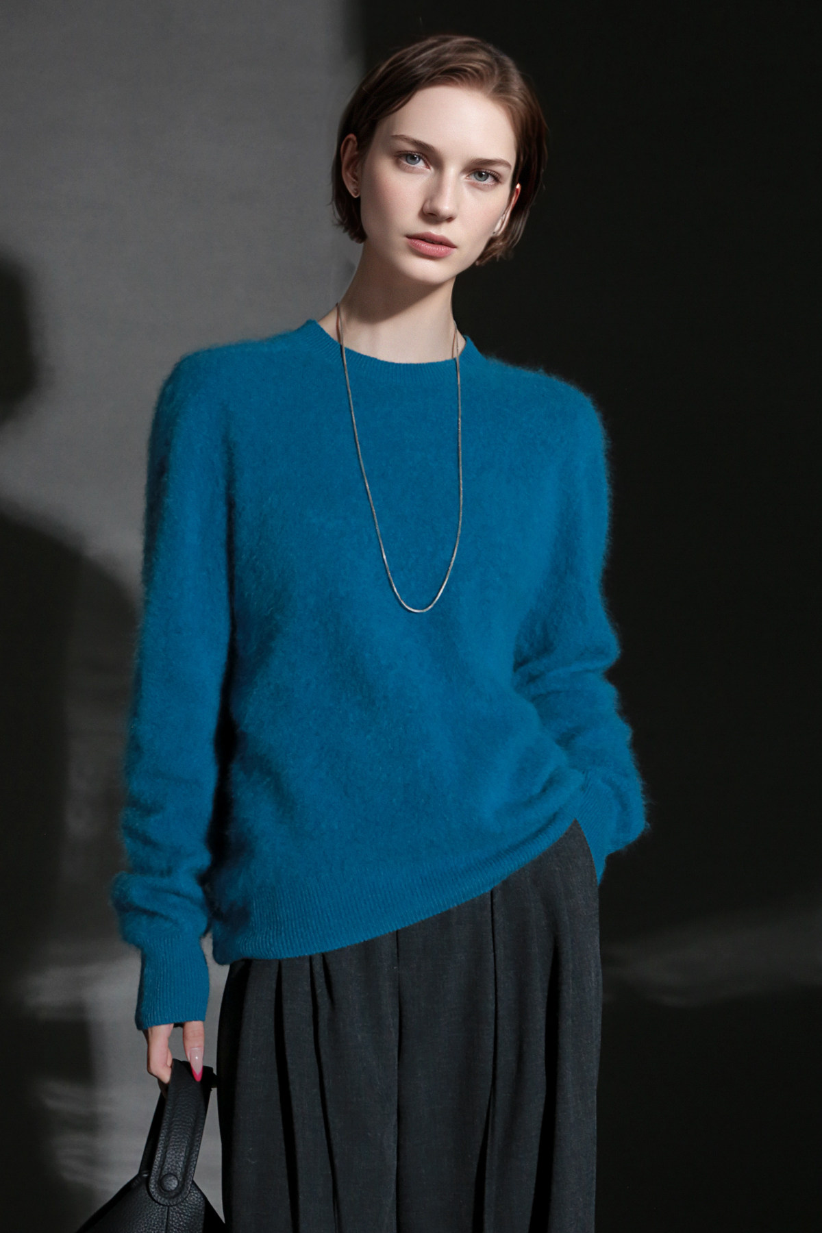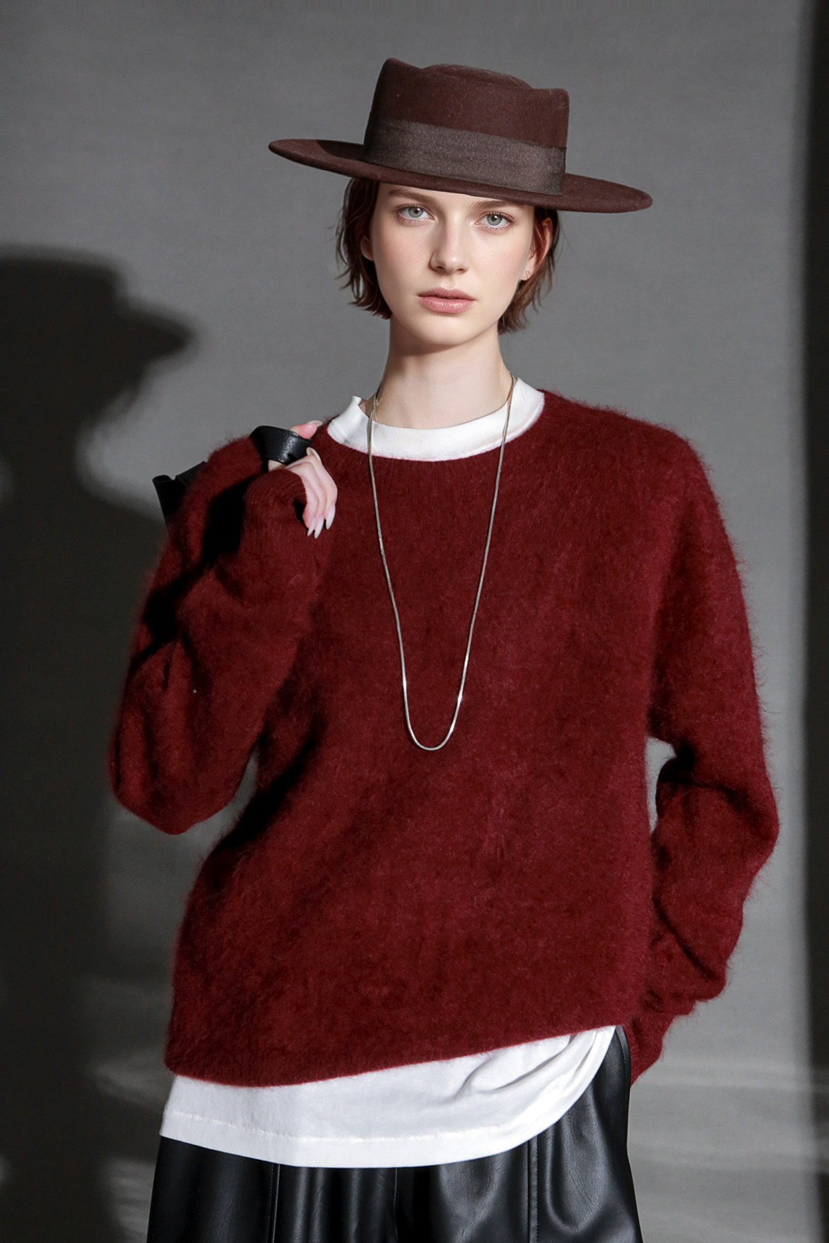 PIAOIN轻奢羊绒拉毛圆领无缝一体针织衫女欧美风宽松套头毛衣秋冬
