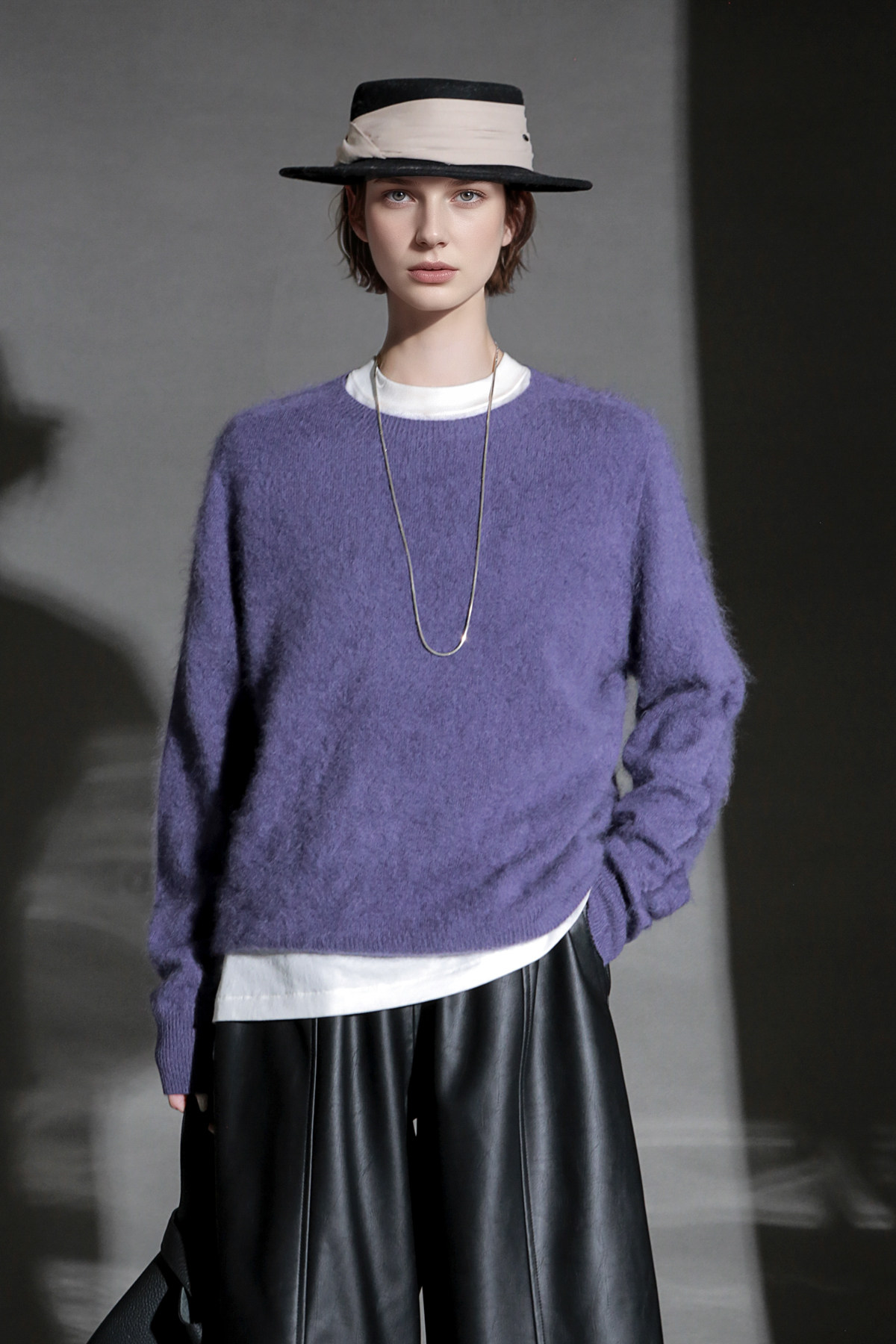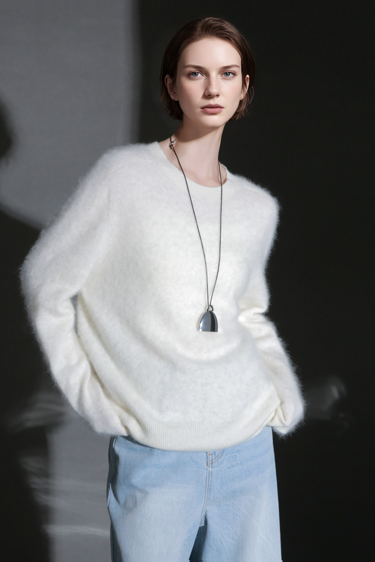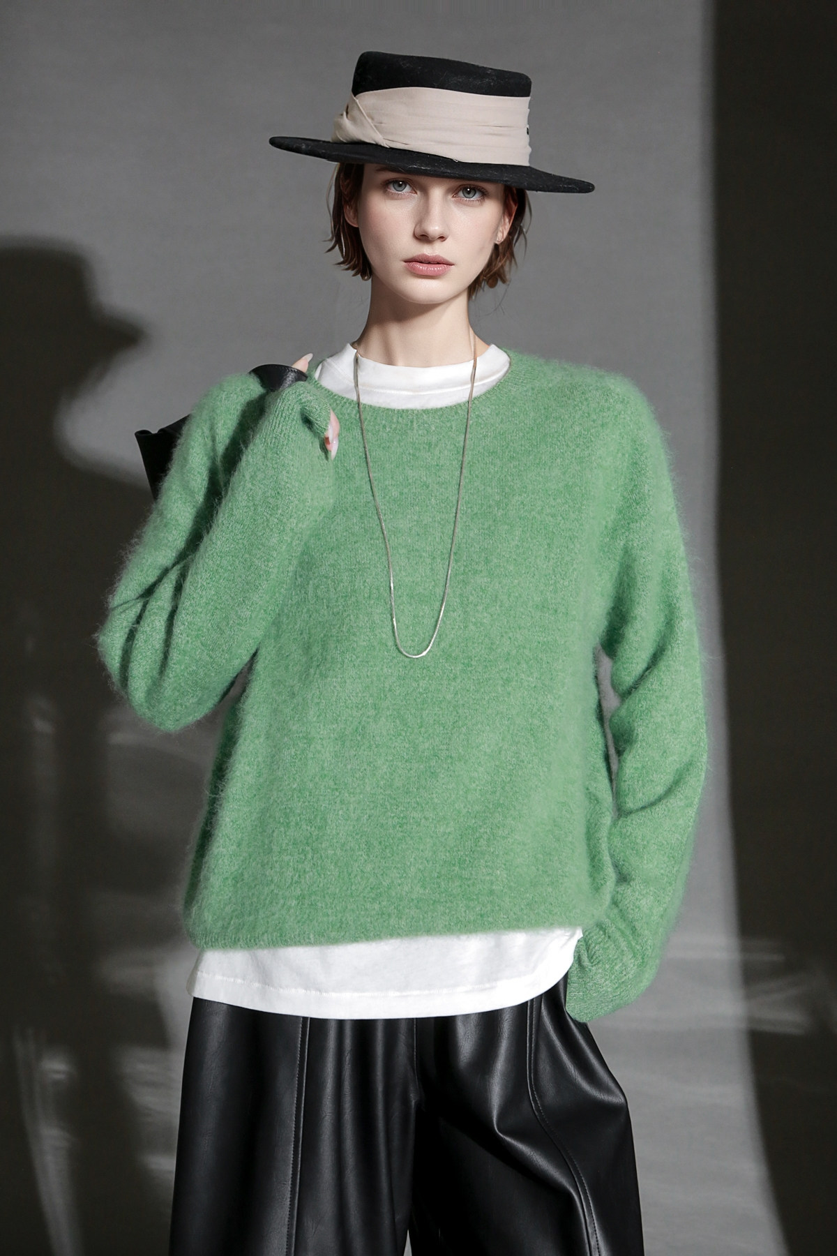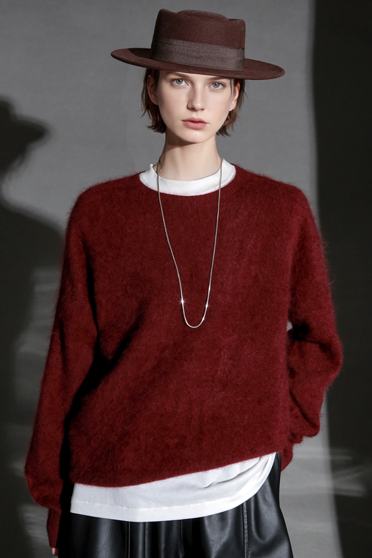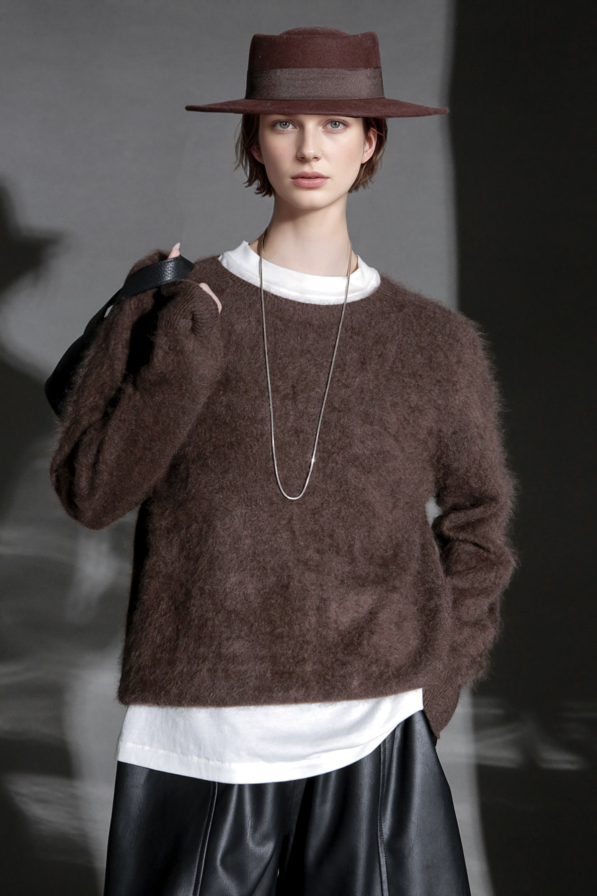 PIAOIN轻奢羊绒拉毛圆领无缝一体针织衫女欧美风宽松套头毛衣秋冬