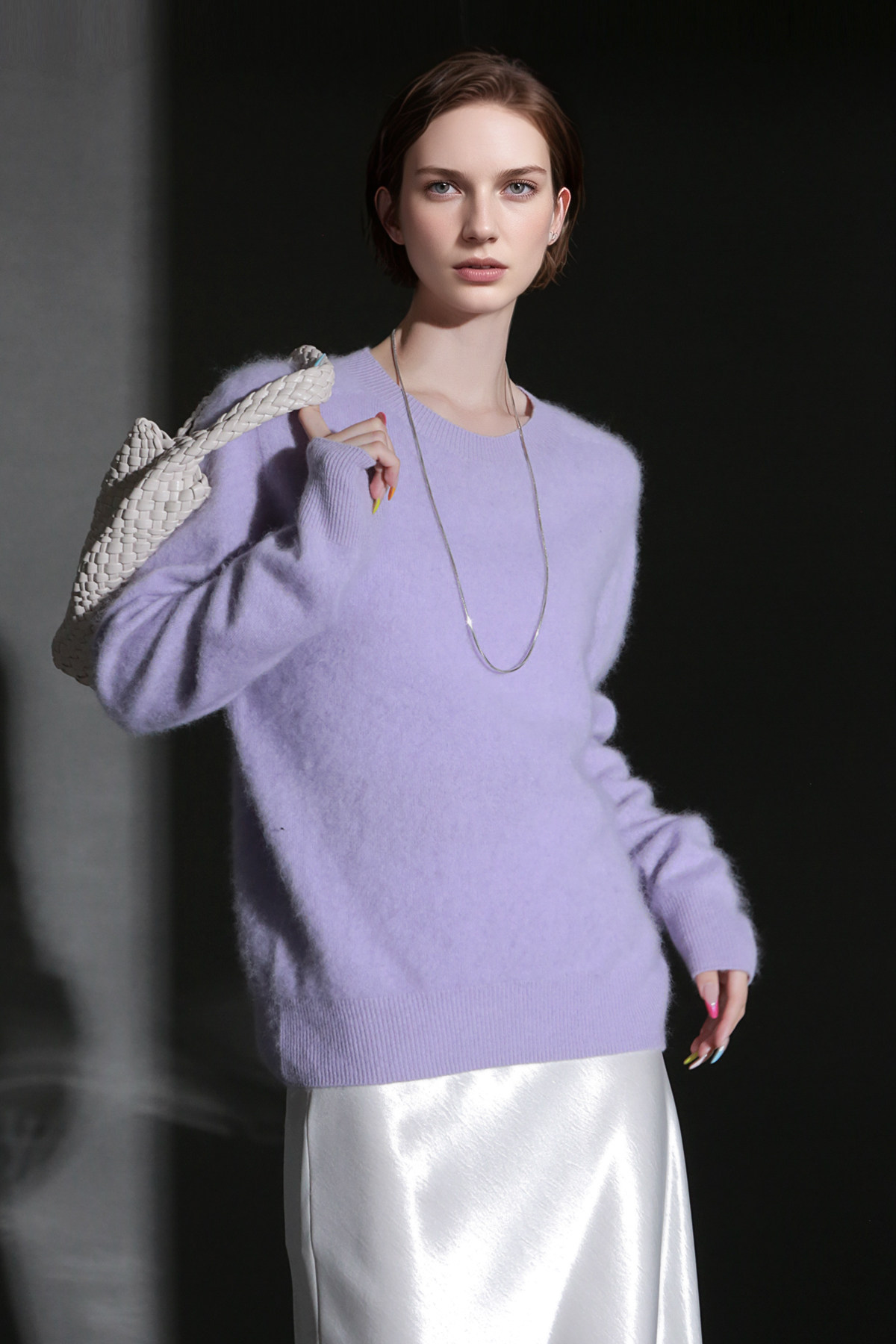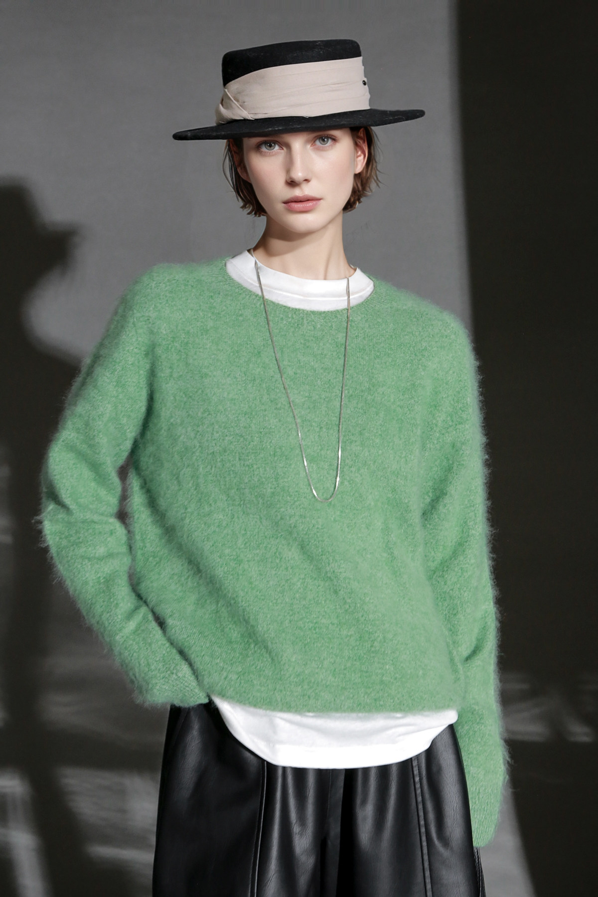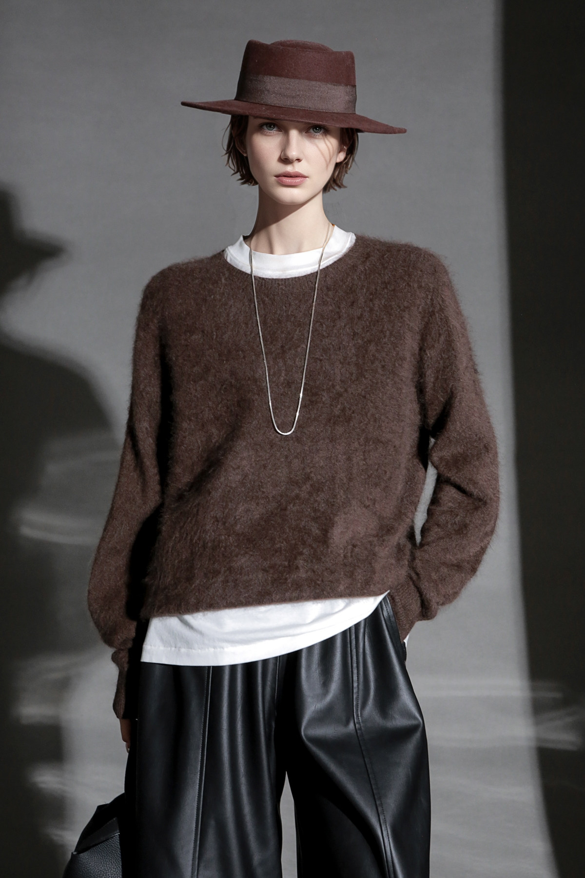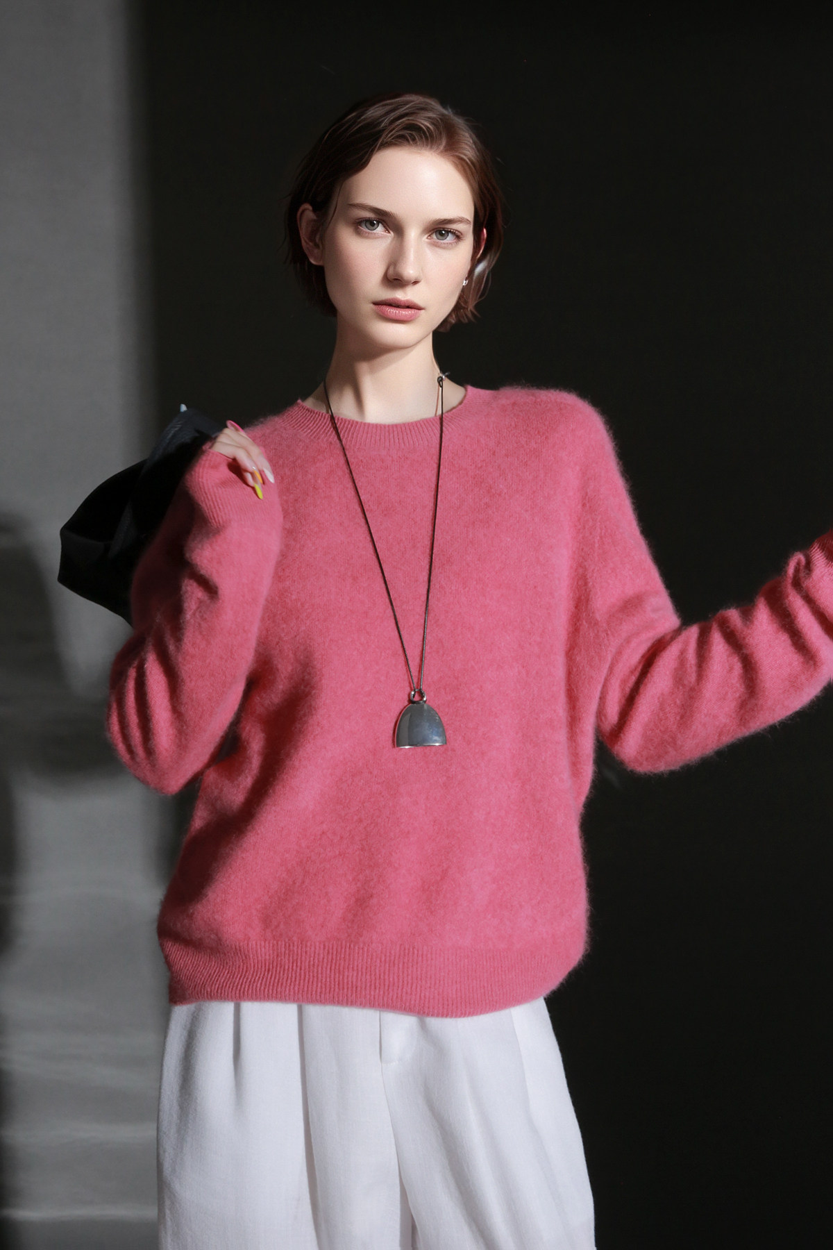 PIAOIN轻奢羊绒拉毛圆领无缝一体针织衫女欧美风宽松套头毛衣秋冬