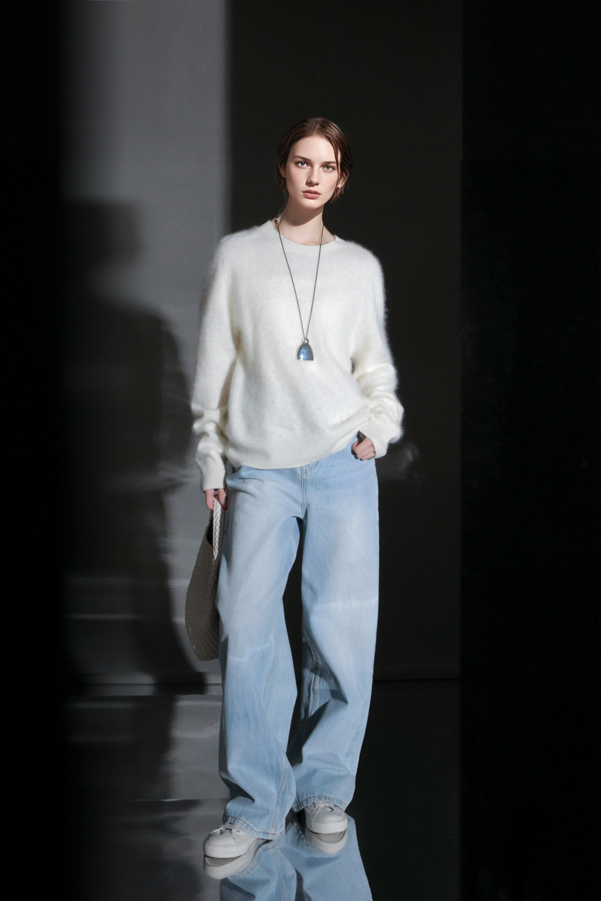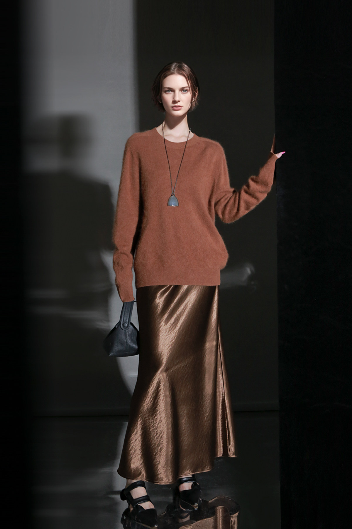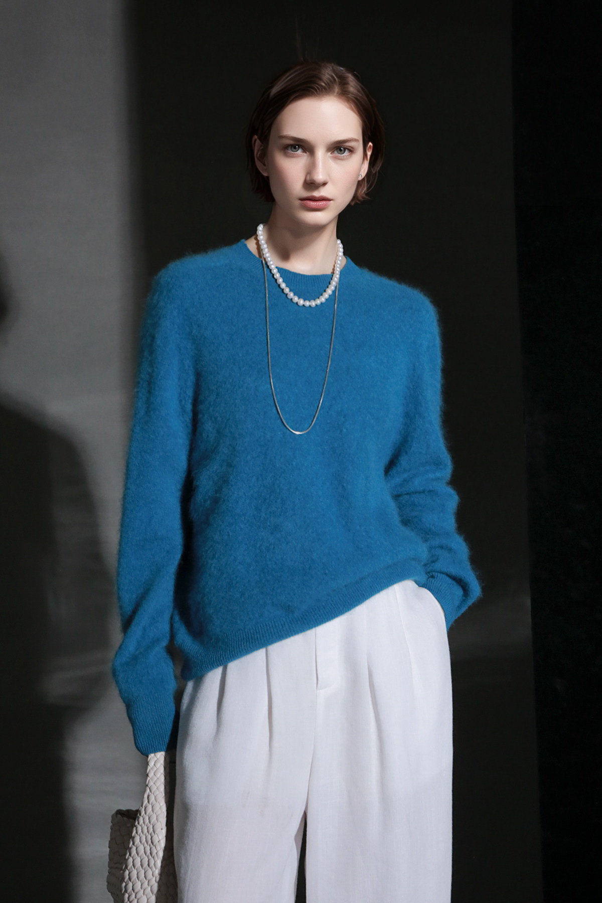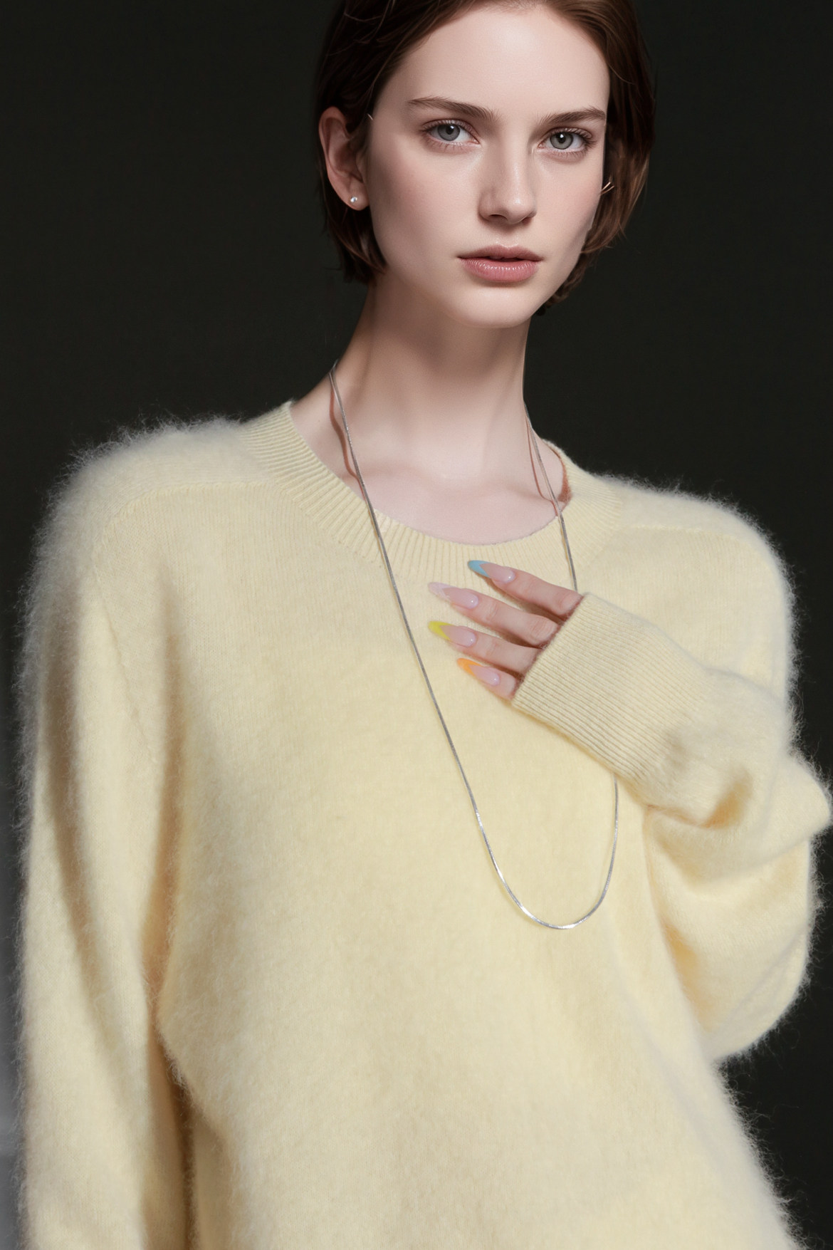 PIAOIN轻奢羊绒拉毛圆领无缝一体针织衫女欧美风宽松套头毛衣秋冬