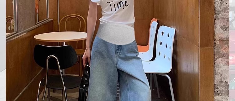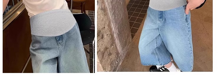 Maternity Denim Shorts, Summer Thin Style, Cropped Pants for Outer Wear, 2025 New Model, Non-Tight on the Belly, Wide-Leg Pants, Summer Wear
