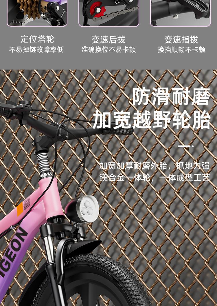 飞鸽儿童自行车6-12岁8-15岁男女孩小学生中大童山地减震变速单车