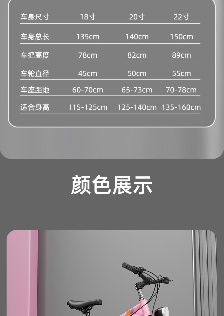 颜色分类 银灰色-辐条轮,天青色-辐条轮,粉紫色-辐条轮,银灰色-一体轮,天青色-一体轮,粉紫色-一体轮,银灰色-辐条轮-带后座,天青色-辐条轮-带后座,粉紫色-辐条轮-带后座,银灰色-一体轮-带后座,天青色-一体轮轮-带后座,粉紫色-一体轮-带后座