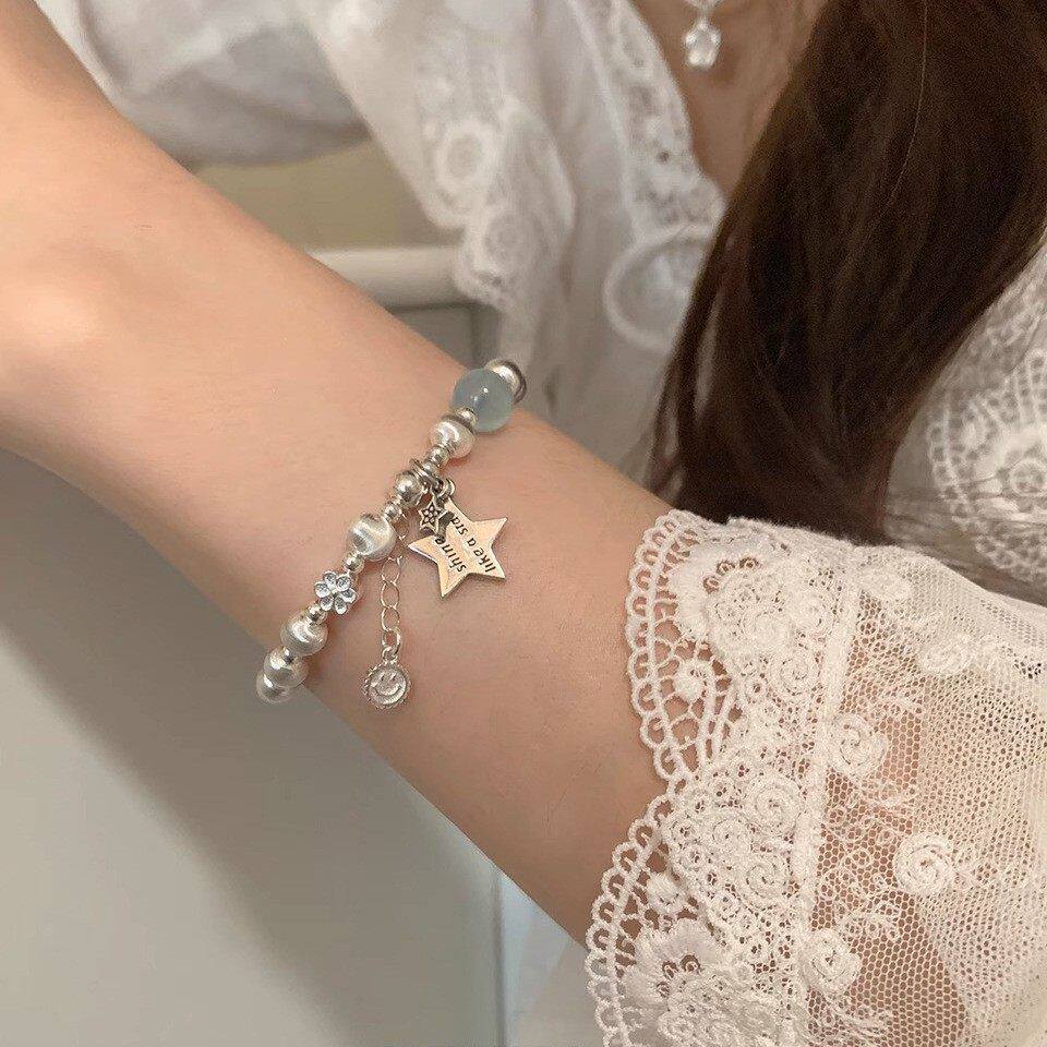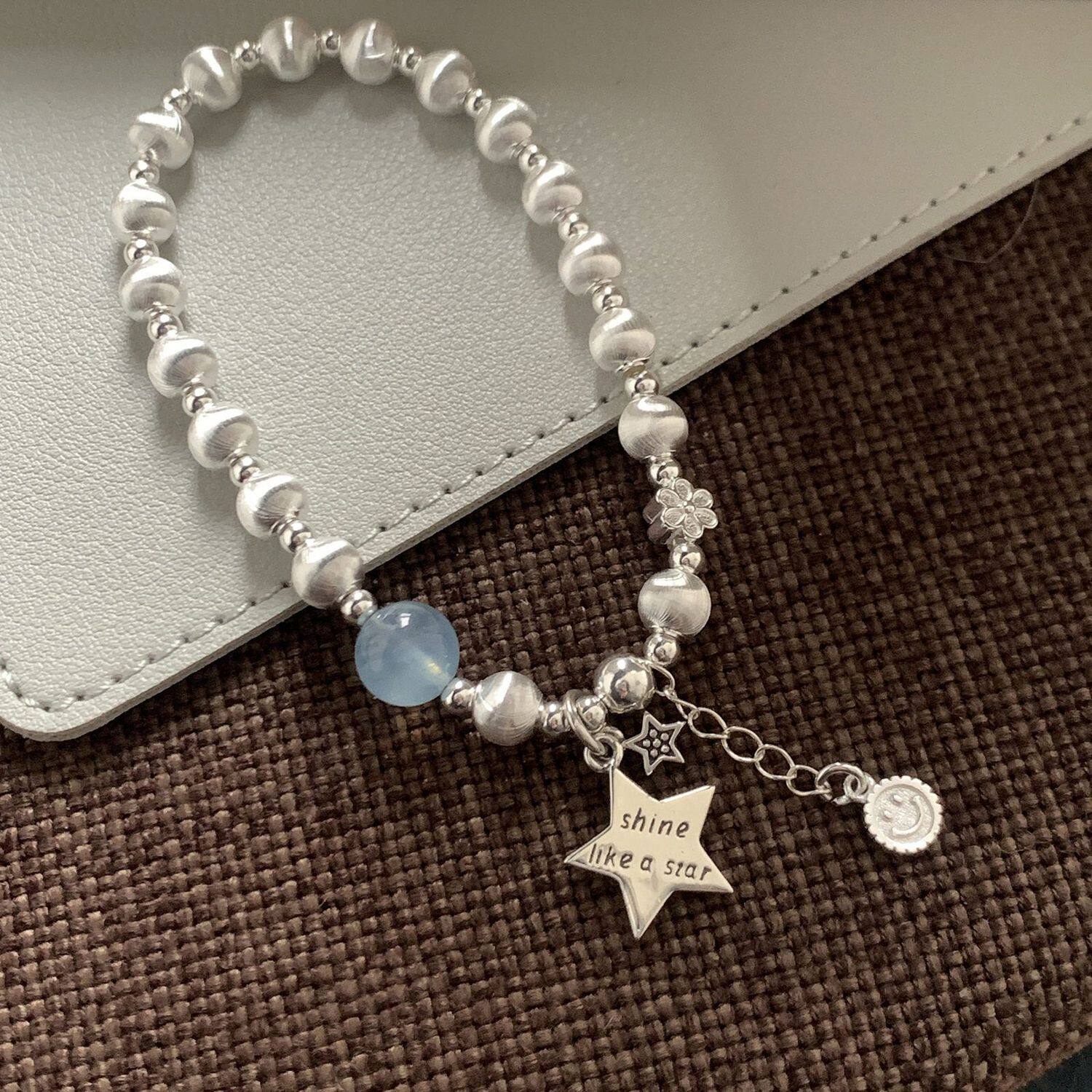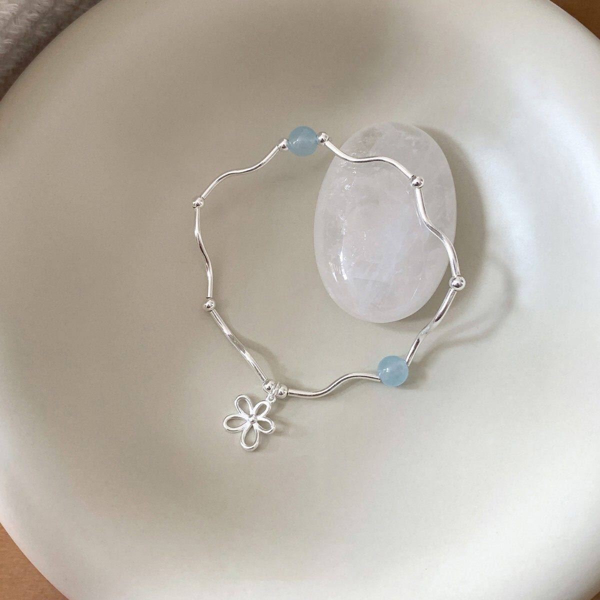 Korean minimalist aquamarine 925 sterling silver collection pearl bracelet women's broken silver handmade bracelet niche fashion versatile