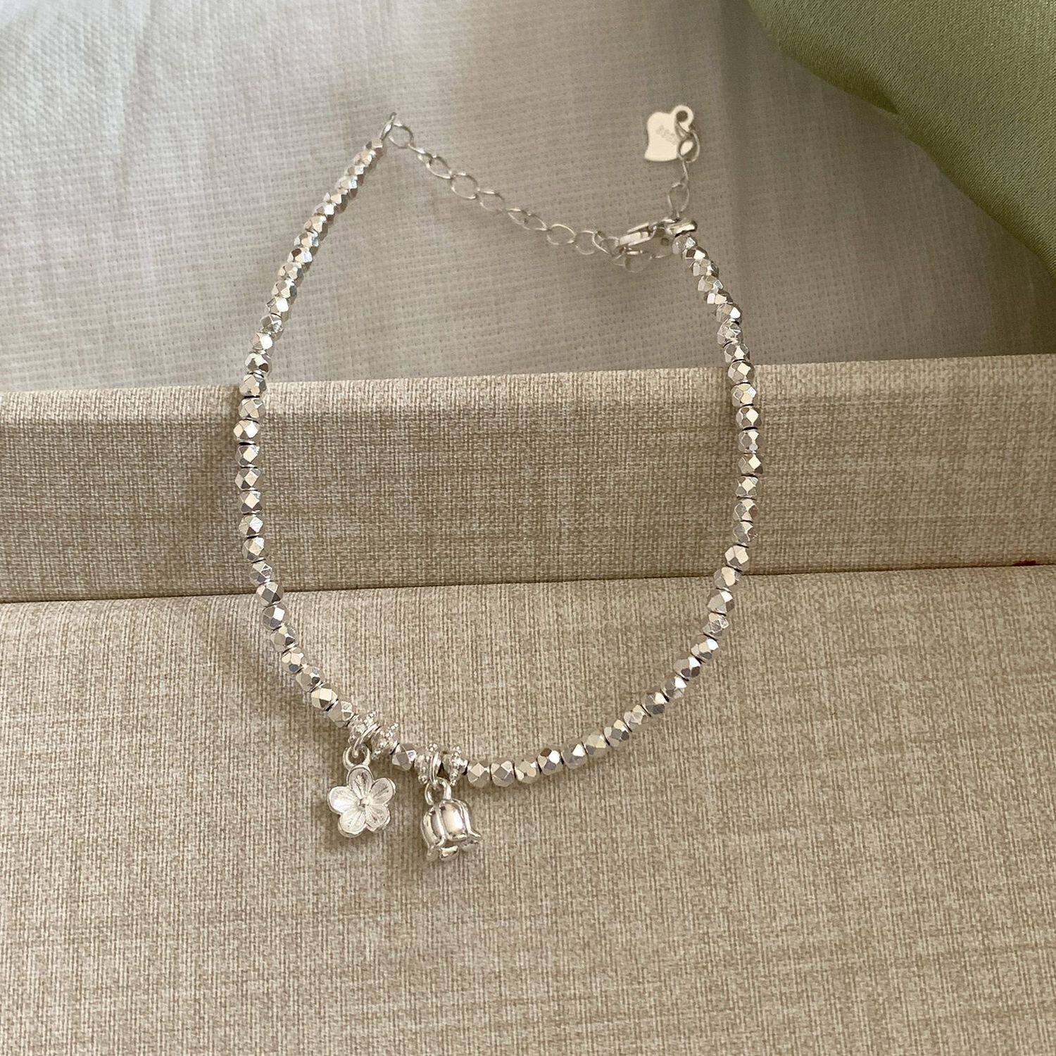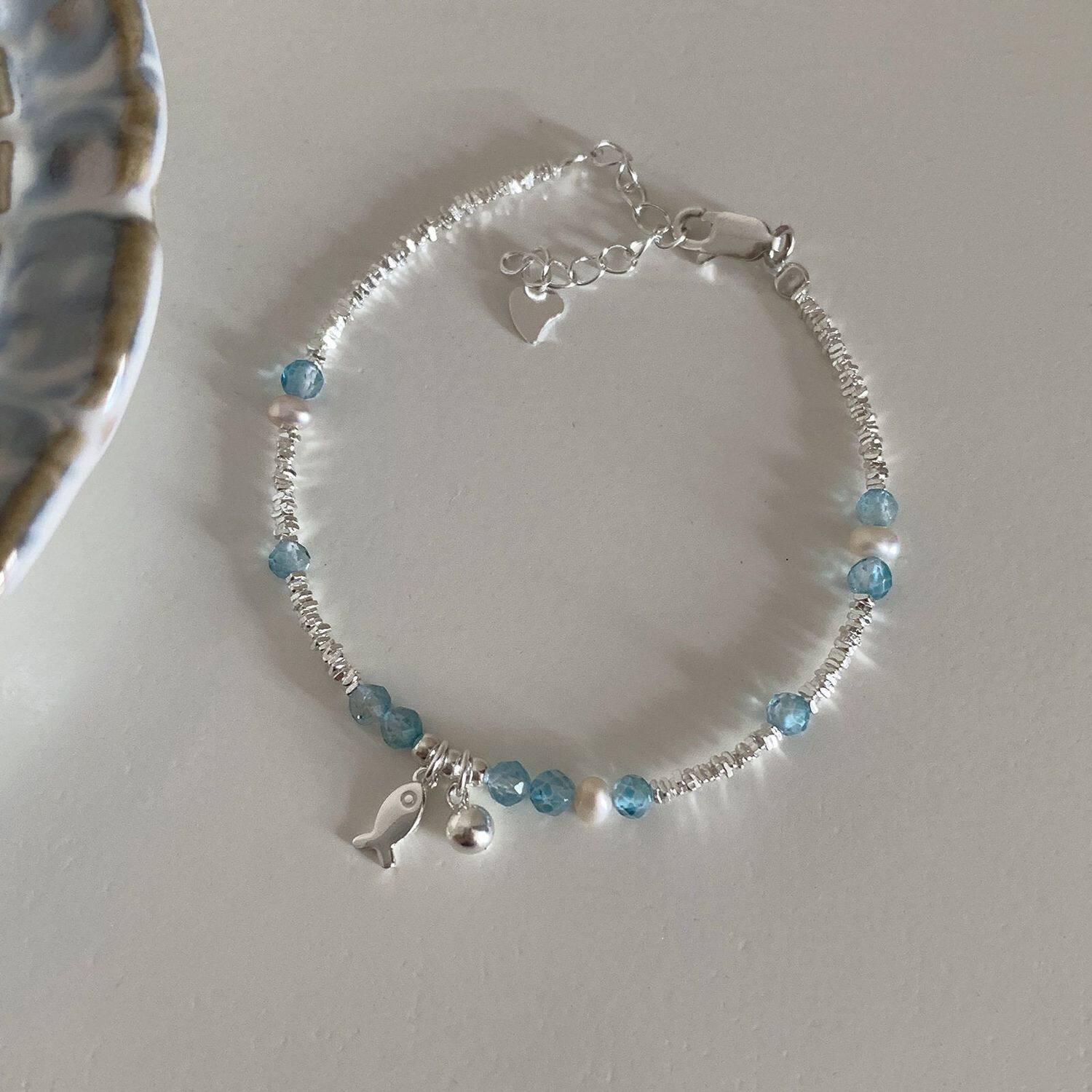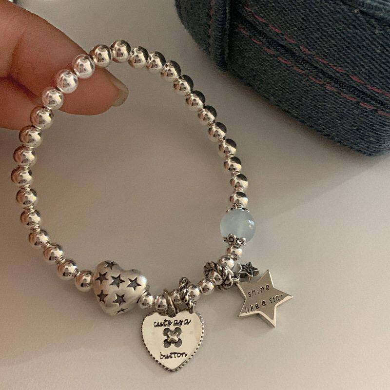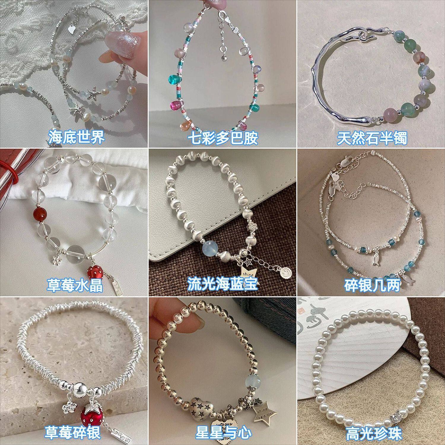 Korean minimalist aquamarine 925 sterling silver collection pearl bracelet women's broken silver handmade bracelet niche fashion versatile