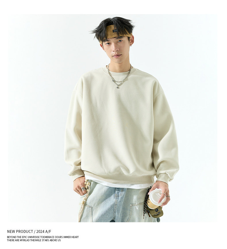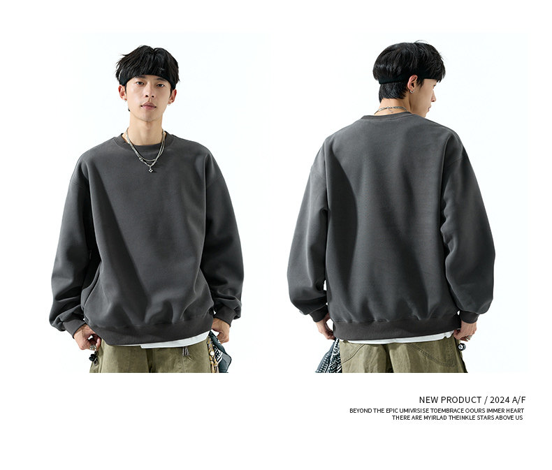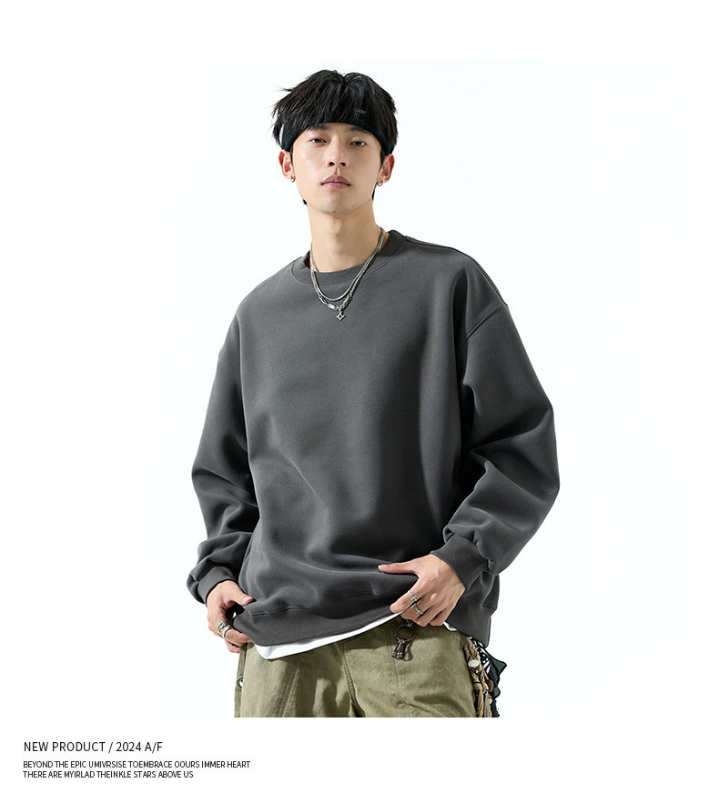 Duken 450G Heavyweight Round Neck Sweater for Men and Women Spring and Autumn 2025 Solid Color Bottoming Shirt Pullover Jacket Trend