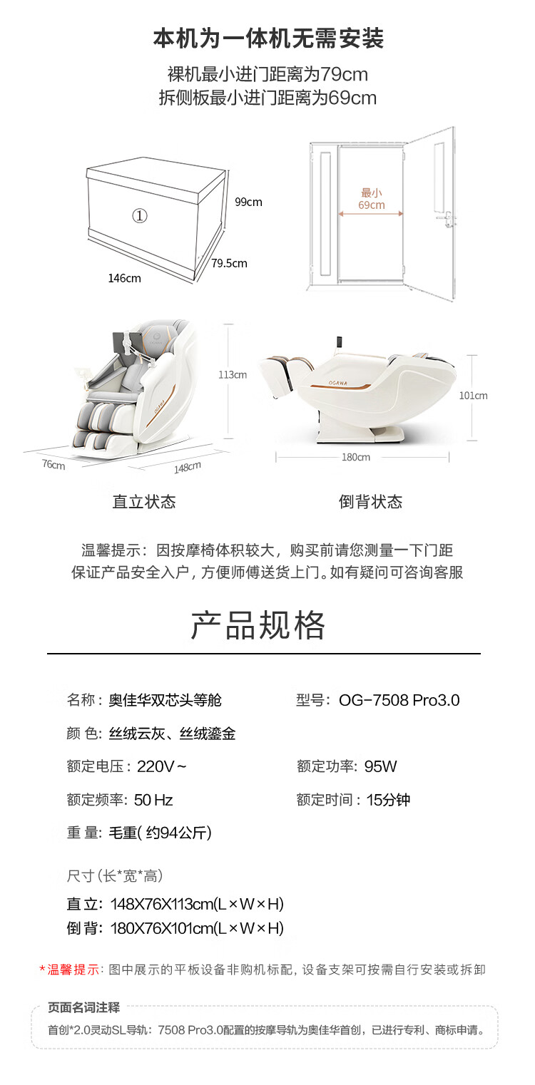 OGAWA Home Appliances State Subsidy Massage Chair 2025 Top Ten Brands Home Space Capsule Smart Home Appliances 3D Movement Dual Movements Gifts for the Elderly Luxurious First Class 7508Pro3.0 Velvet Gilt