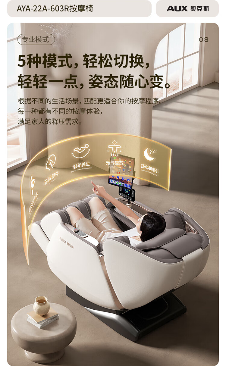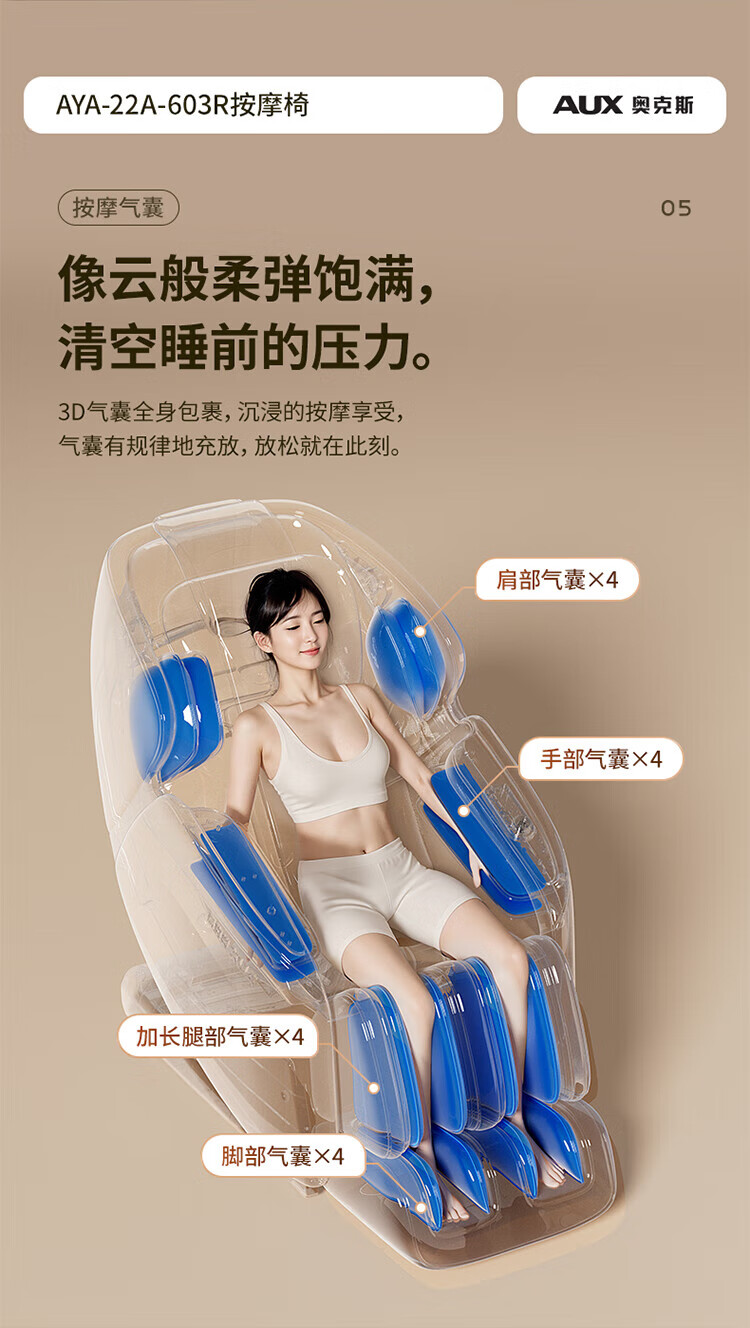 AUX Super Subsidy Plus 2025 New Massage Chair 603R Home Space Capsule Full Body Sofa 3D Movement Kneading Intelligent Electric Multi-Function Small Recliner for Middle-aged and Elderly 3D Stainless Steel Movement + SL Double Guide Beige Brown Recommended Luxury Gifts for Procurement and Sales Blockbuster New Products Subvert the Industry丨All-around Sales King