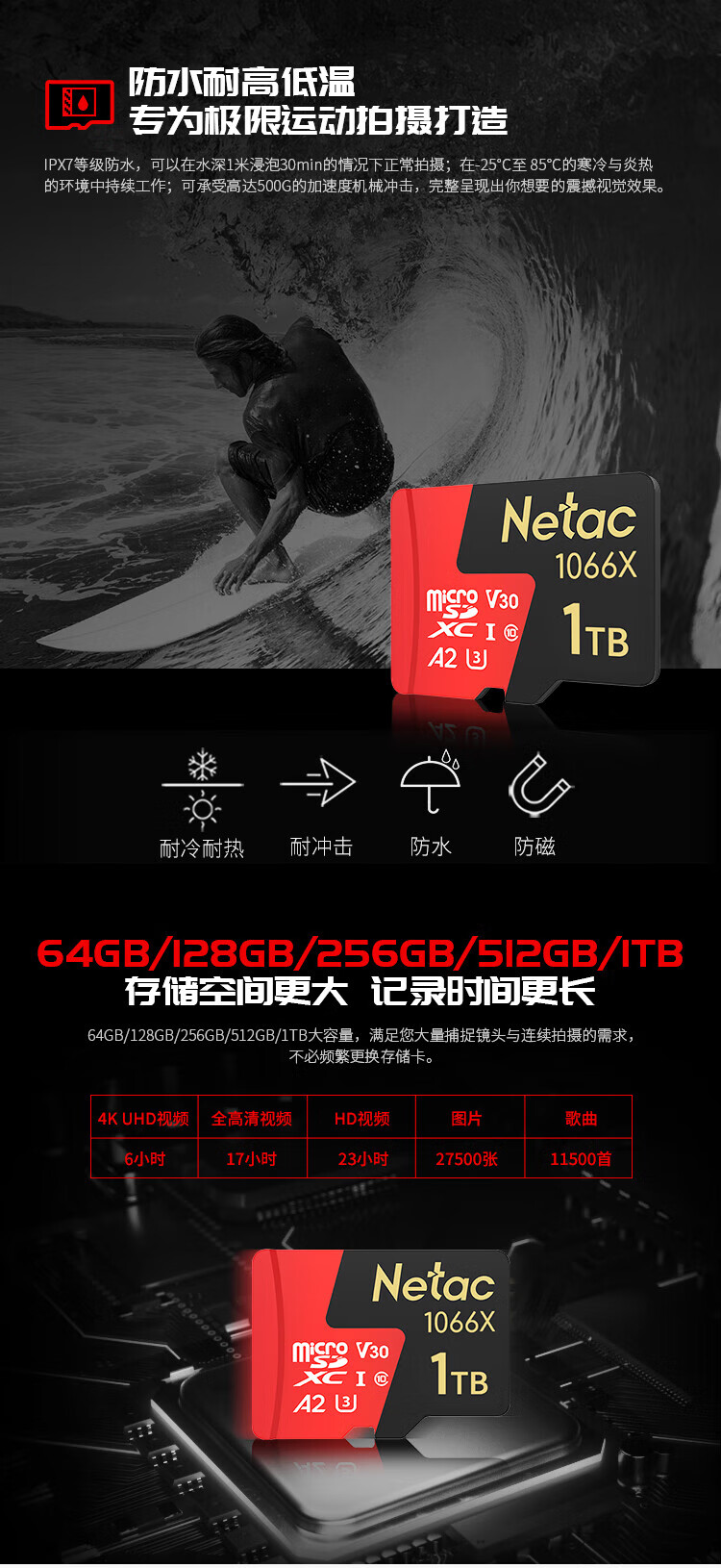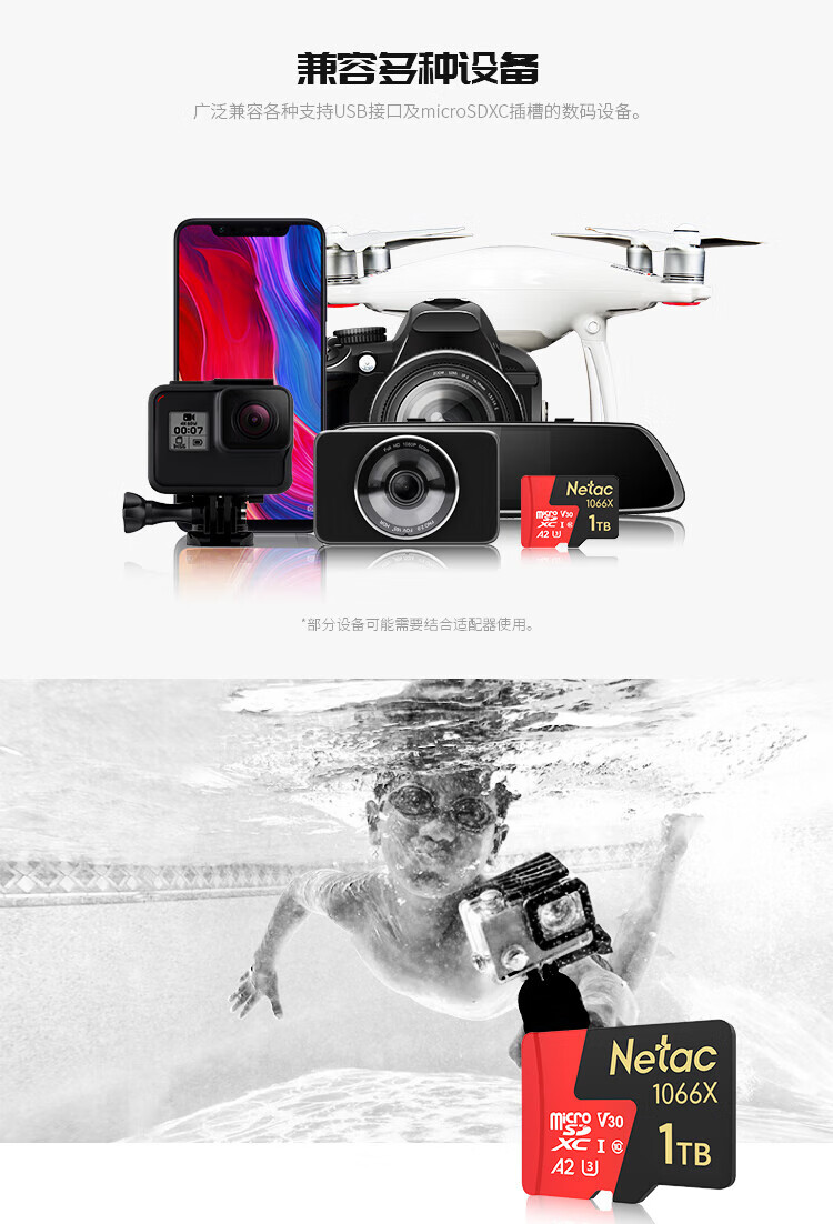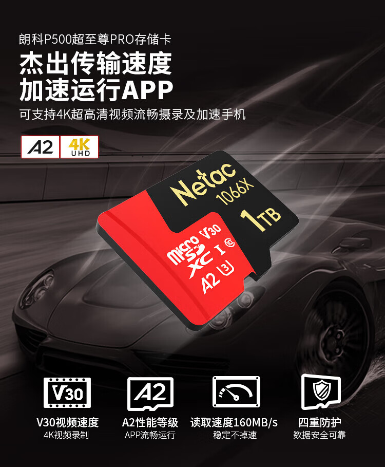 朗科(Netac)1TB TF(MicroSD)存储卡 U3 A2 4K 超至尊PRO版 适用于大疆运动相机gopro内存卡 读速160MB/s
