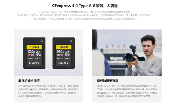 Sony (SONY) Tarjeta de memoria CFexpress 4.0 tipo A de 480 GB, velocidad de lectura CEA-G480T, tarjeta resistente de 1800 MB/s