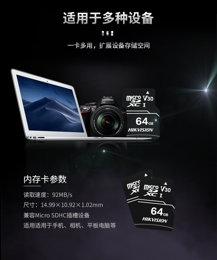 萤石 内存卡摄像头内存卡TF存储卡监控专用卡行车记录仪通用 华维威仕海康卡专用 64G