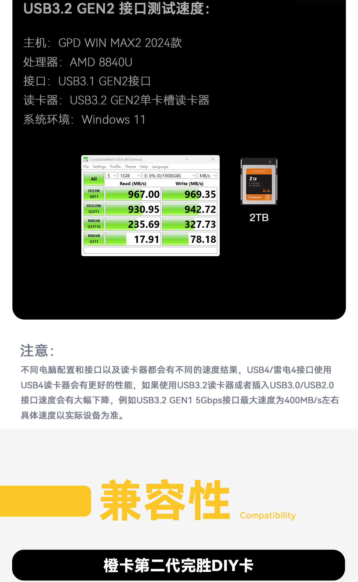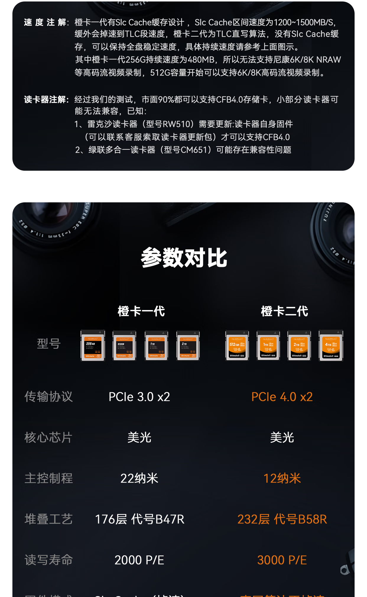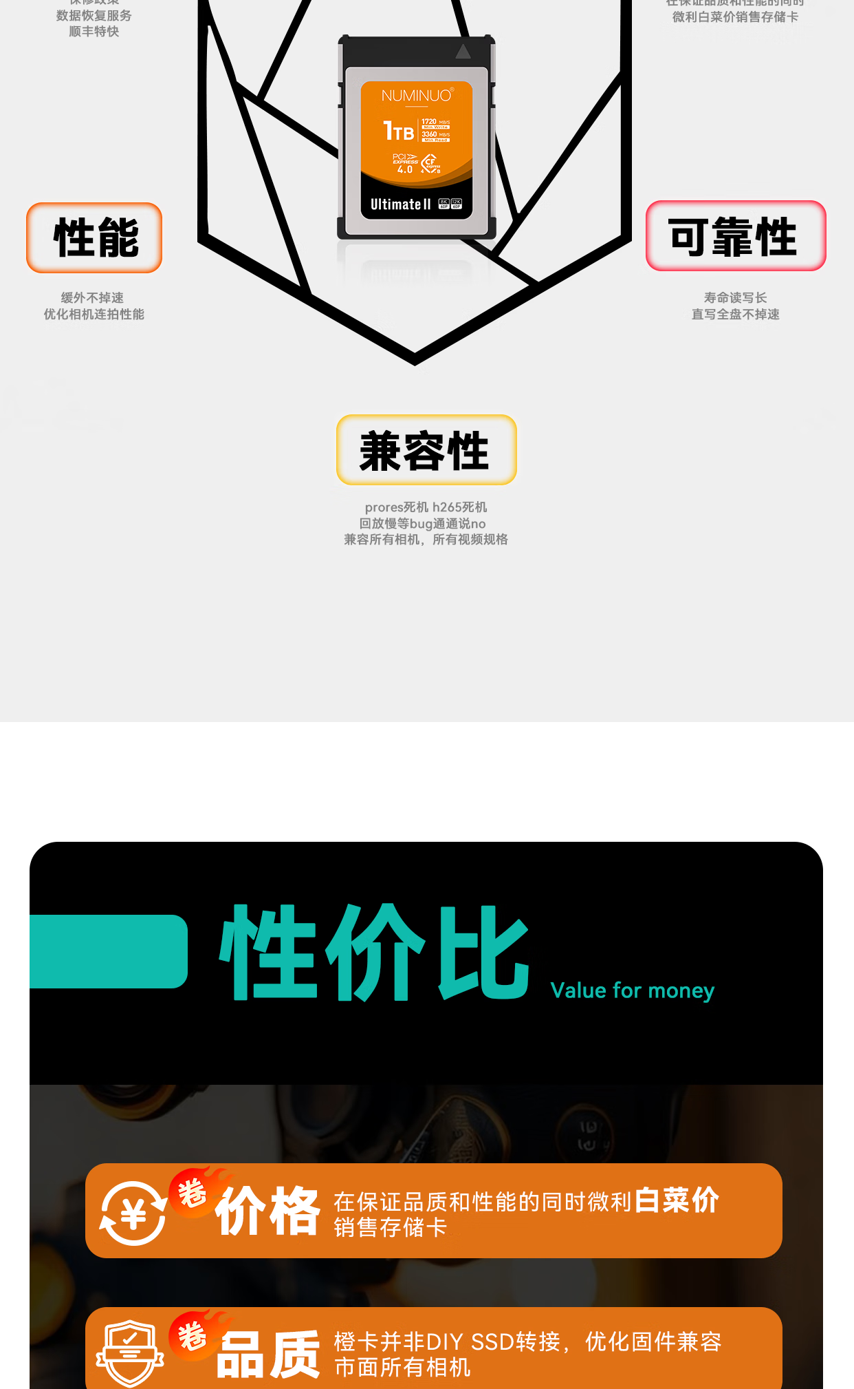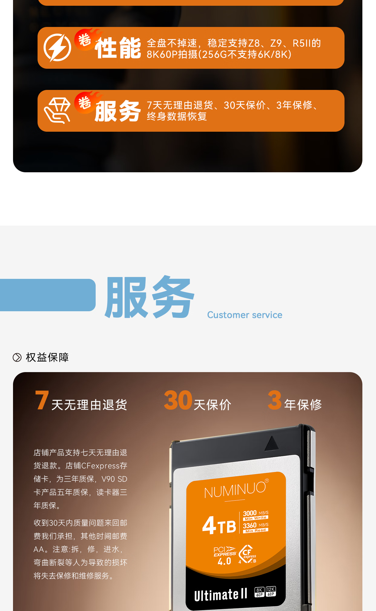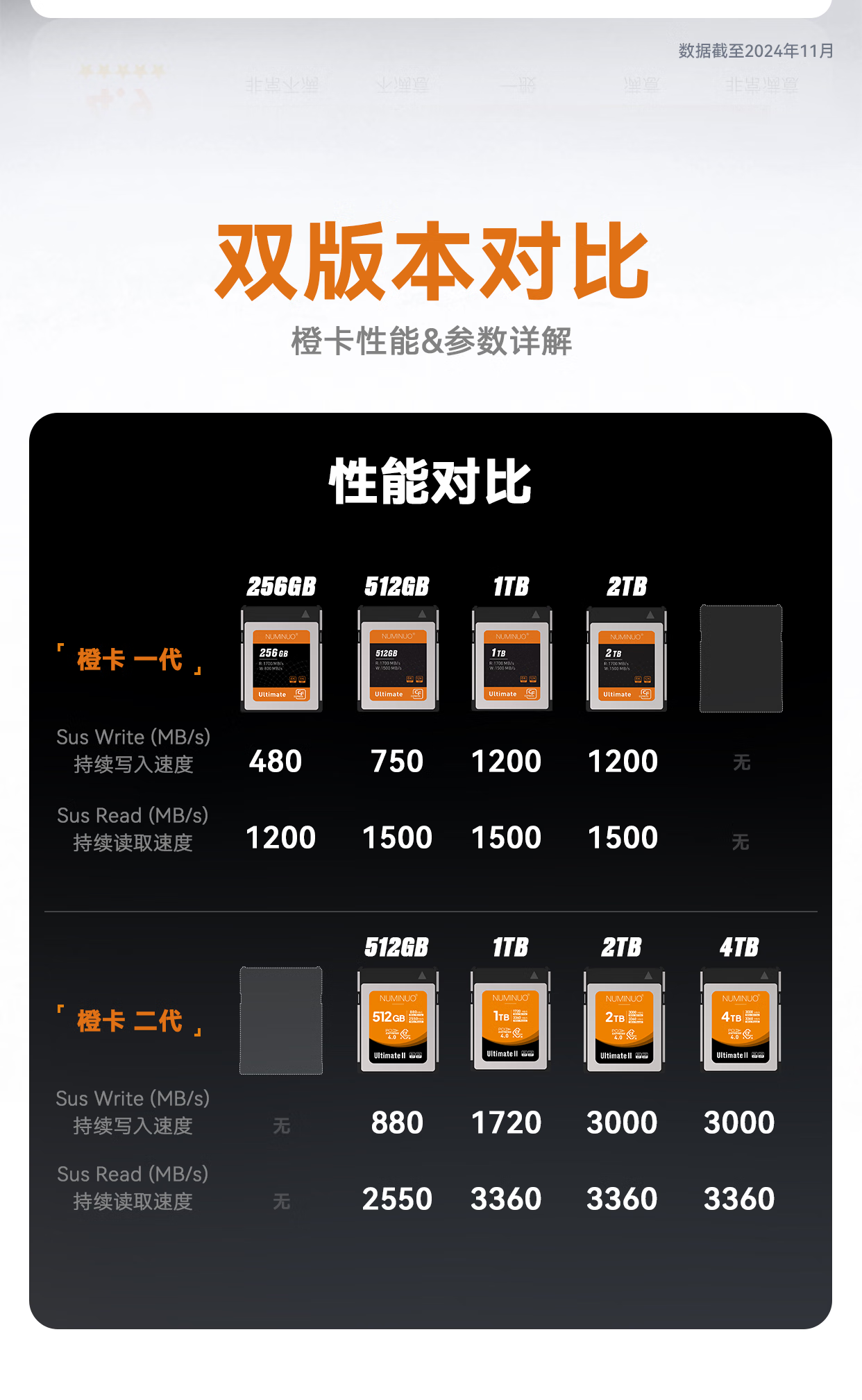 Numino CFexpress Type B4.0 storage card Nikon Z8 Z9 XH2 R5C GFX100II CFB memory card high-speed continuous shooting Orange card second generation Orange card second generation 4.0 1T memory card + USB3.2 card reader