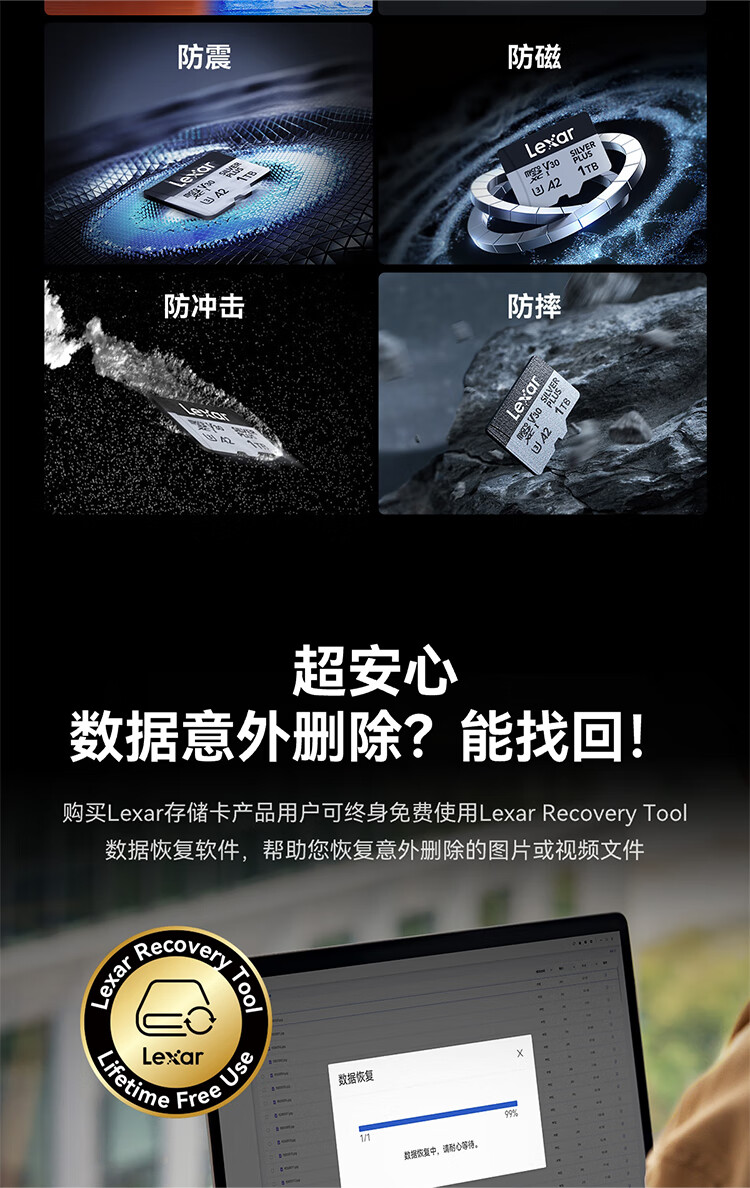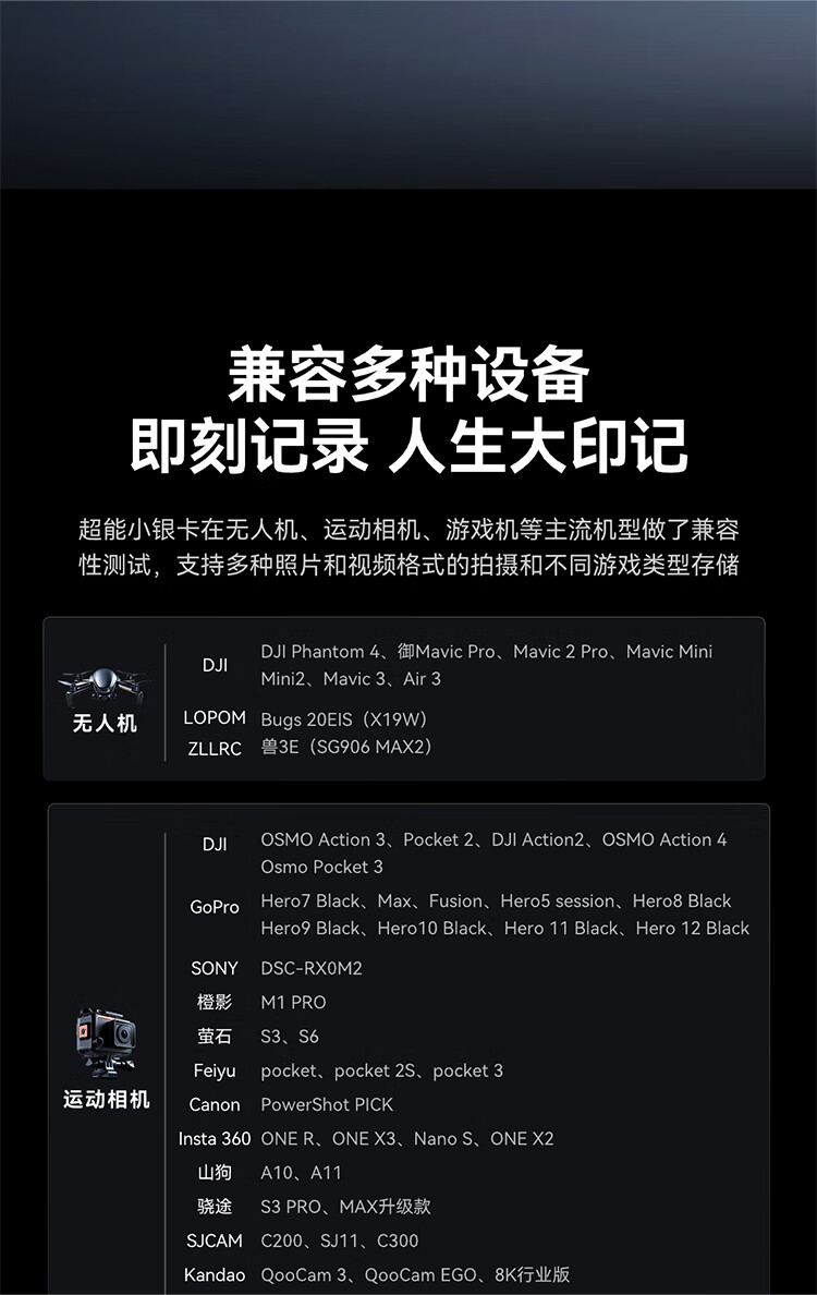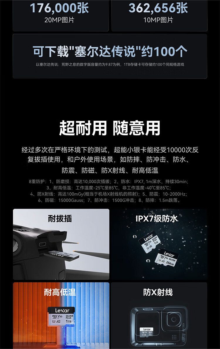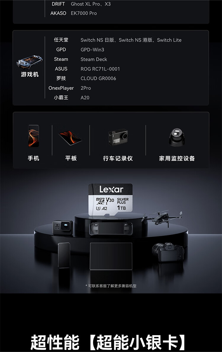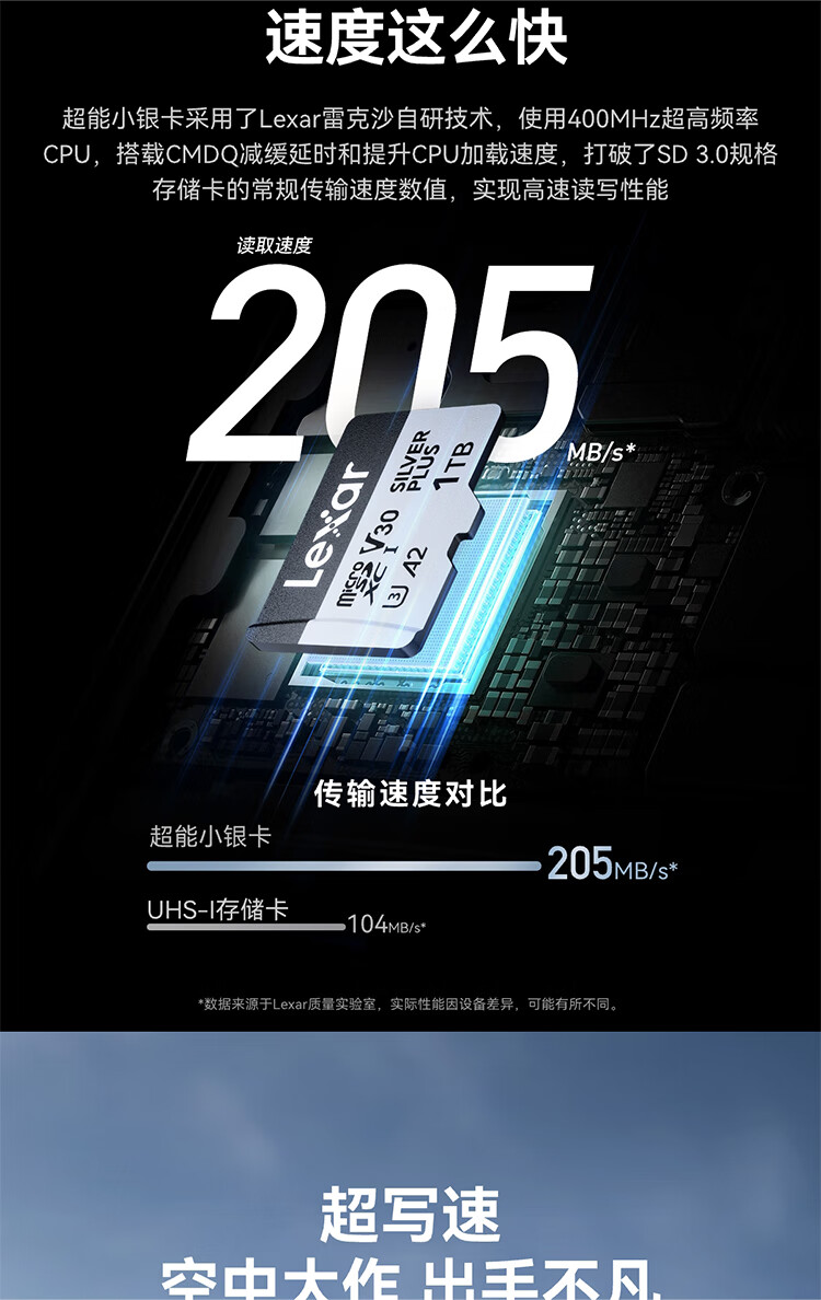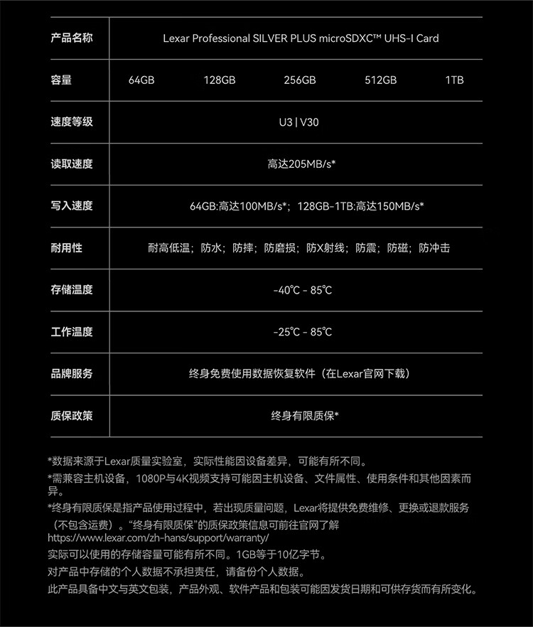 Lexar tf DJI pocket3 memory card action camera drone memory card high-speed gopro memory card micro sd card 256G SilverPlus reading speed 205MB/s TF card + dual interface card reader speed 205MB/s