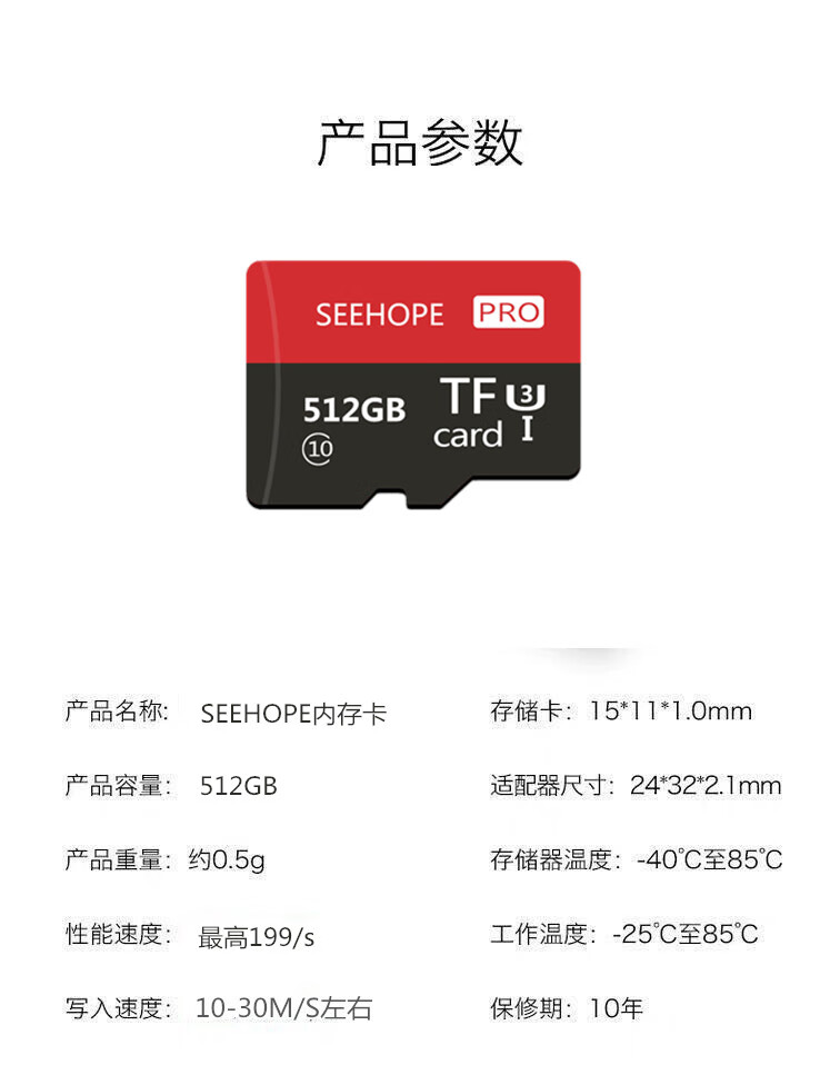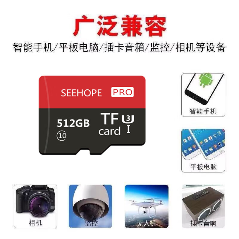 SEE HOPE high-speed memory card 512GB large capacity micro sd card camera tablet driving recorder monitoring TF card 512G high-speed universal + card reader + SD card holder