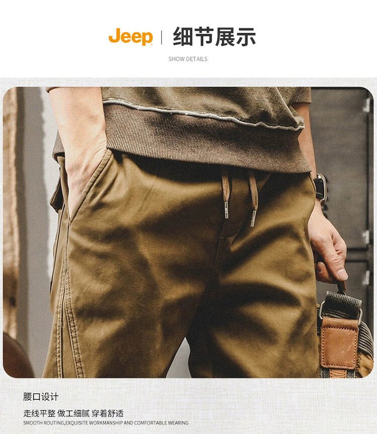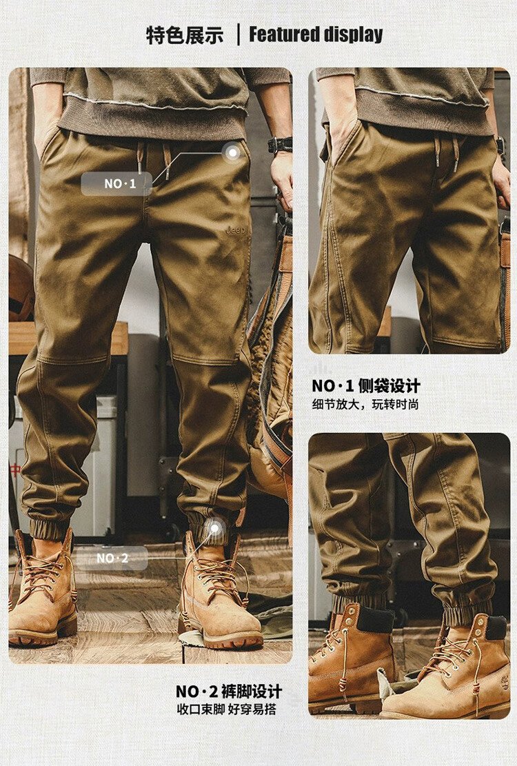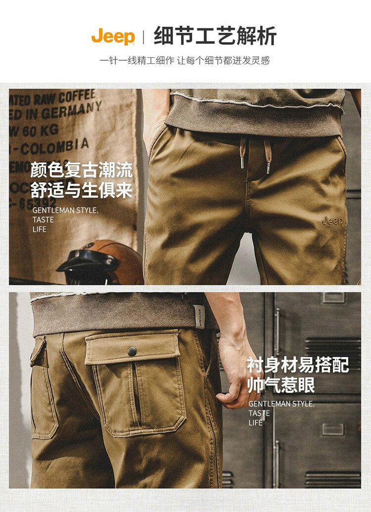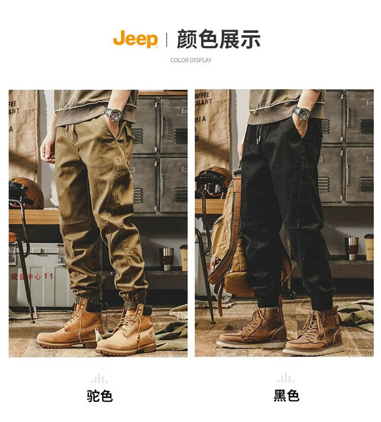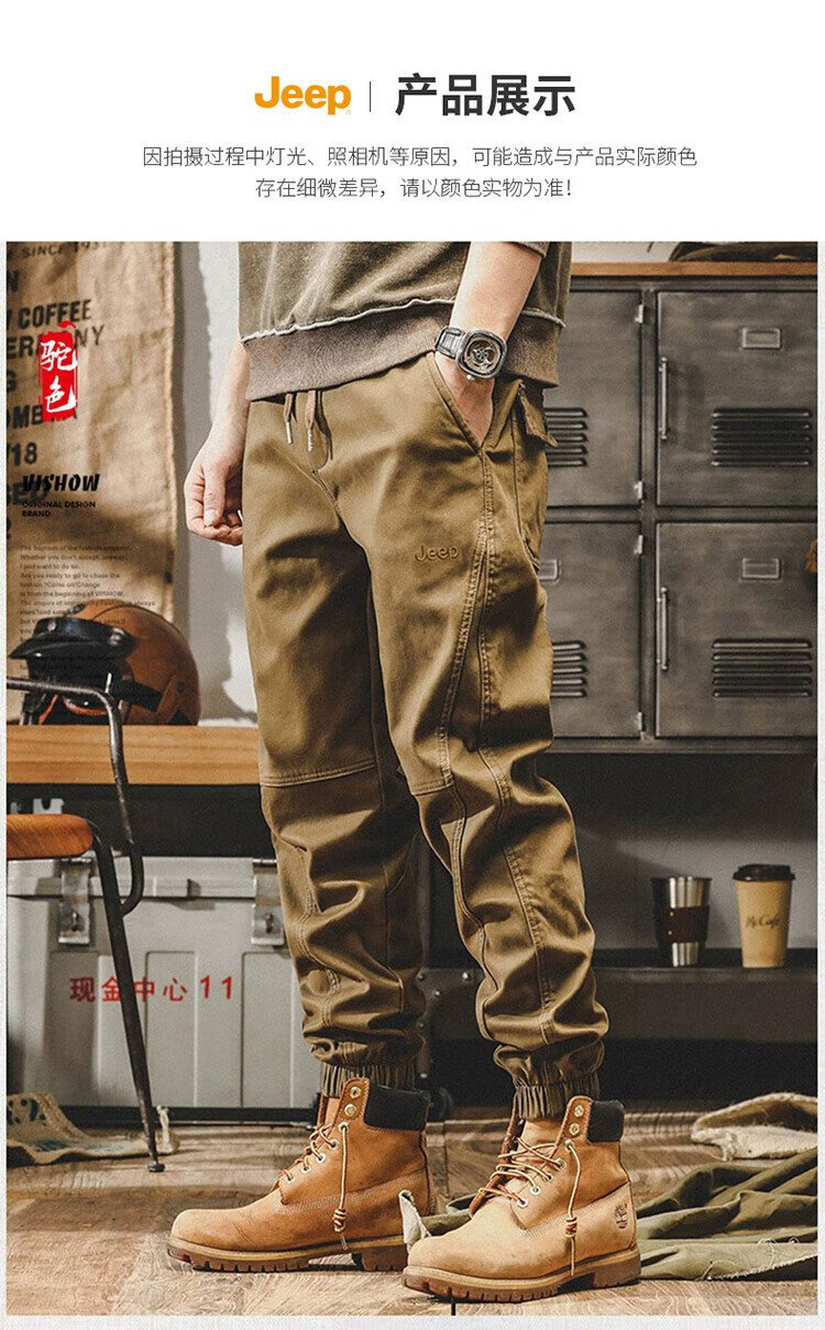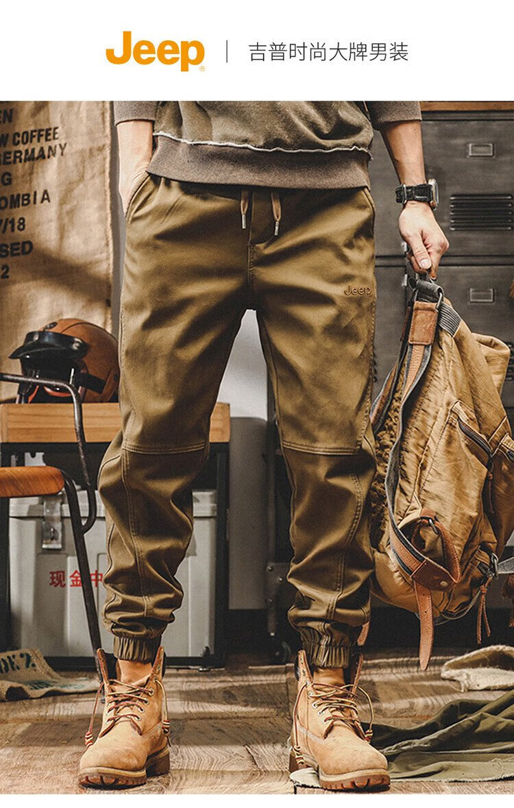 JEEP Overalls Men's Autumn and Winter Casual Pants Men's Loose Leg-tie Trendy Brand Versatile Men's Pants Camel XL