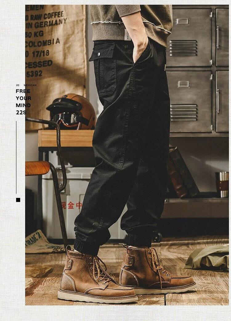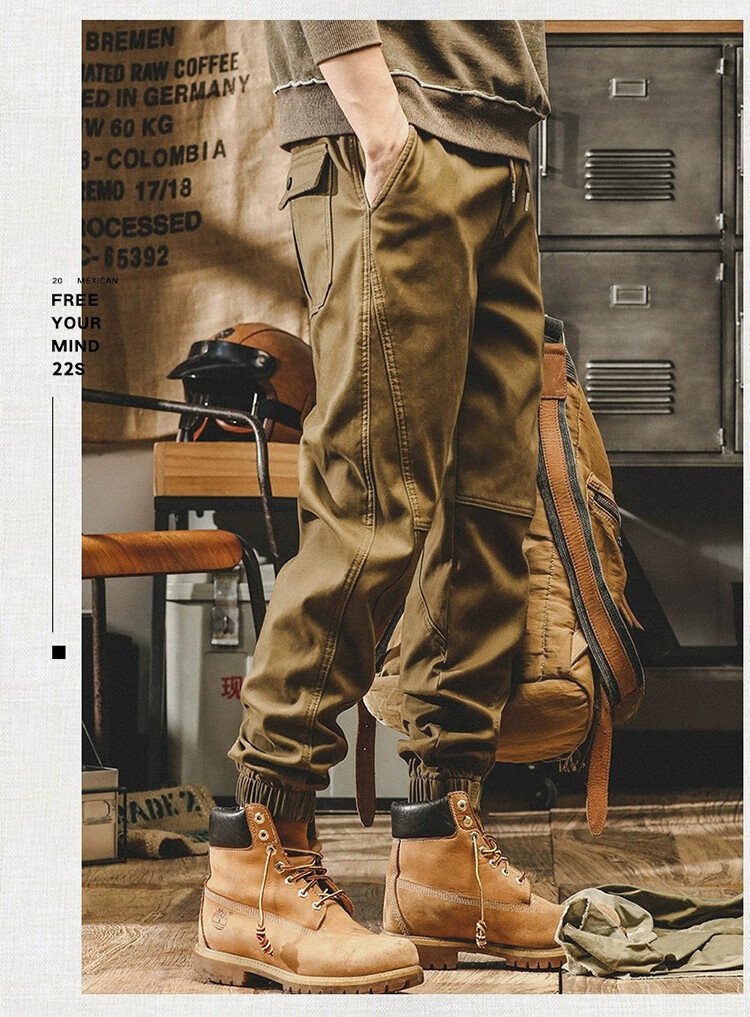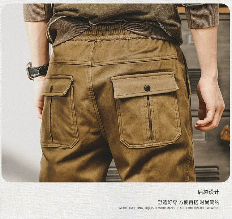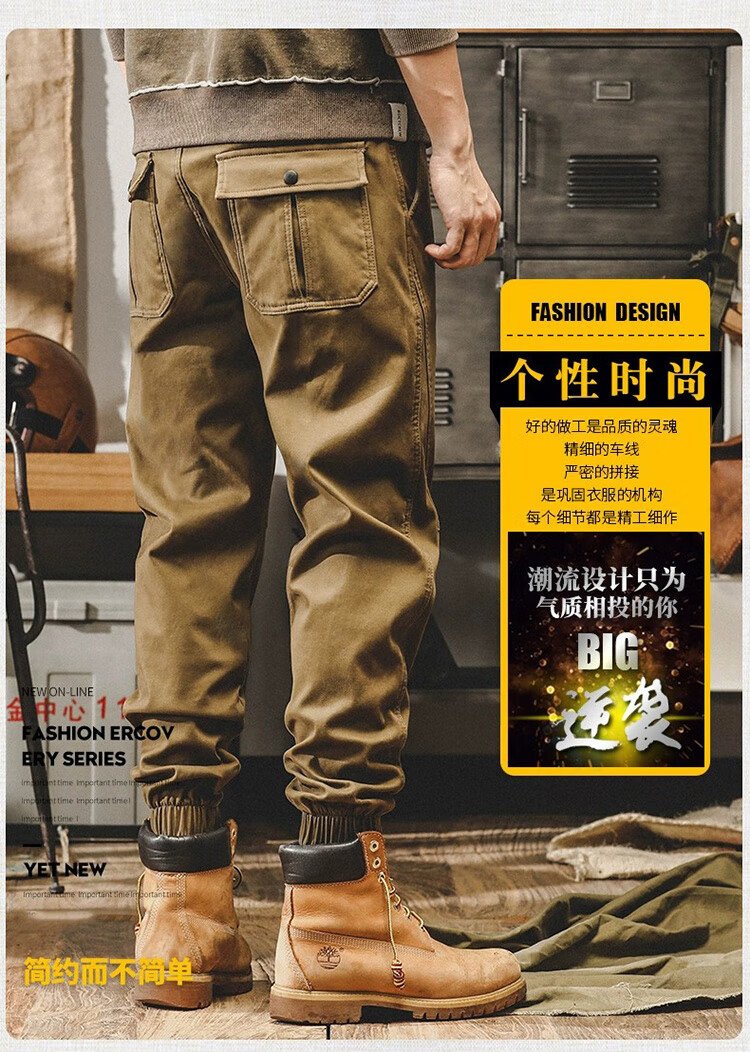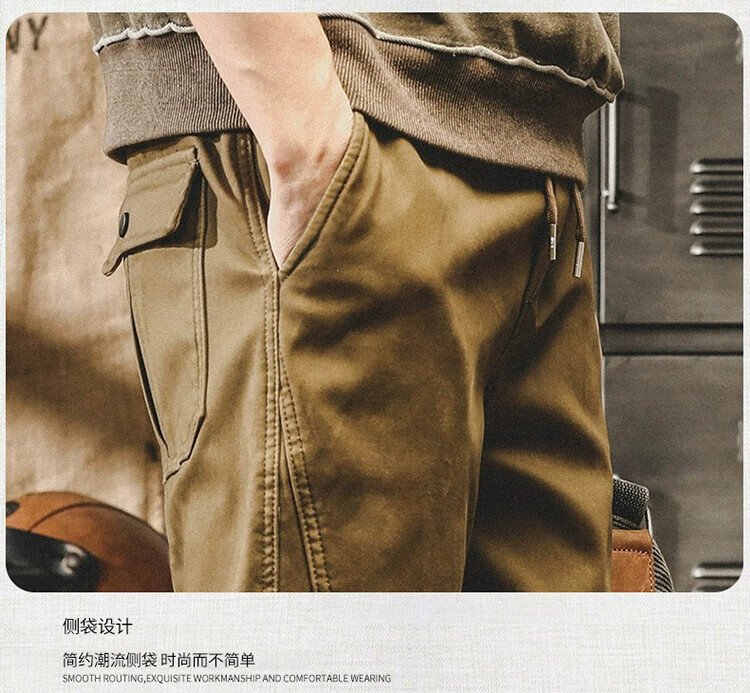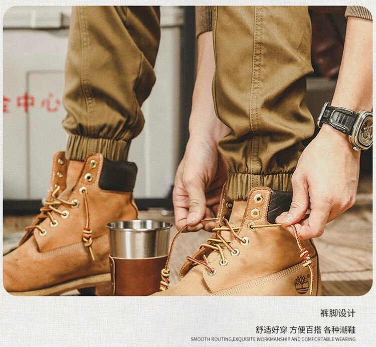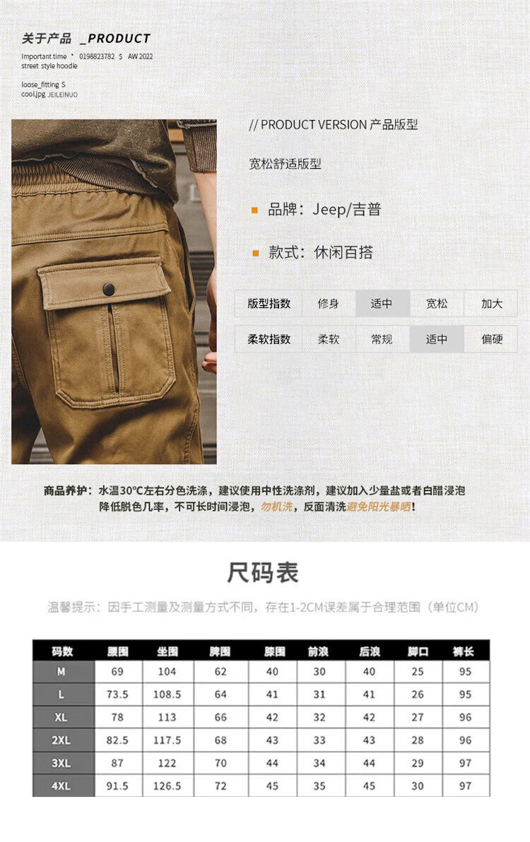 JEEP Overalls Men's Autumn and Winter Casual Pants Men's Loose Leg-tie Trendy Brand Versatile Men's Pants Camel XL