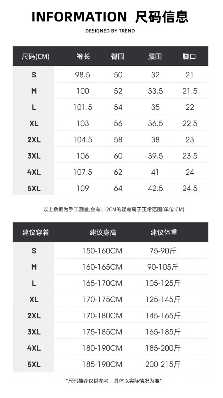 Outseam (cm) 99 cm 101.5 cm 104 cm 106.5 cm 109 cm