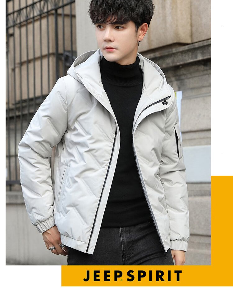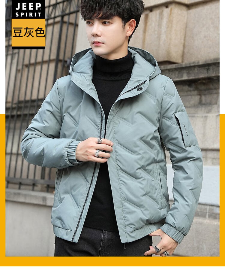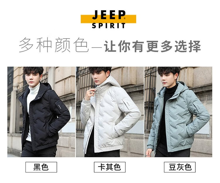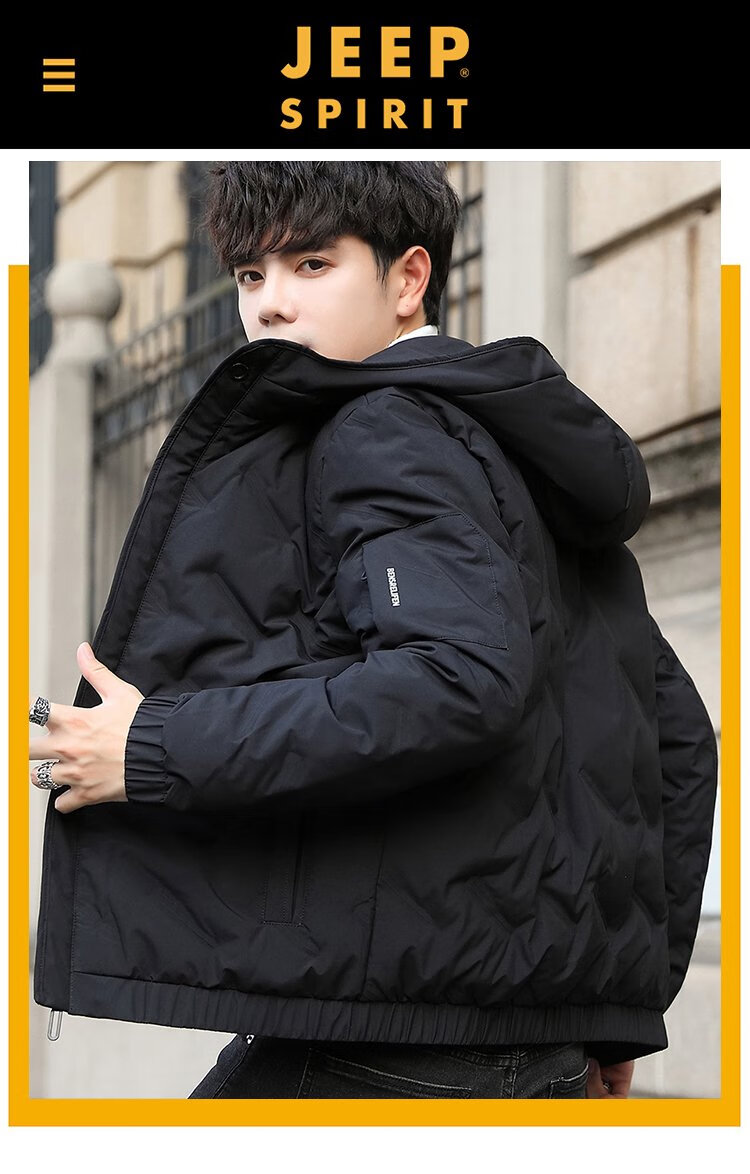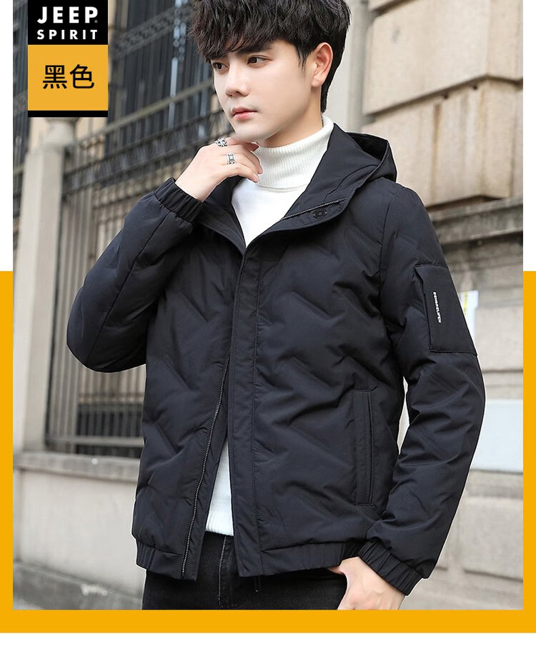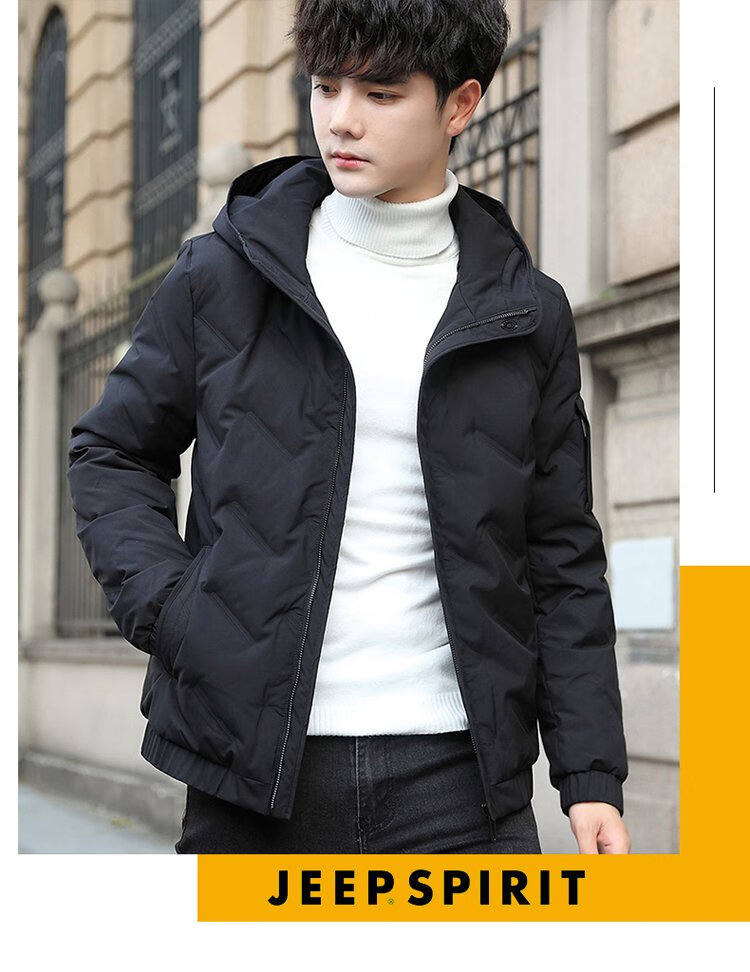 JEEP SPIRIT Jeep Down Jacket Men's Short Autumn and Winter Men's Down Jacket Warm White Duck Down Jacket Men's Black 2XL