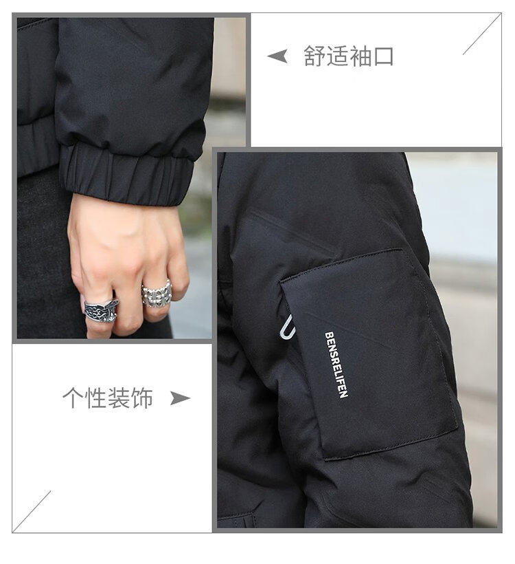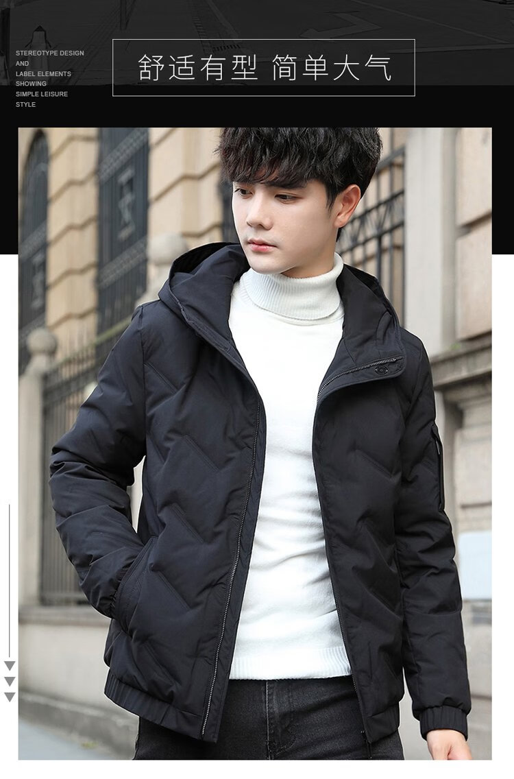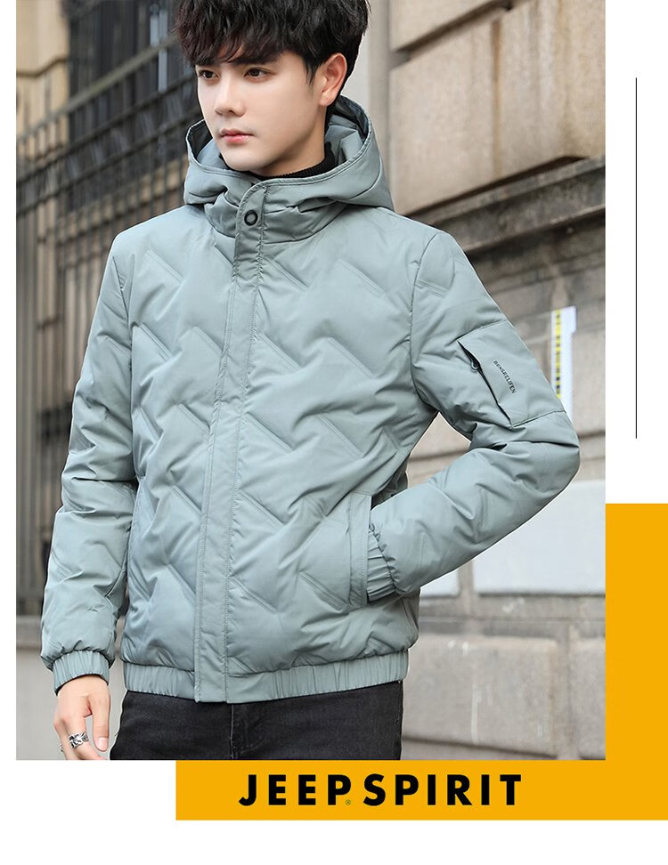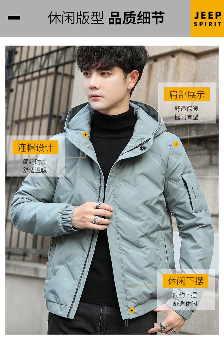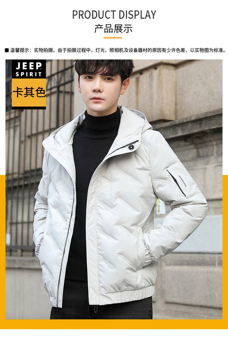 JEEP SPIRIT Jeep Down Jacket Men's Short Autumn and Winter Men's Down Jacket Warm White Duck Down Jacket Men's Black 2XL