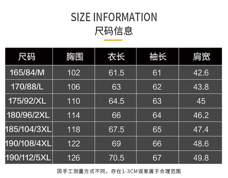 China (cm) 165 / 88-90 170 / 96-98 175 / 108-110 180 / 118-122 185 / 126-130